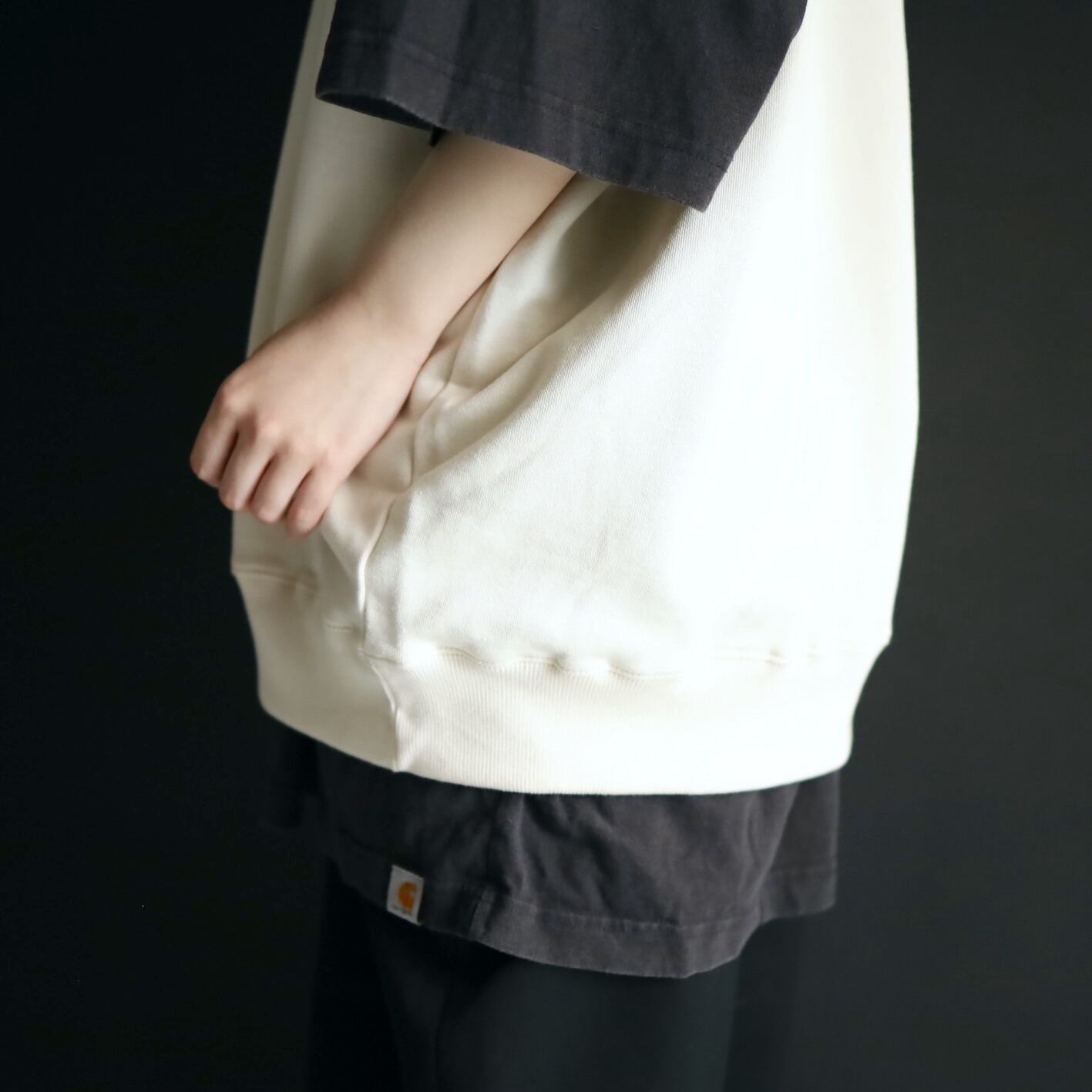スウェットの中でも薄手で,コットン100%生地のため,サラッとした着心地で暑苦しさがないのは嬉しいです.