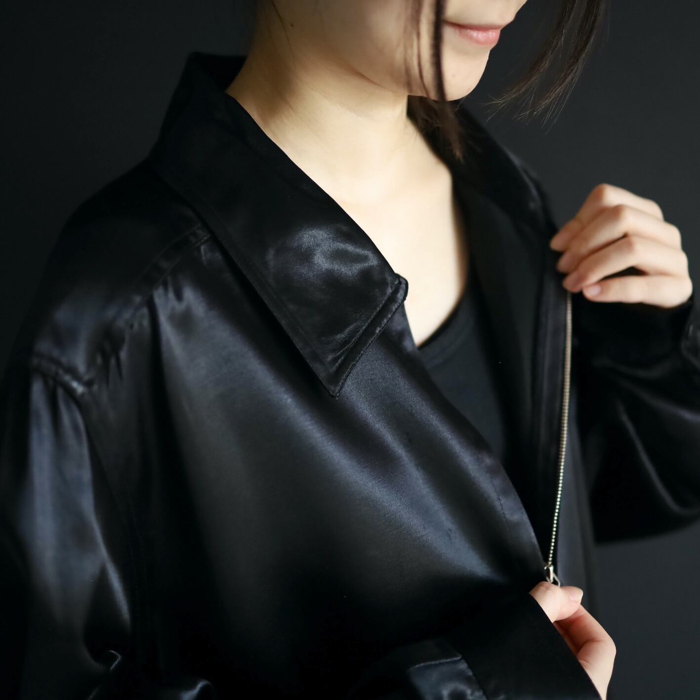 サテン織の生地特有の品のいい光沢感.