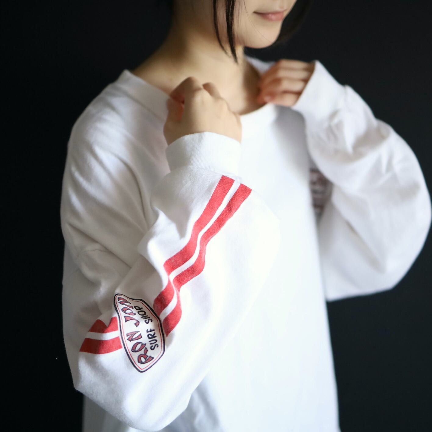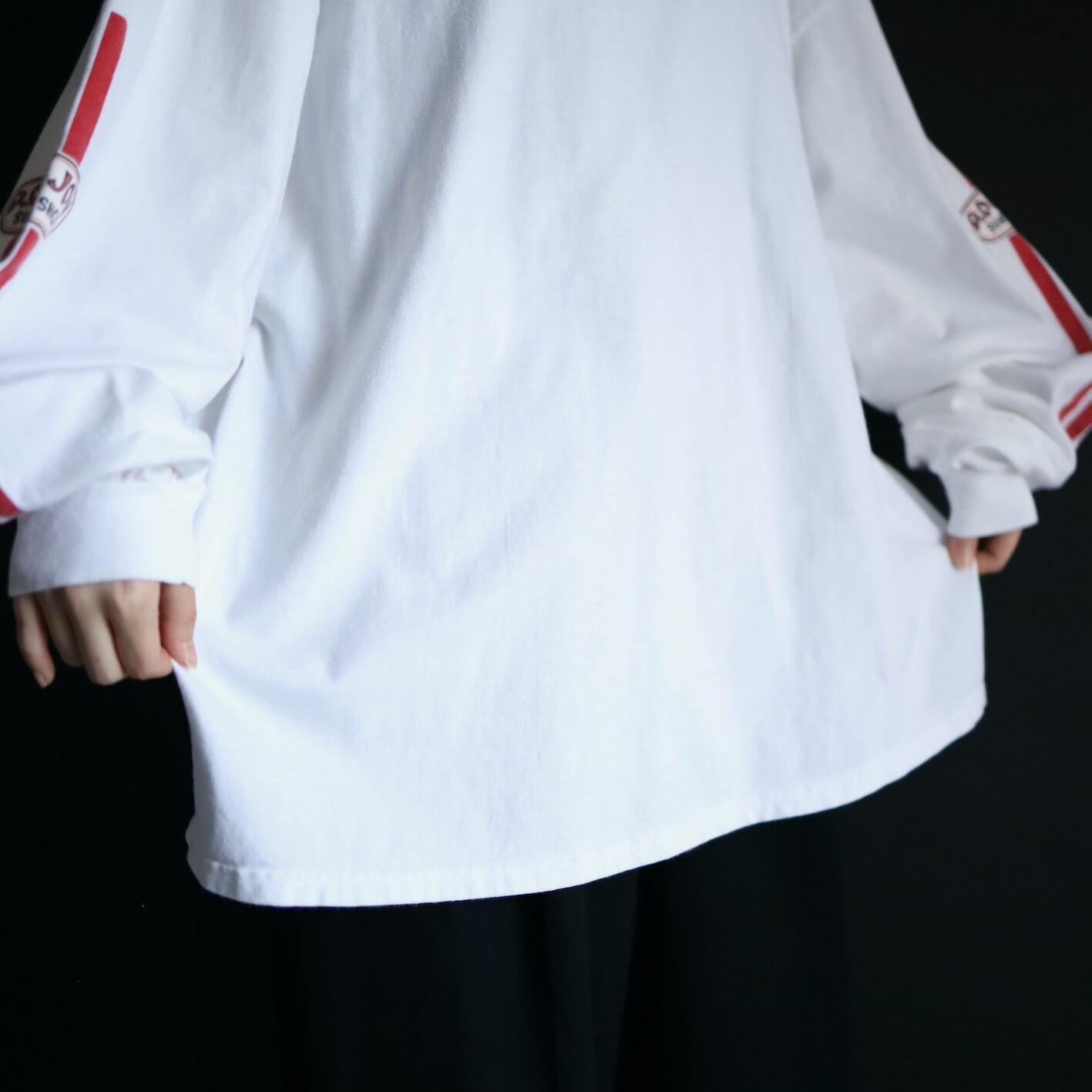フロント,バックに加えて袖にも入ったプリント.