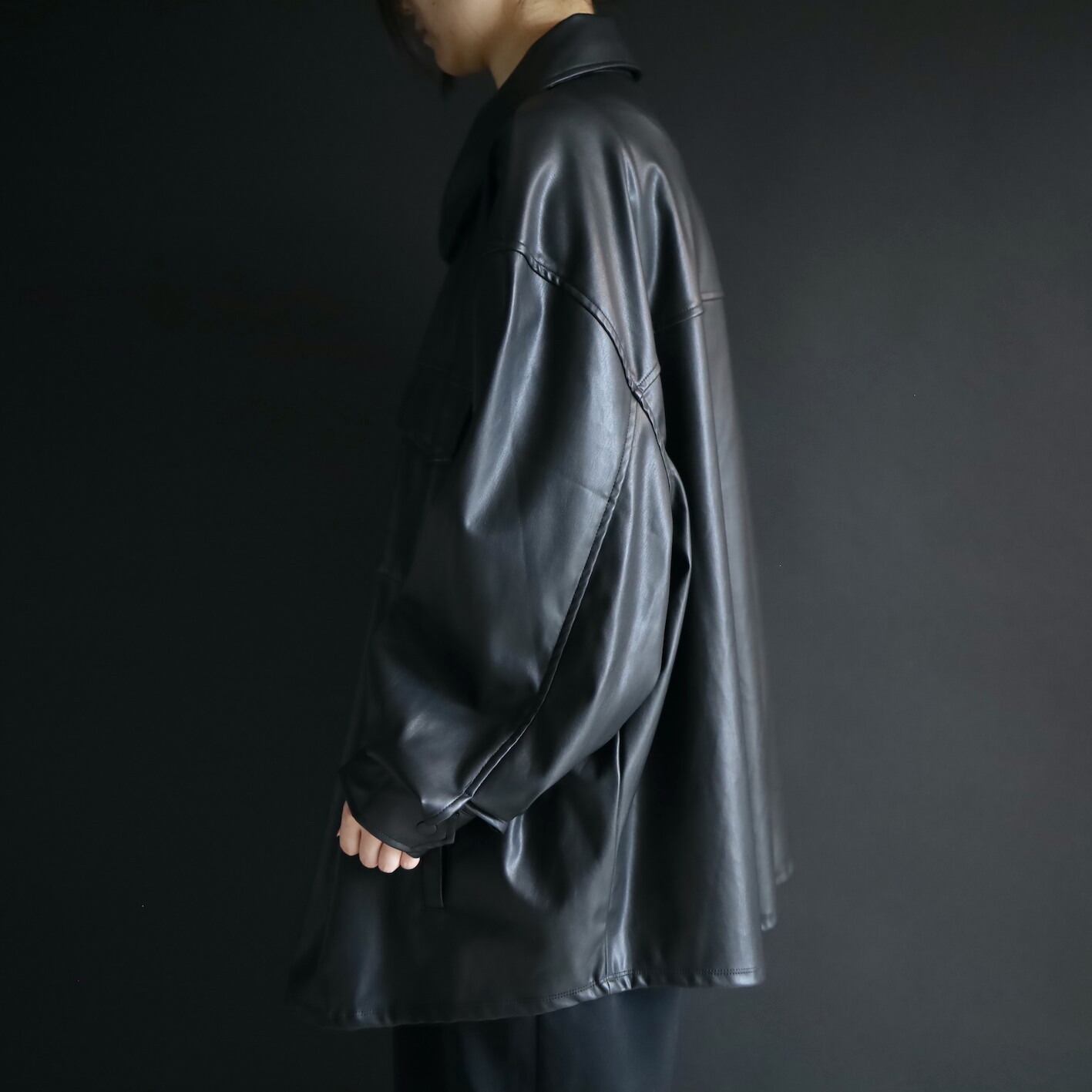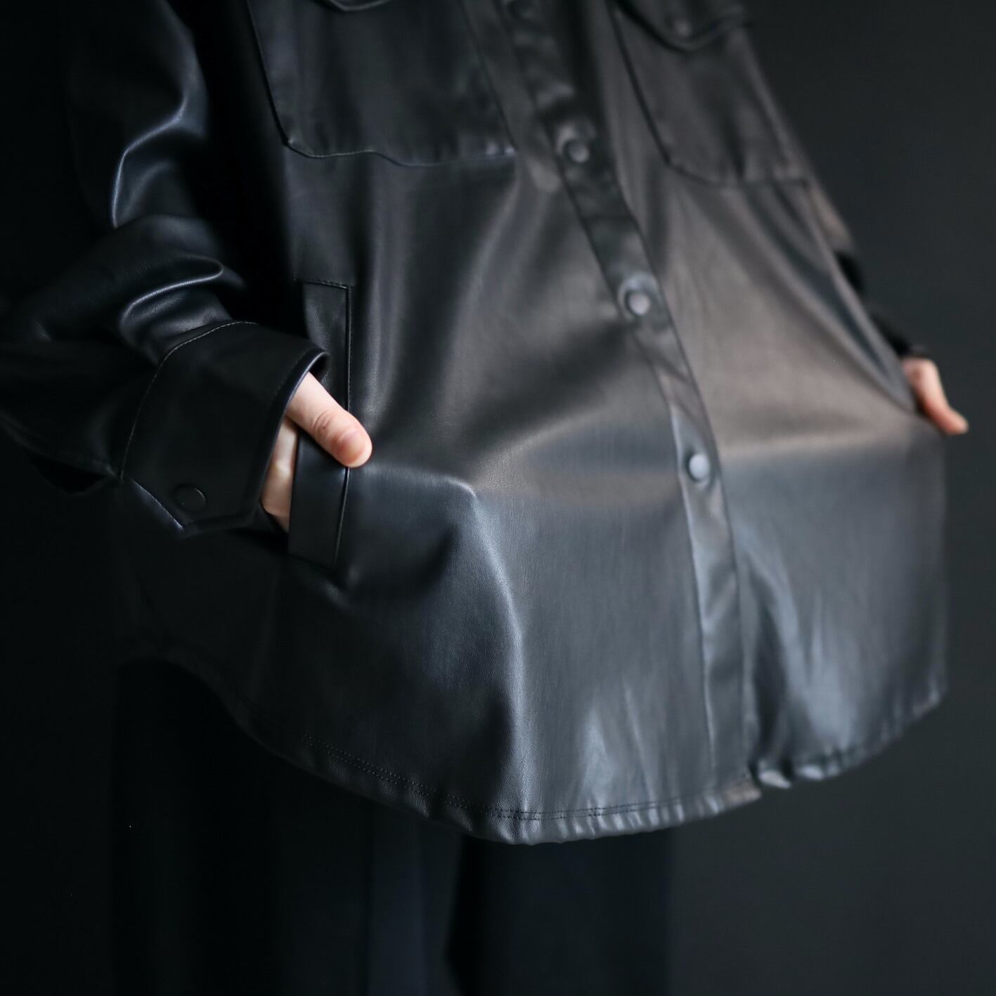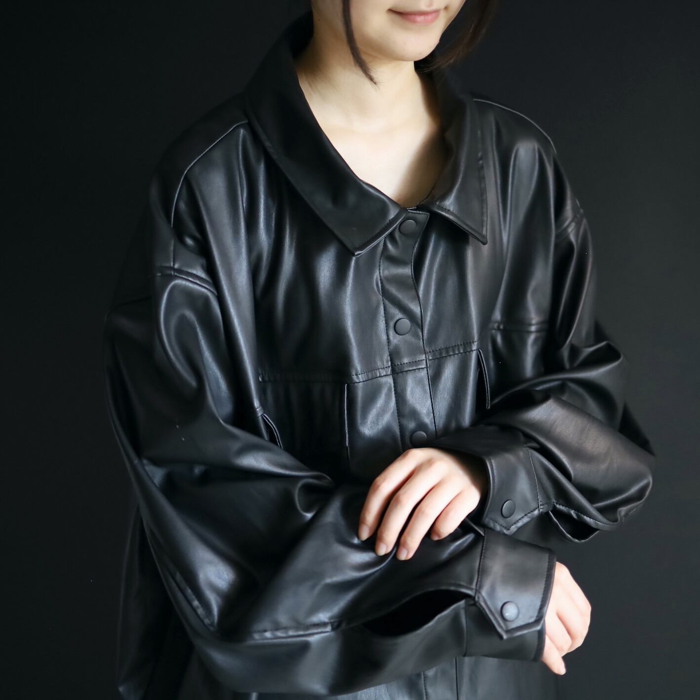 モードなフェイクレザーのシャツジャケットの入荷です.