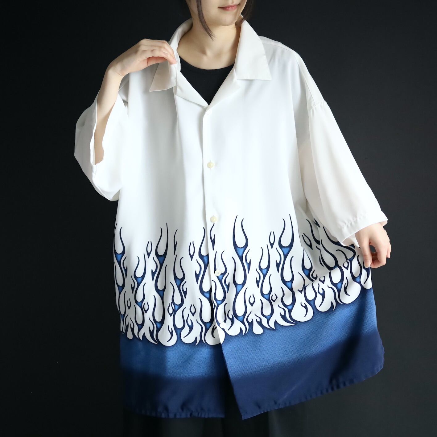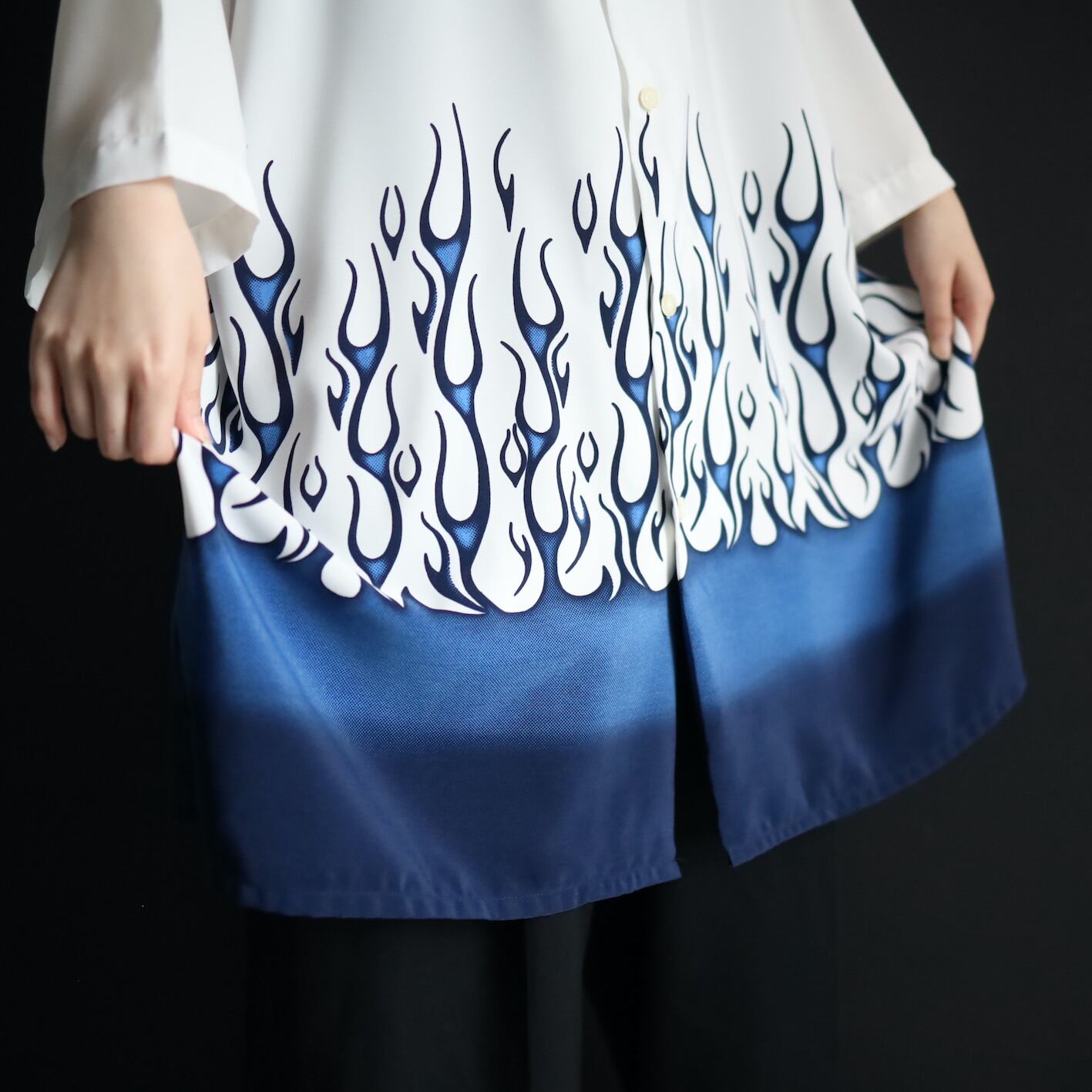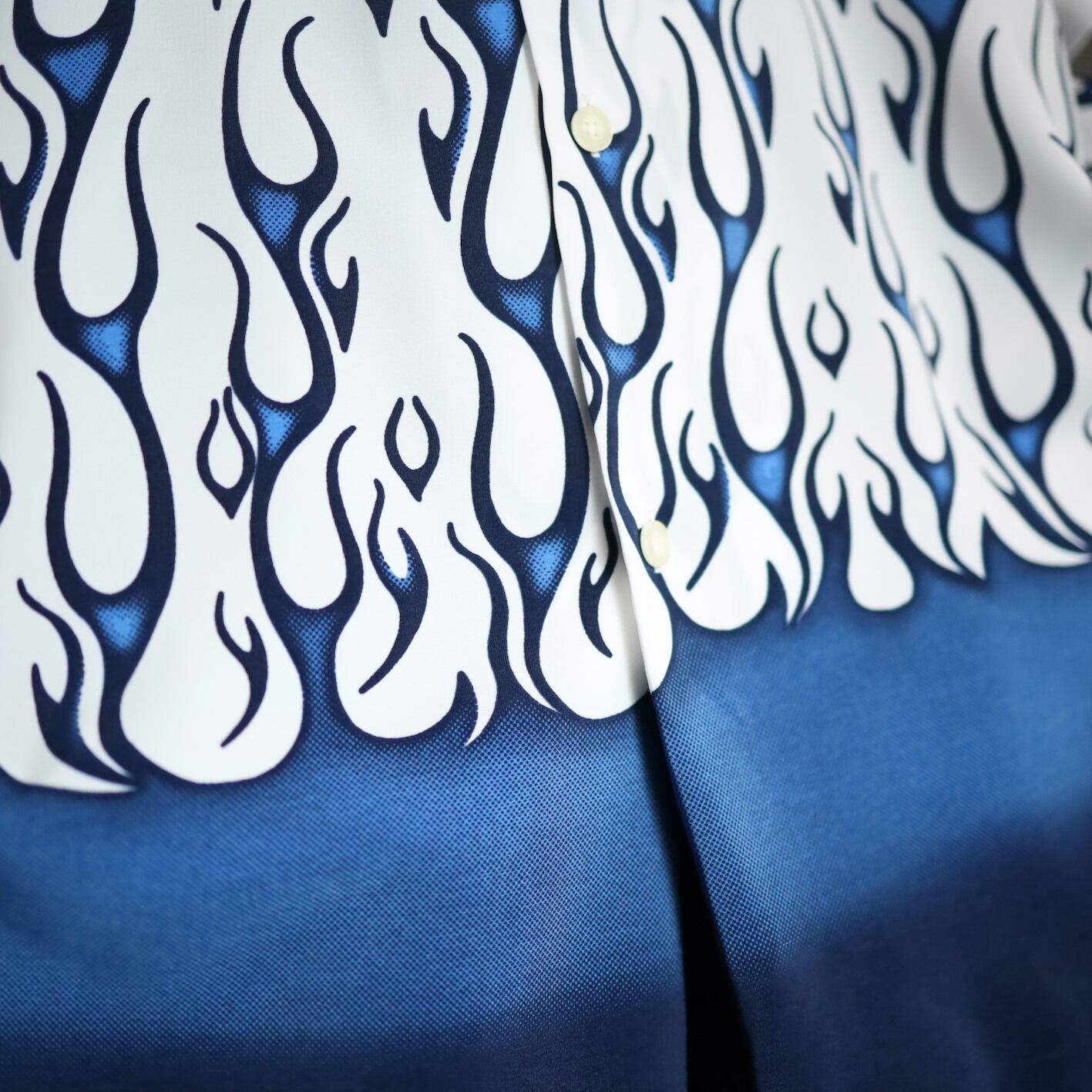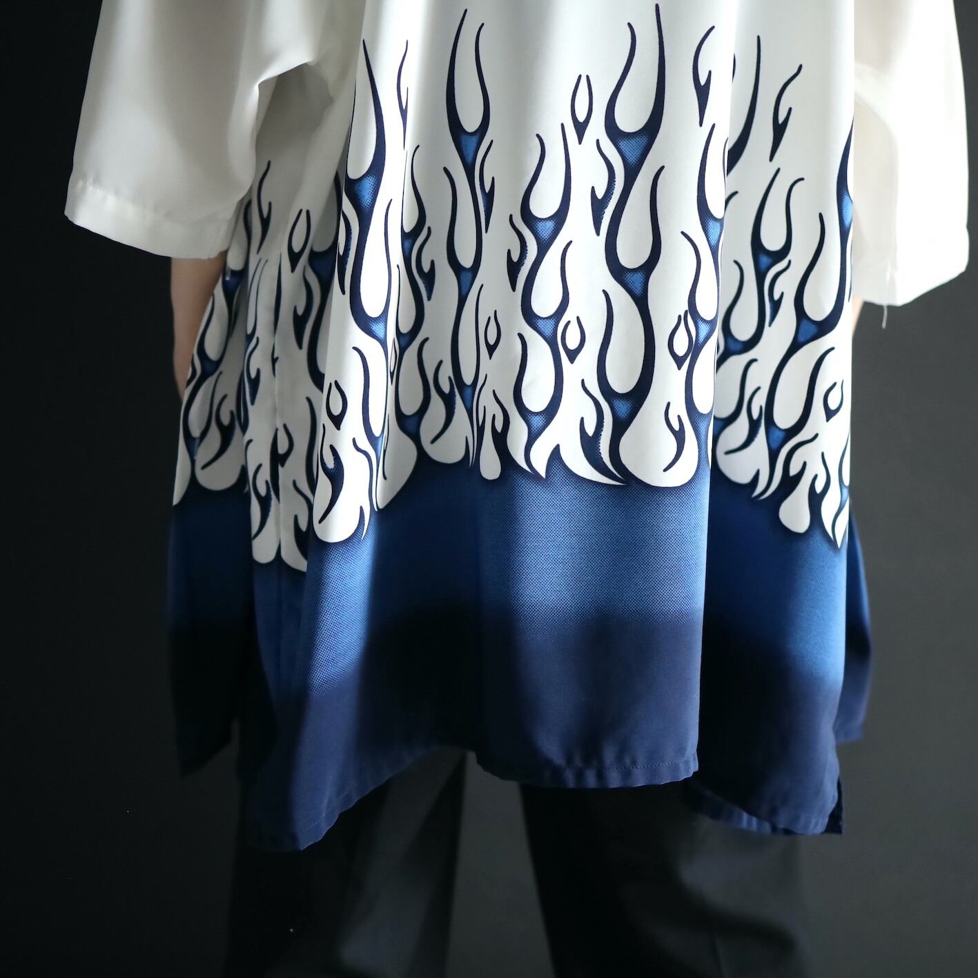 ホワイトカラーをベースとしたパキッとしたボディに,裾から立ち上る寒色のファイアパターン.