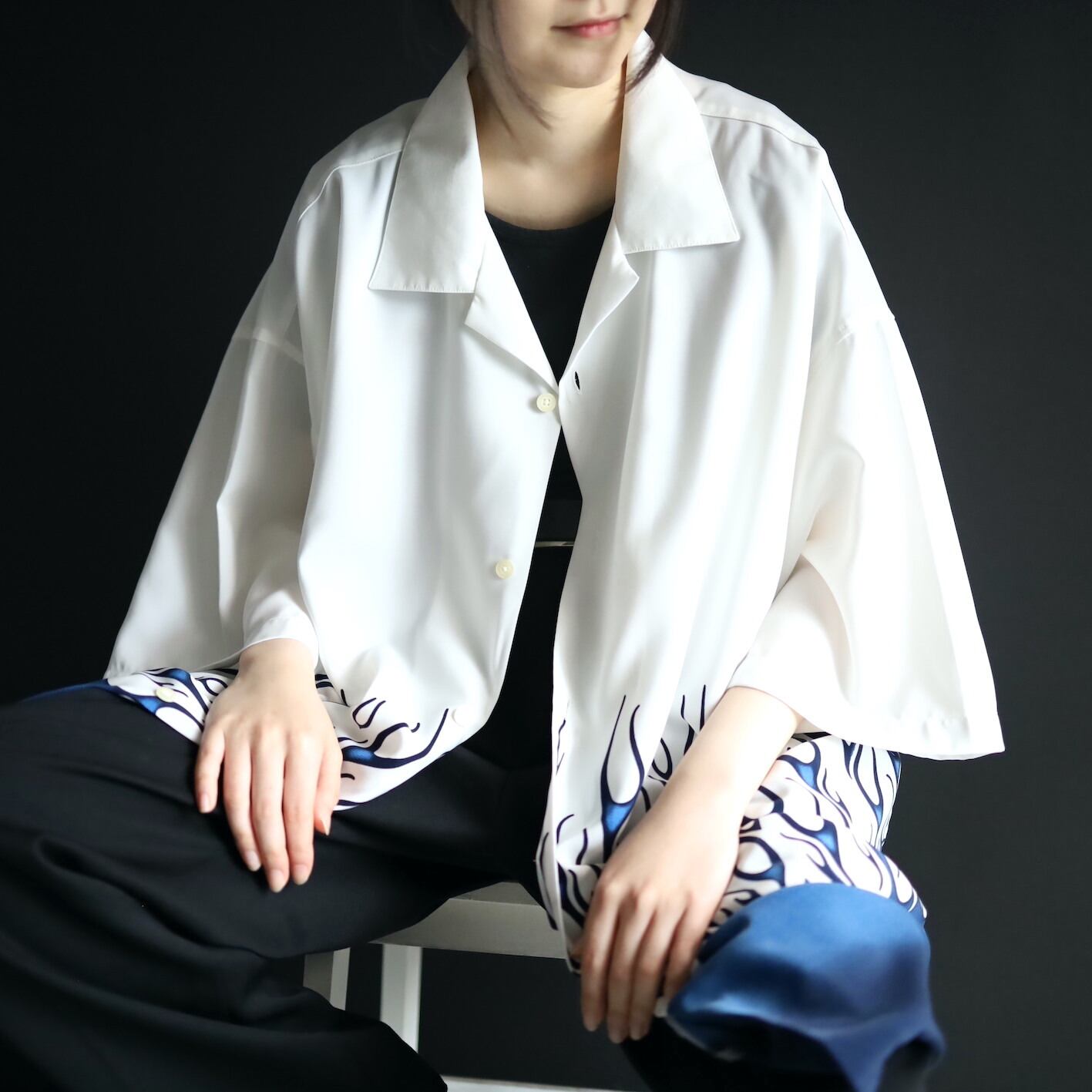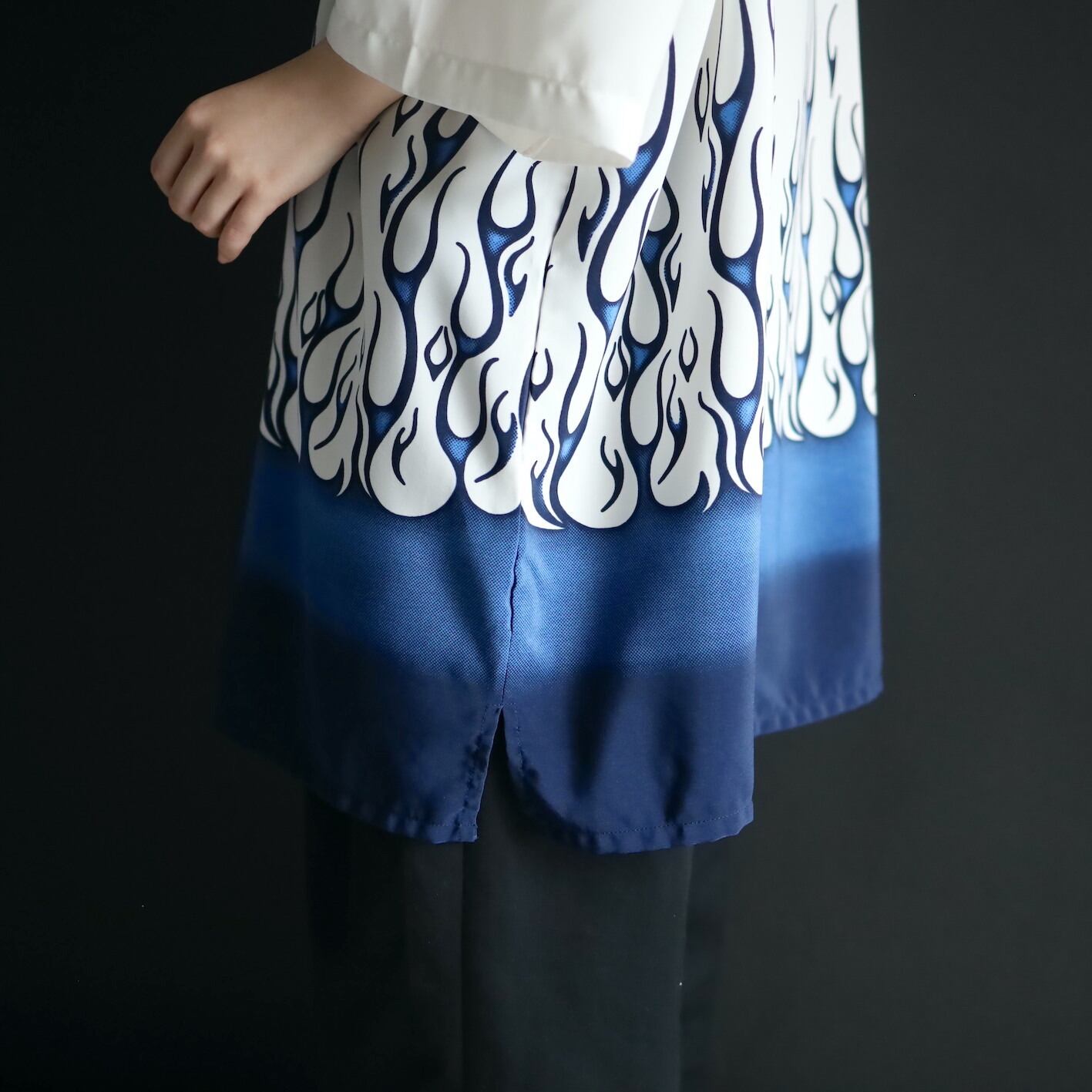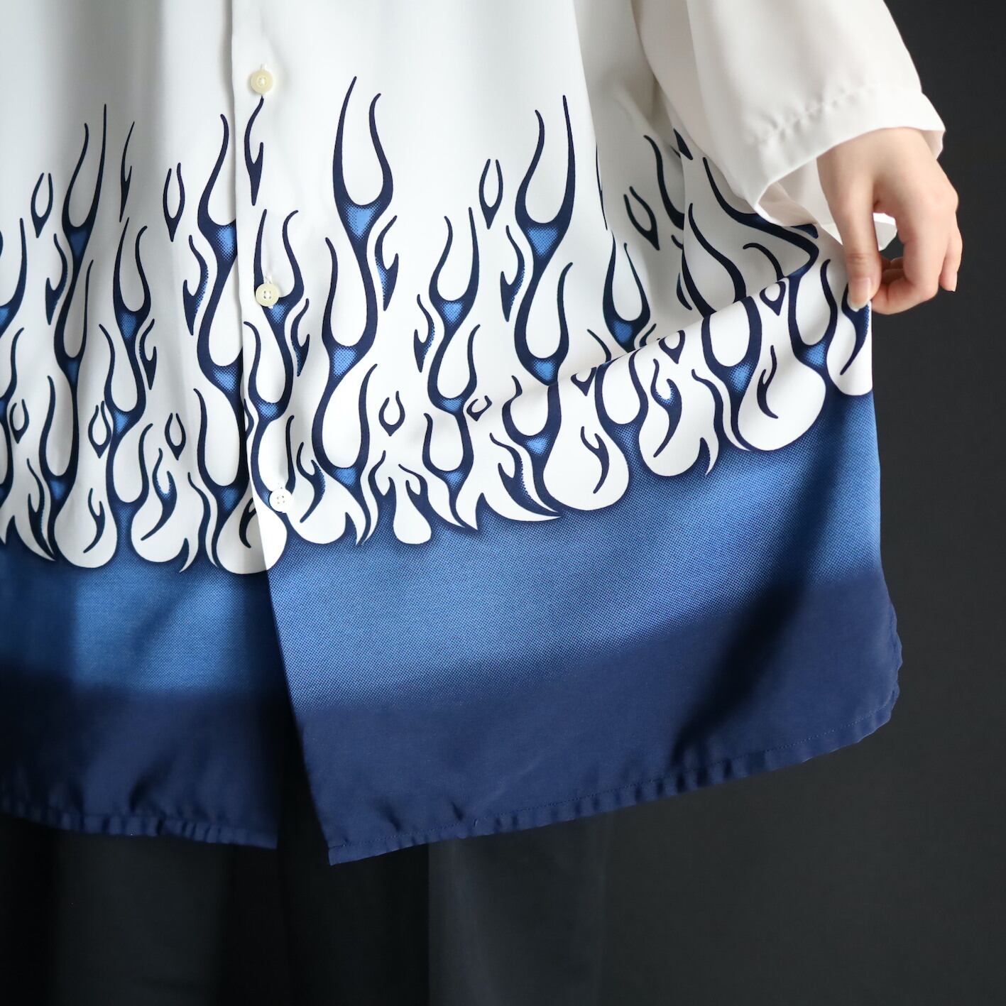 ホワイトカラーをベースとしたパキッとしたボディに,裾から立ち上る寒色のファイアパターン.