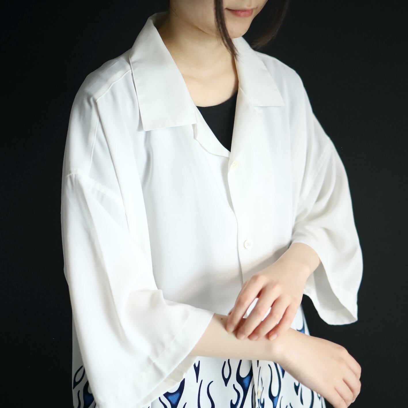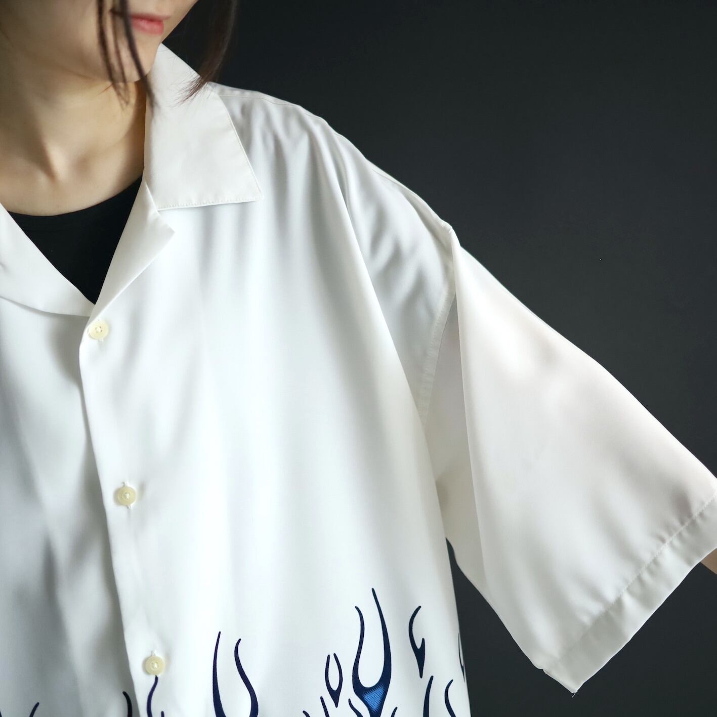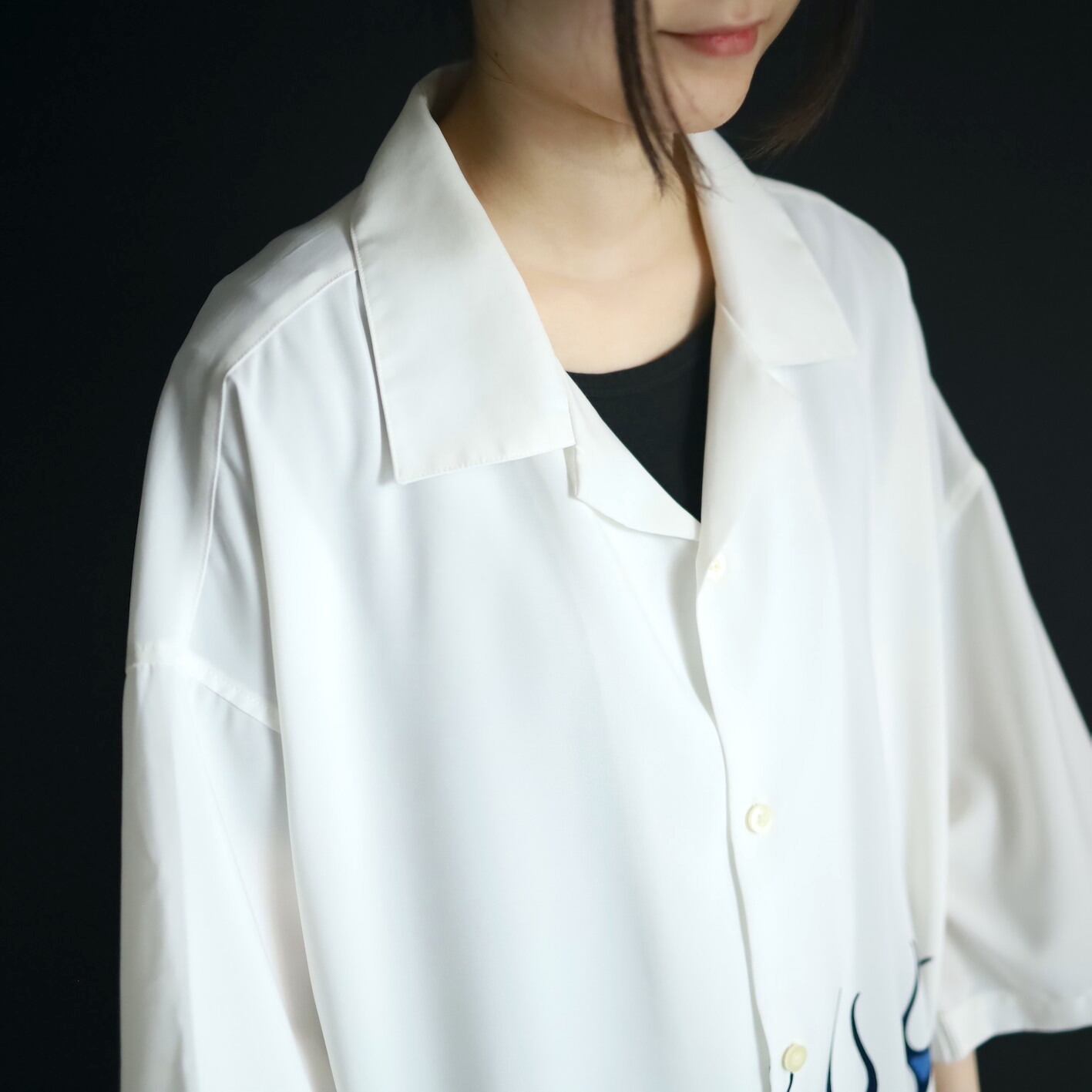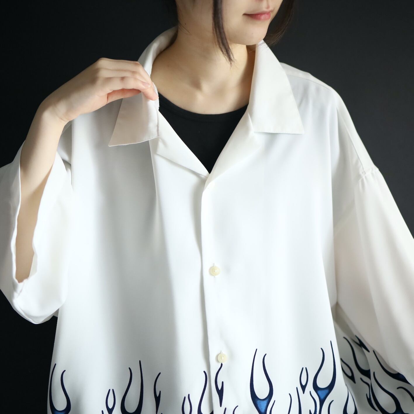 ホワイトカラーをベースとしたパキッとしたボディに,裾から立ち上る寒色のファイアパターン.