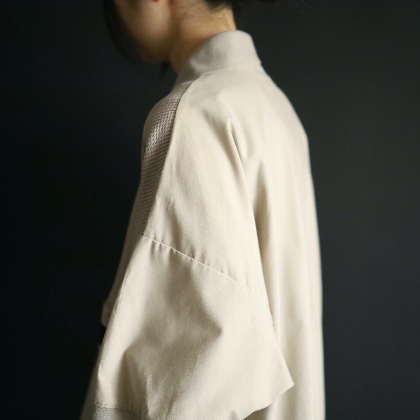 コットンベースの清涼感ある肌触りで,夏場も地肌に一枚でサラッと着用できます.