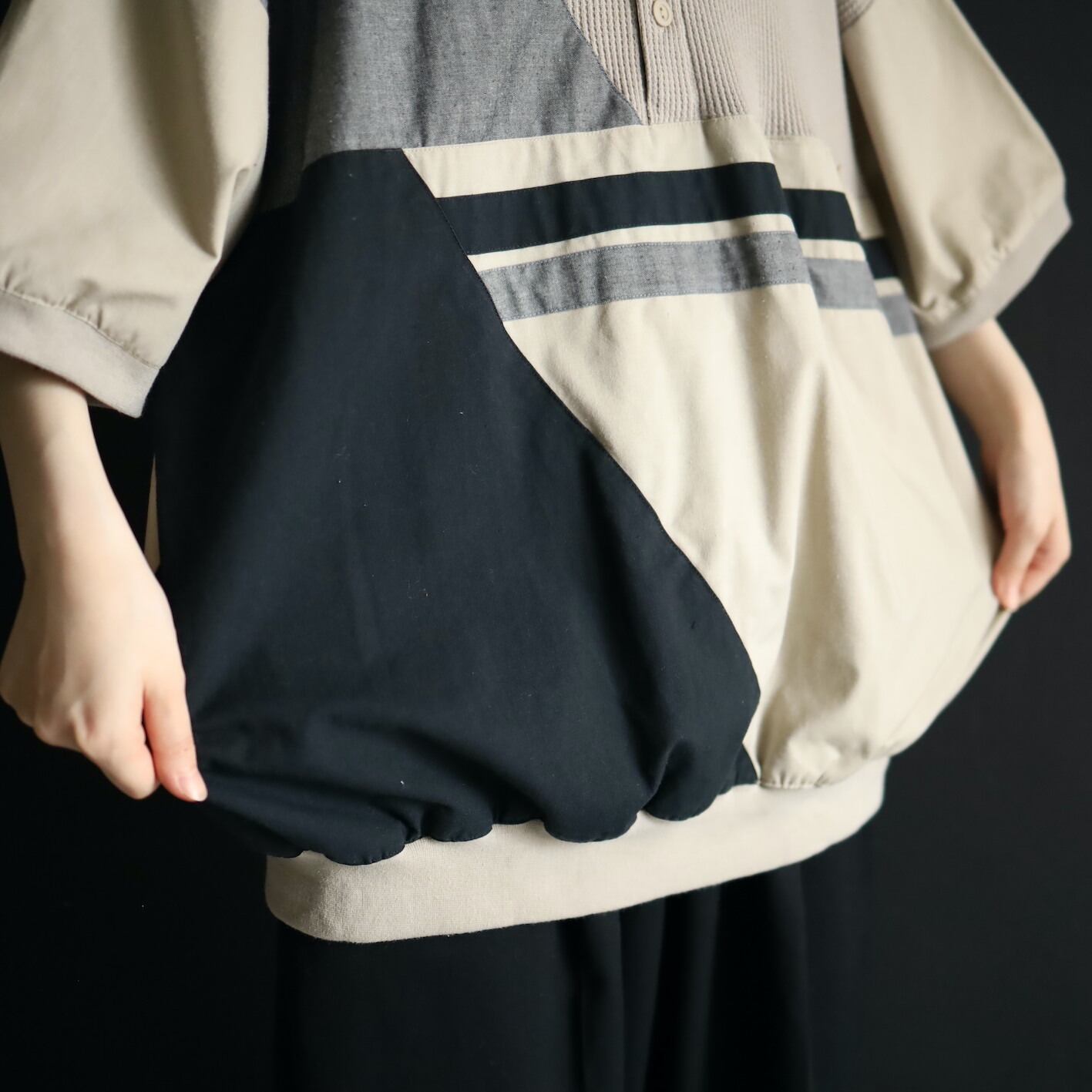 ボディが裾のリブで引き締まることで,ぼてっとした立体感あるシルエットに.