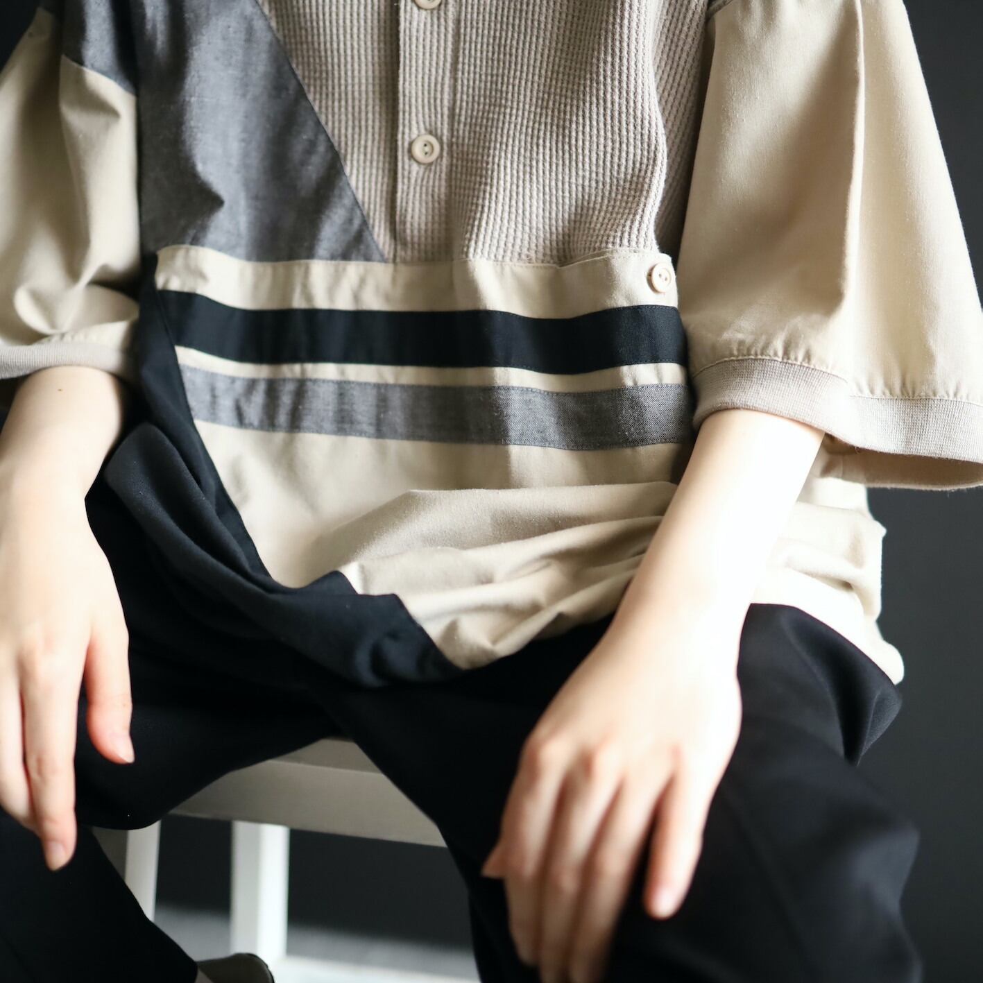 アースカラーとモノトーンによってメリハリもありつつ,カジュアルで遊び心の詰まった一枚です.