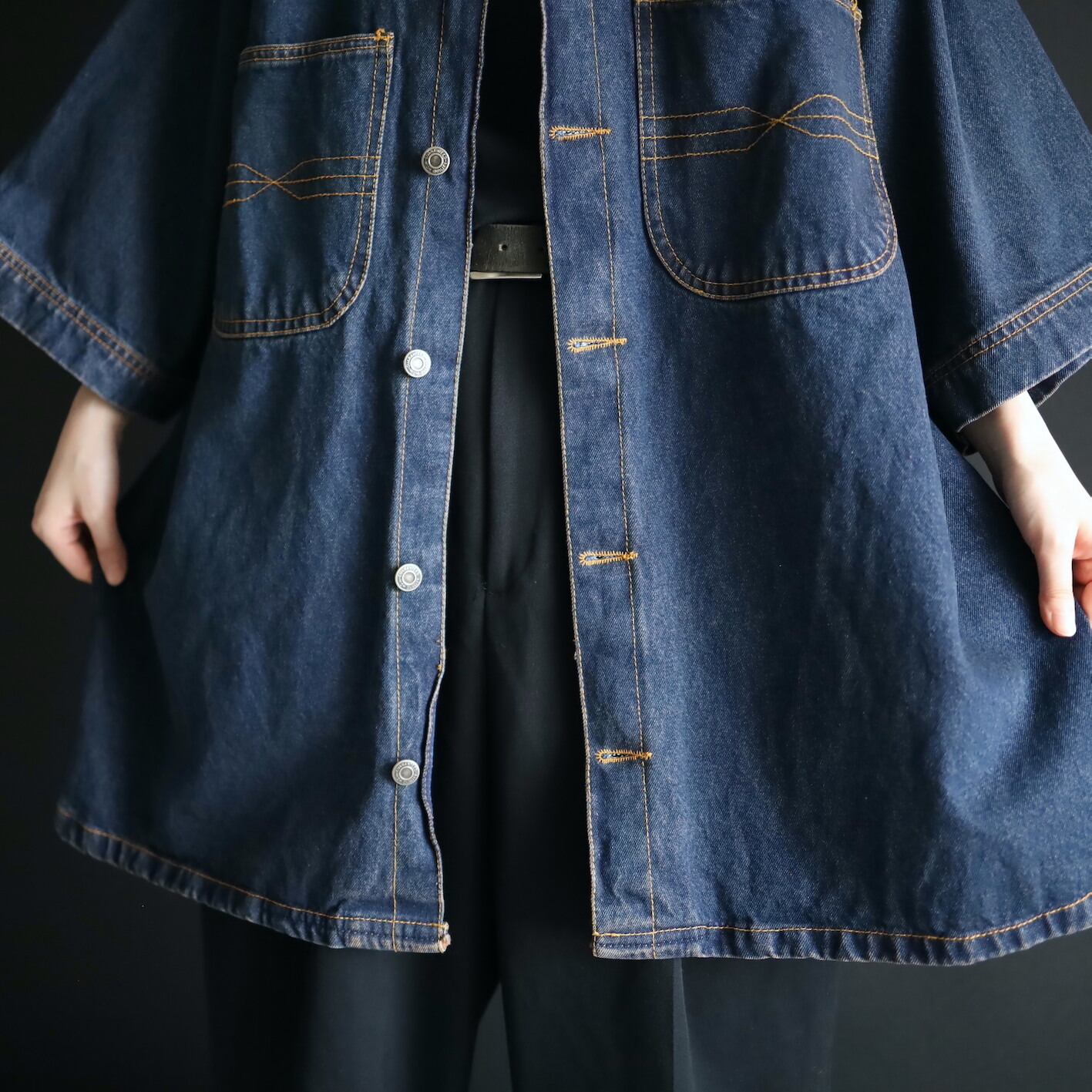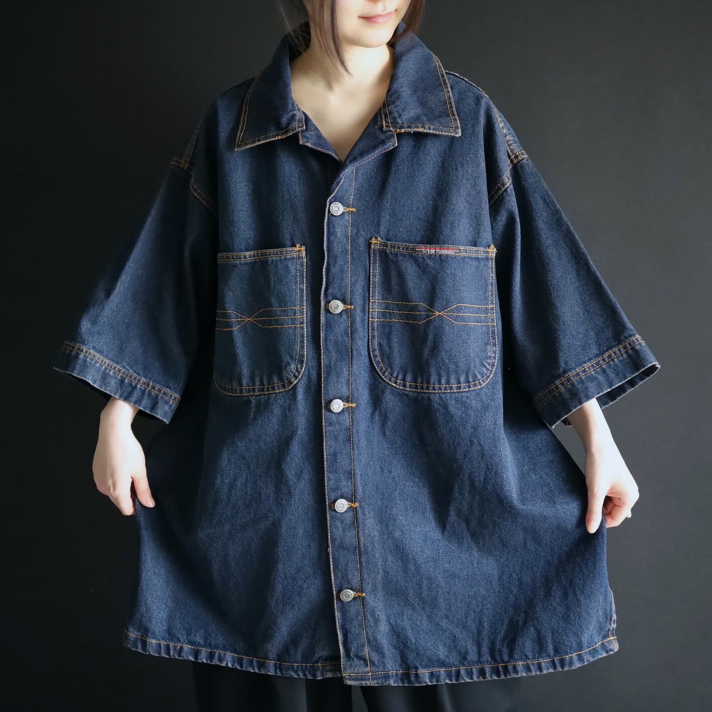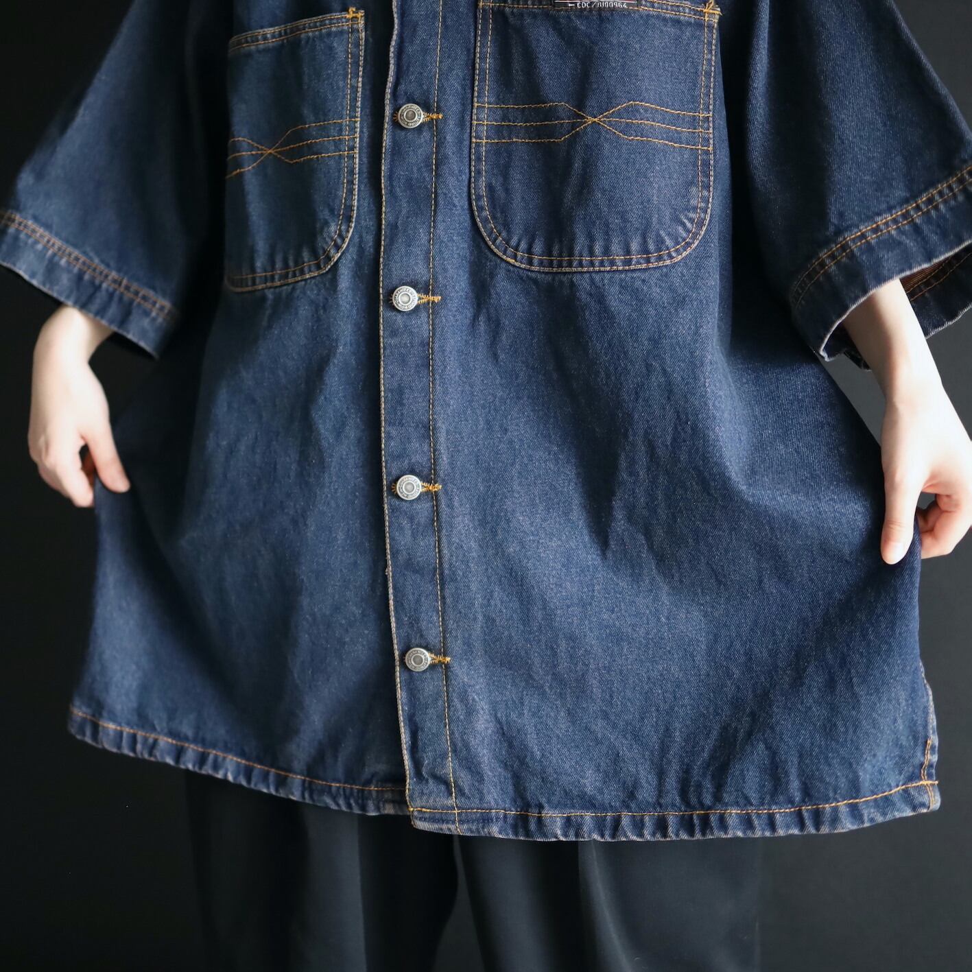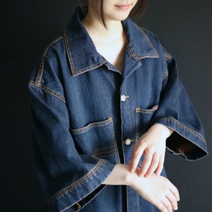 雰囲気のあるいい色味のデニムシャツジャケット.