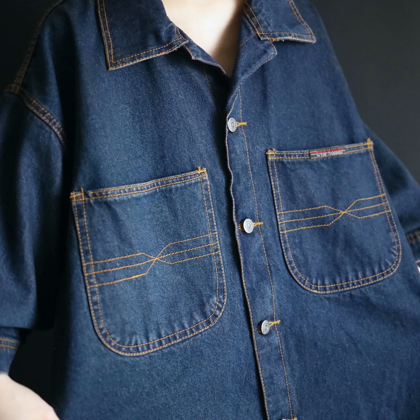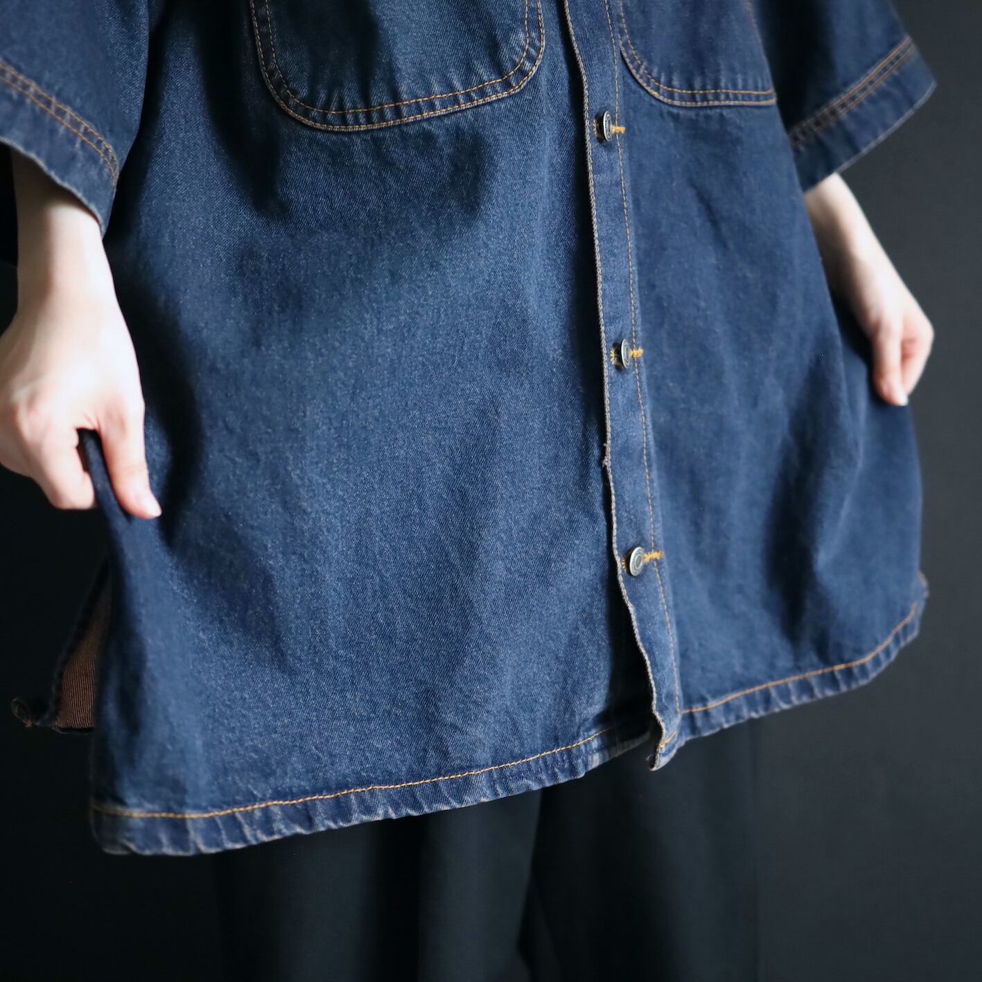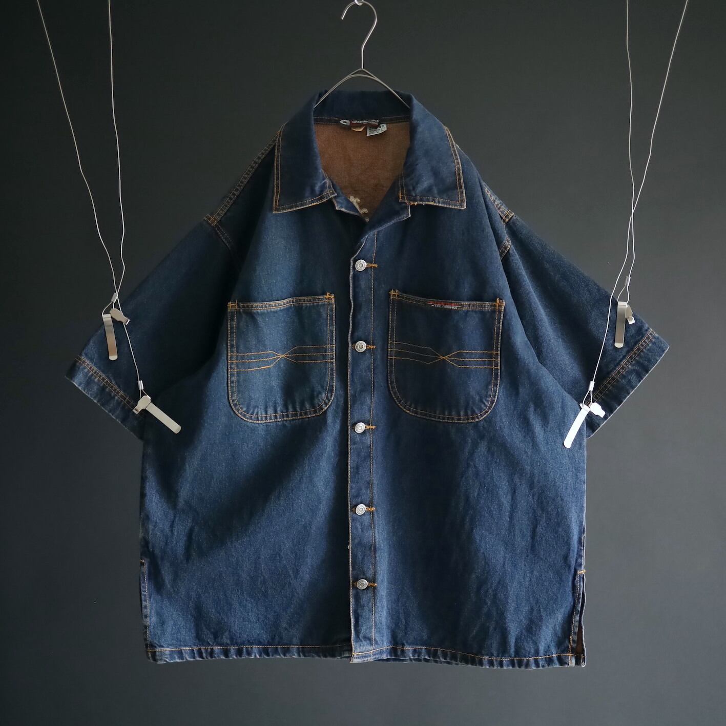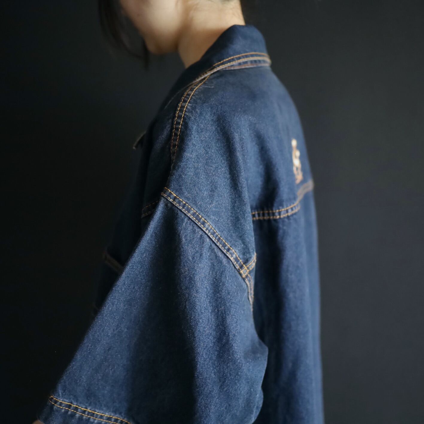雰囲気のあるいい色味のデニムシャツジャケット.