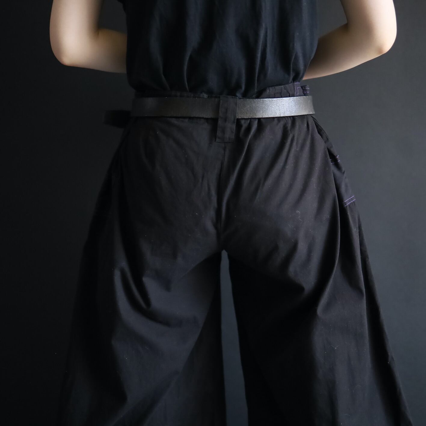 ウエストから股上,膝に向かうにつれ,ボリュームを増していき,裾でキュッと引き締まる.