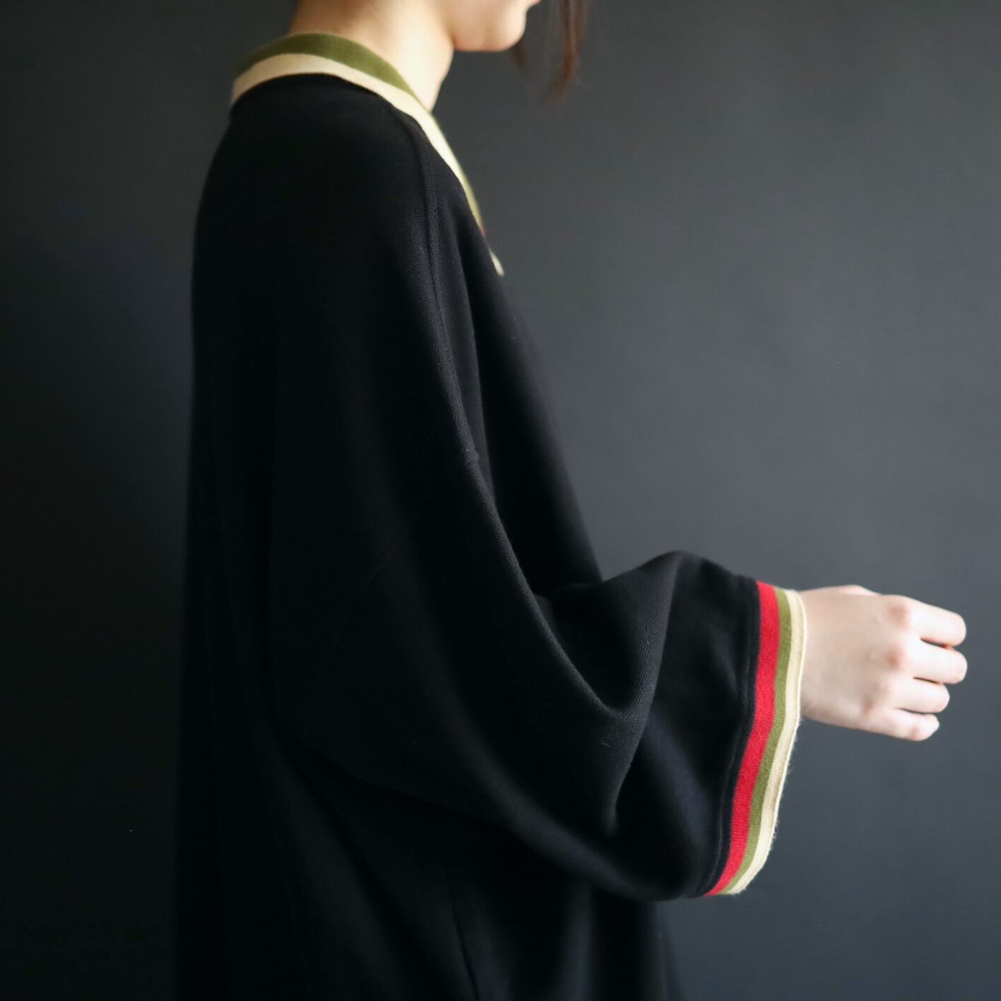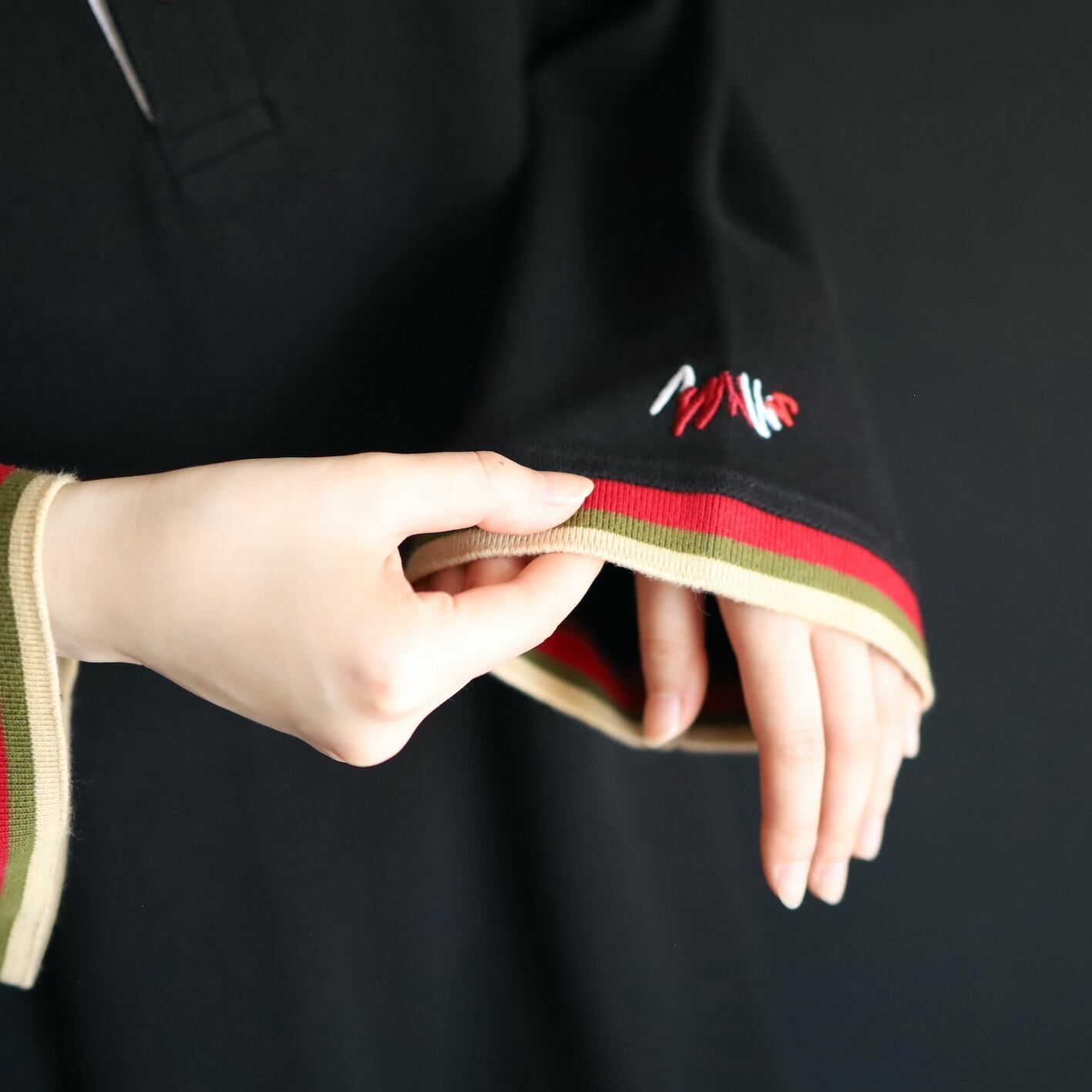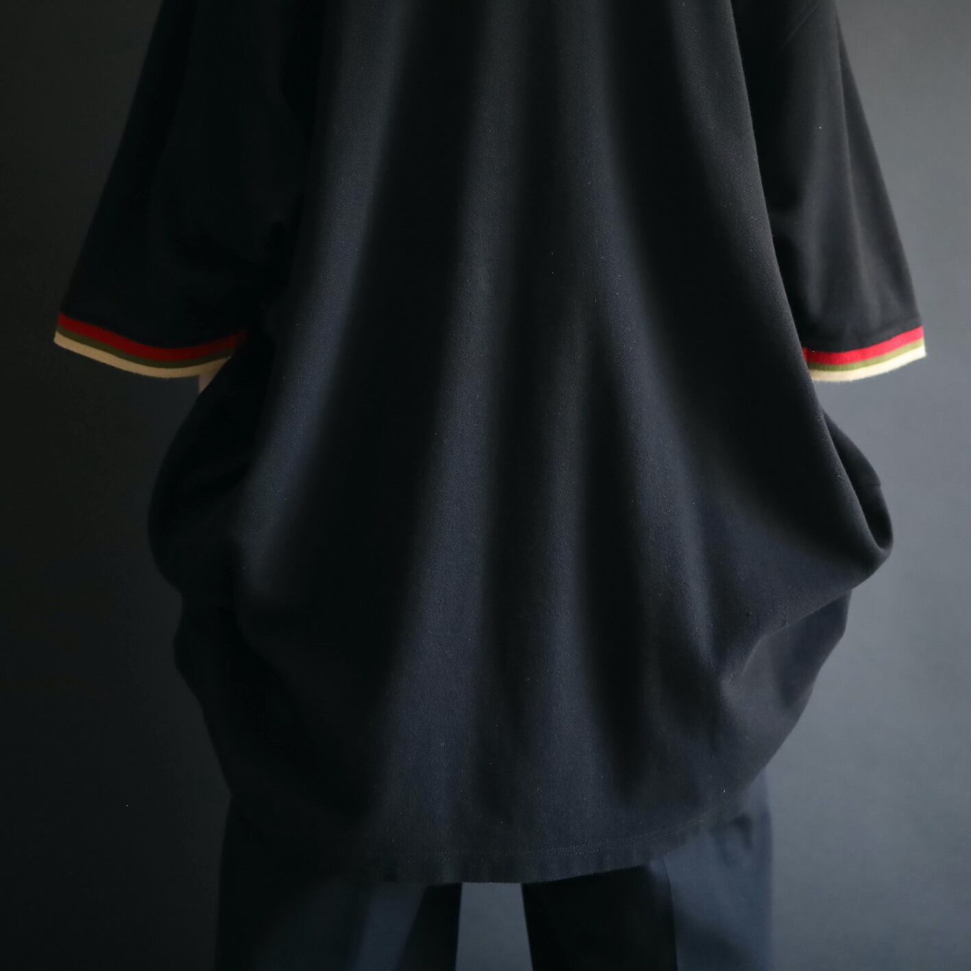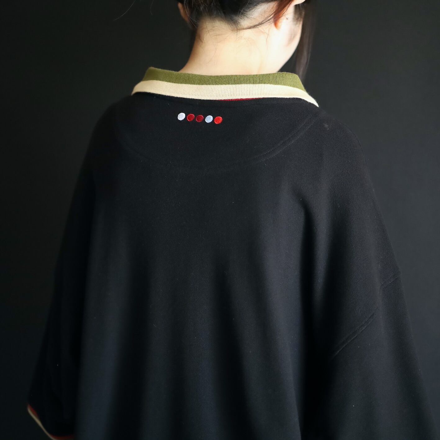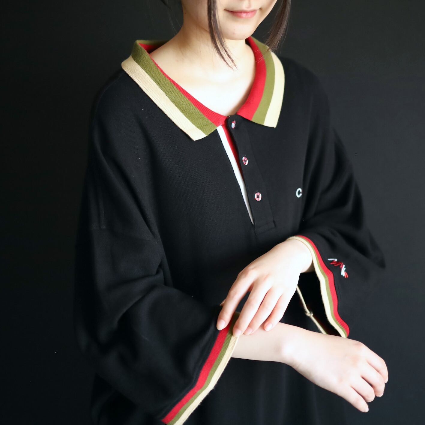 袖先と襟がレッド,カーキ,ベージュのライン切替という,独特性溢れる配色もユニークです.