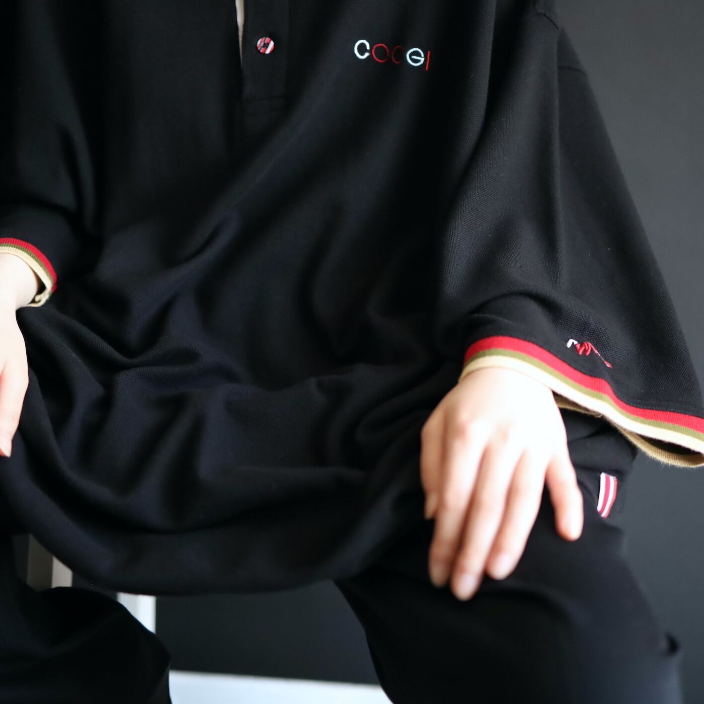 胸元と首後ろにCOOGIのブランドネーム刺繍.