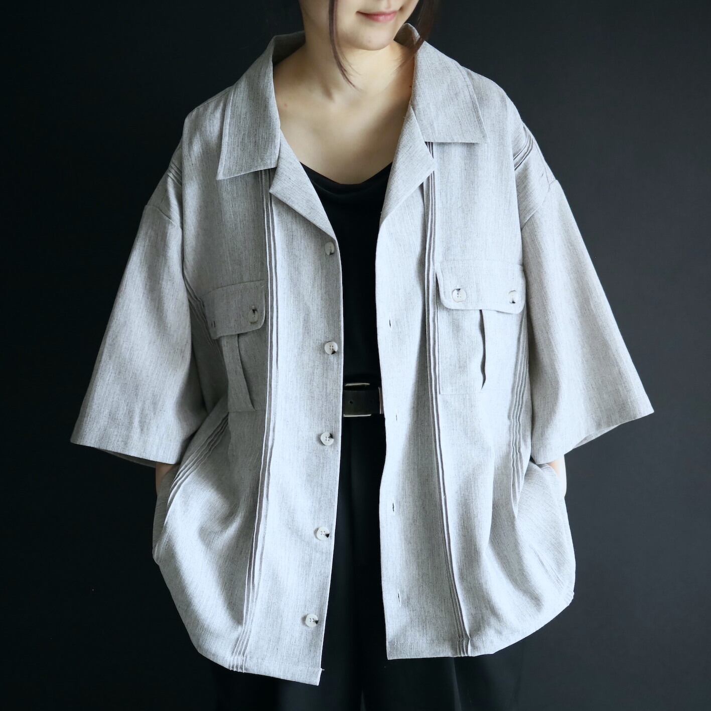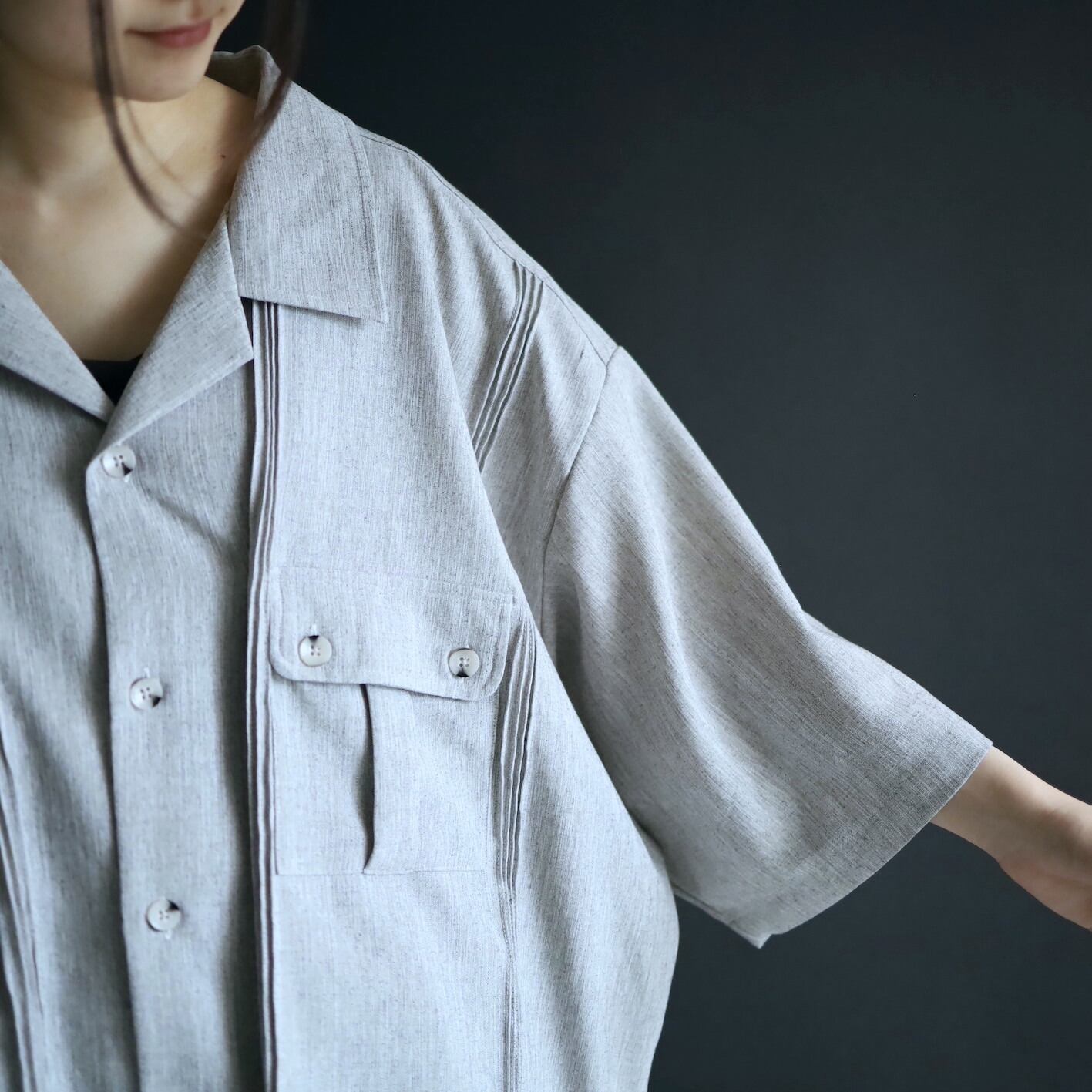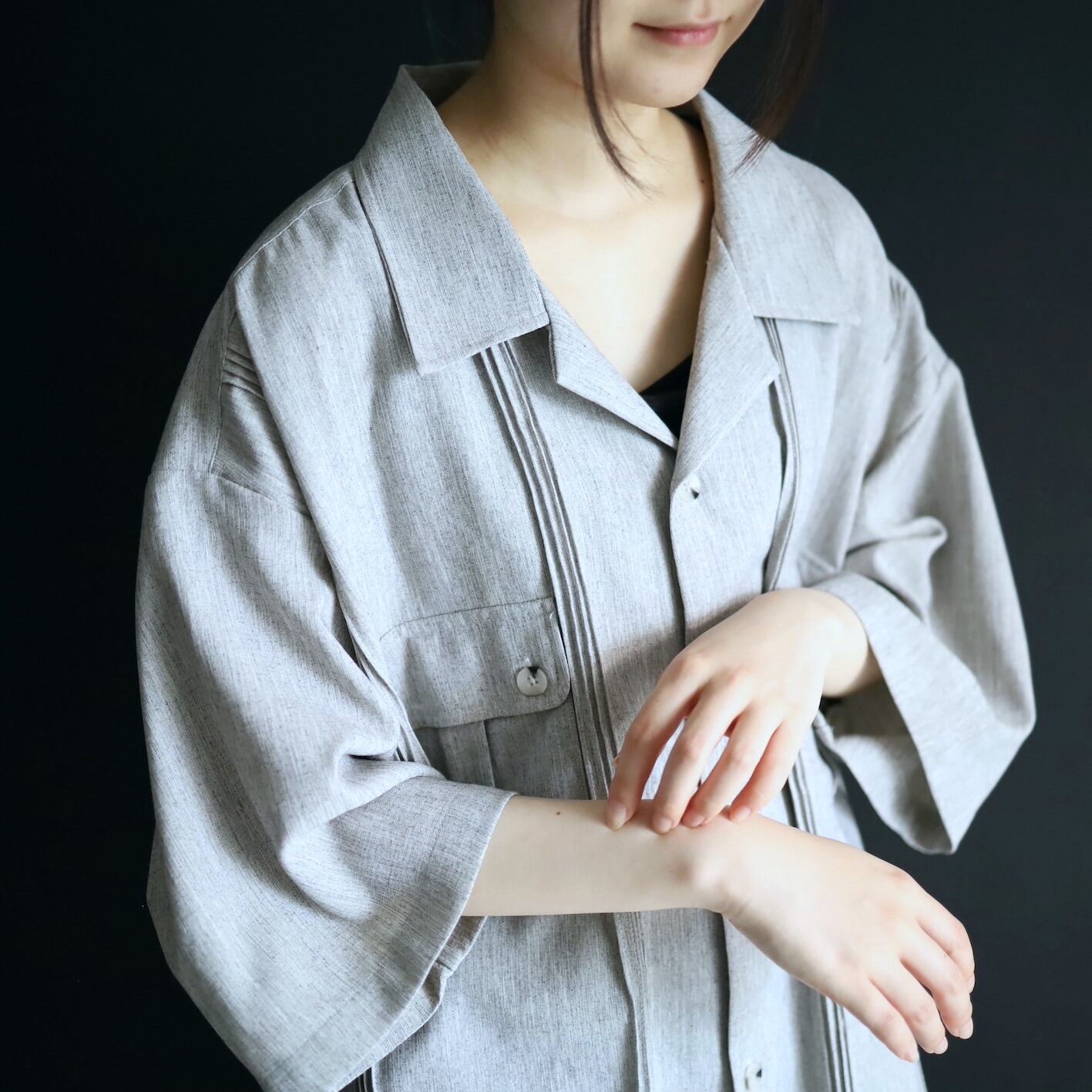 肩から裾に向かうシンメトリーのプリーツデザインで,立体的な表情なのが遊び心効いてます.