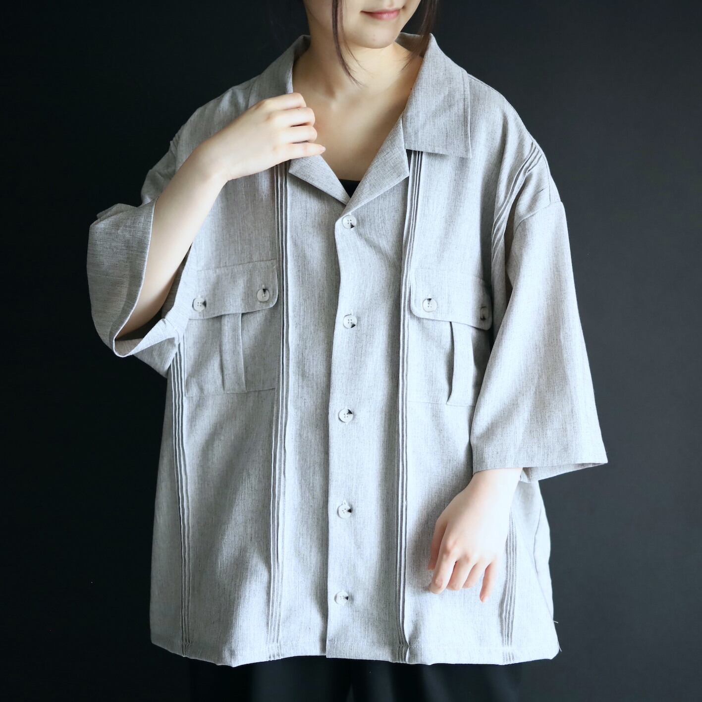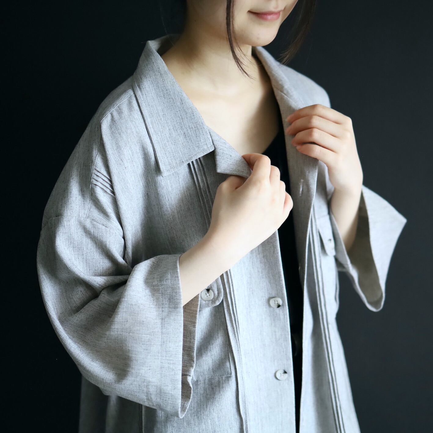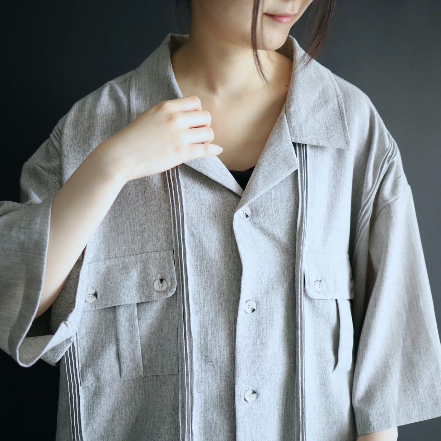 肩から裾に向かうシンメトリーのプリーツデザインで,立体的な表情なのが遊び心効いてます.
