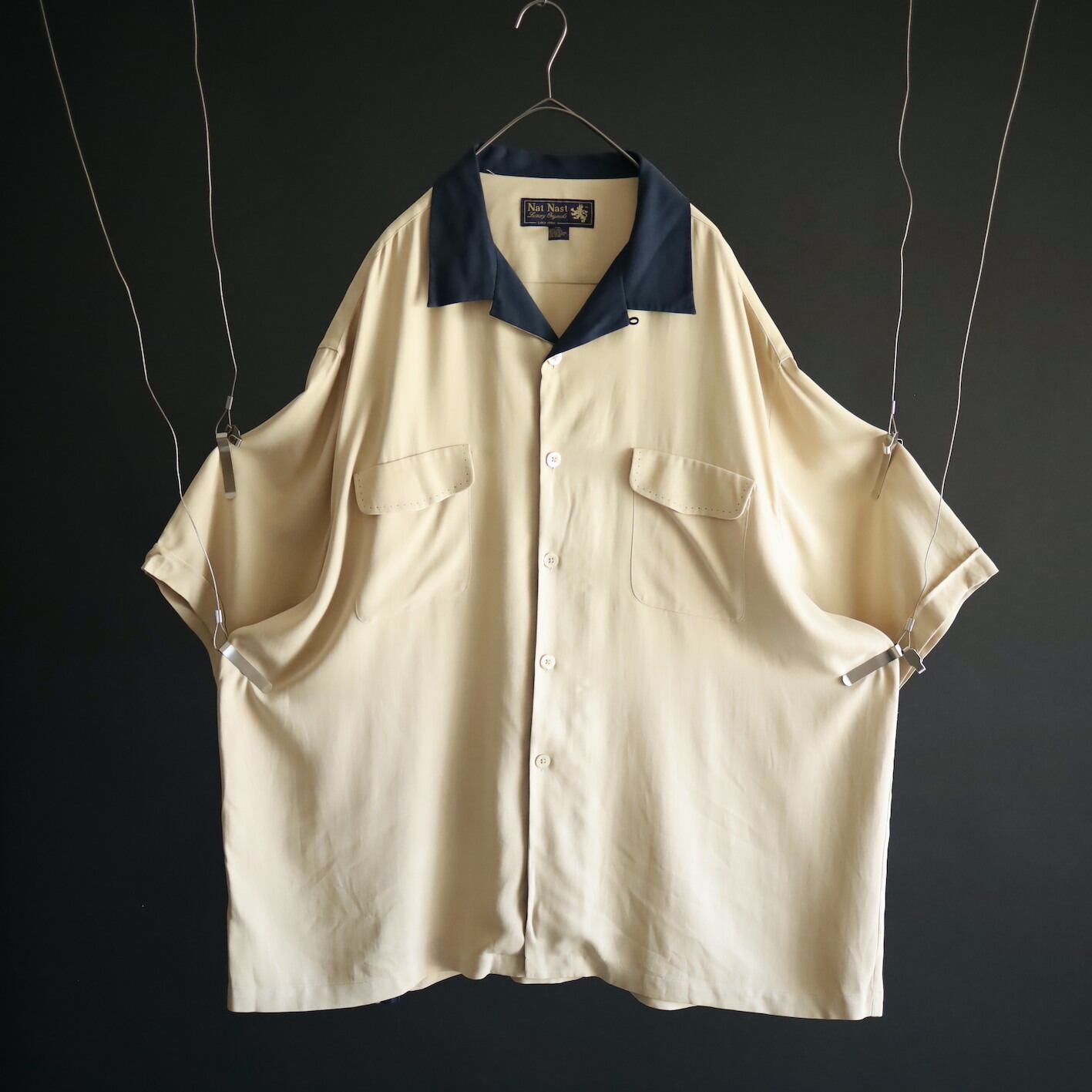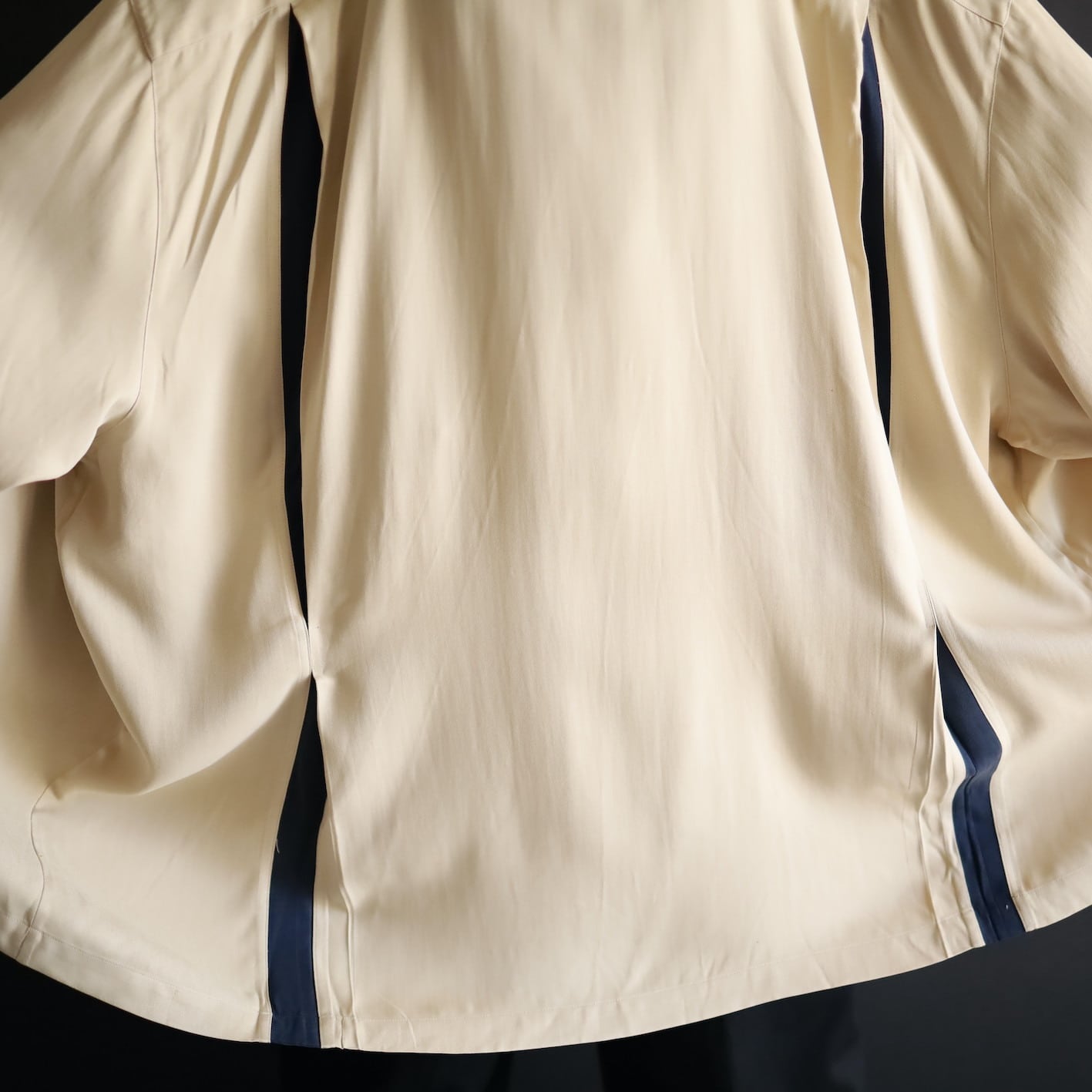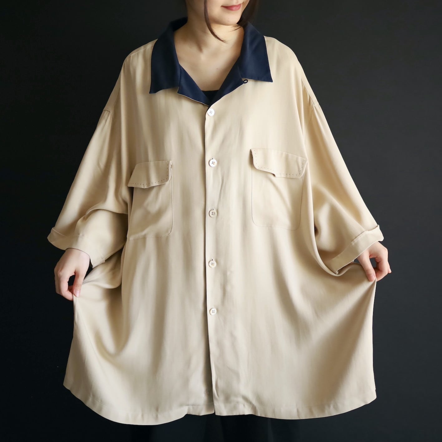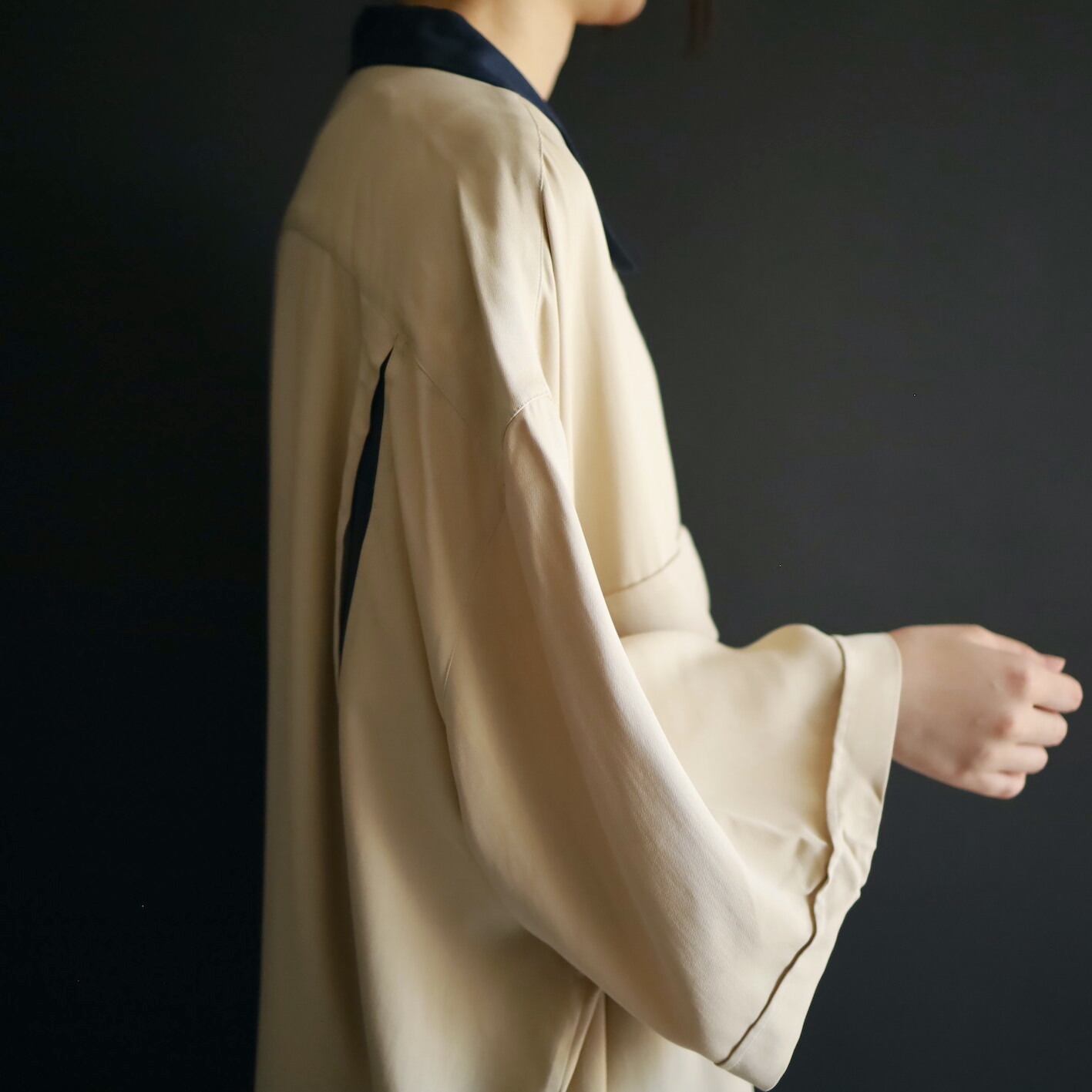 ベージュをベースにしたボディに,襟がネイビーのバイカラー切替.