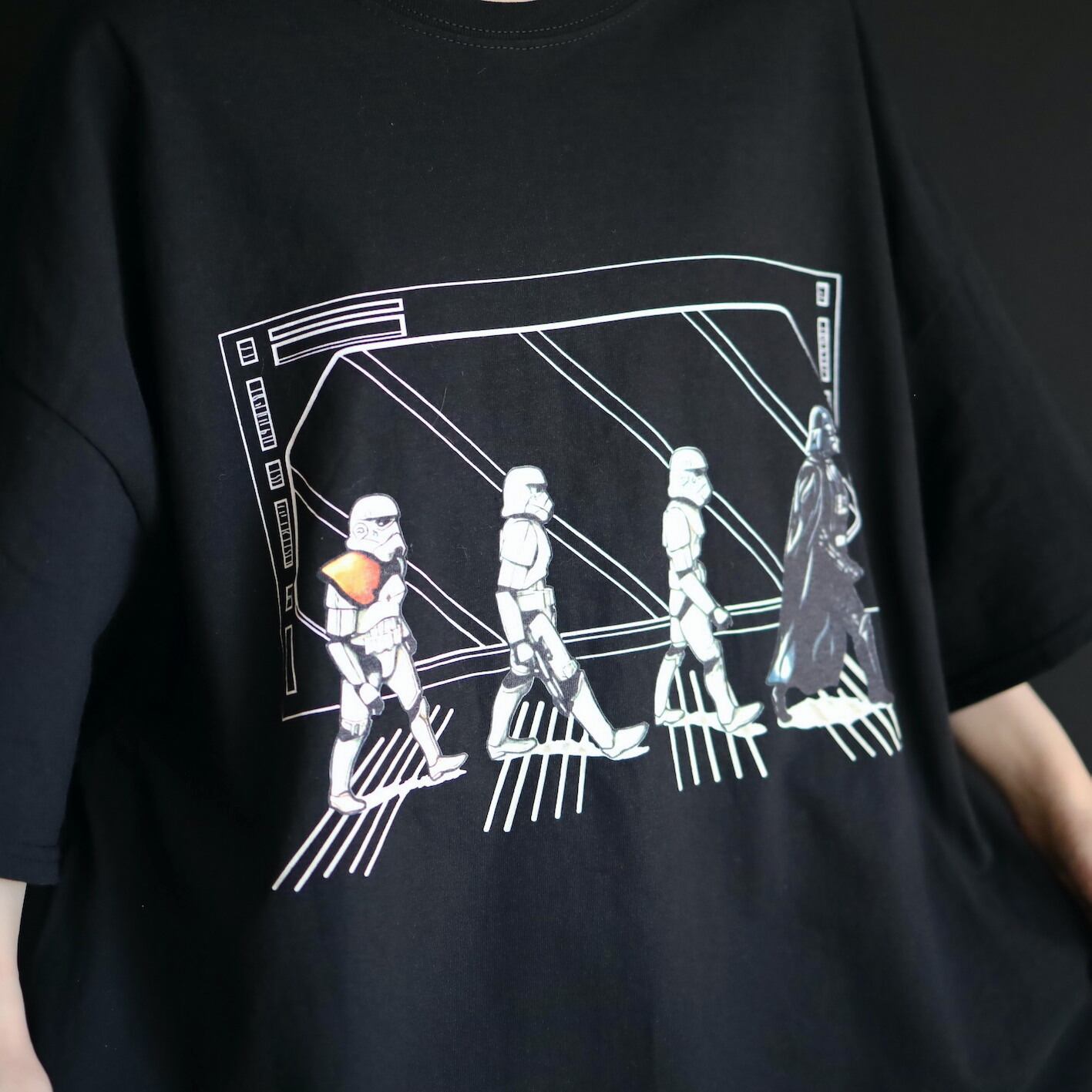 フロントにダースベイダー,ストームトルーパーがBeatlesのアビイ・ロード風に歩いてます.