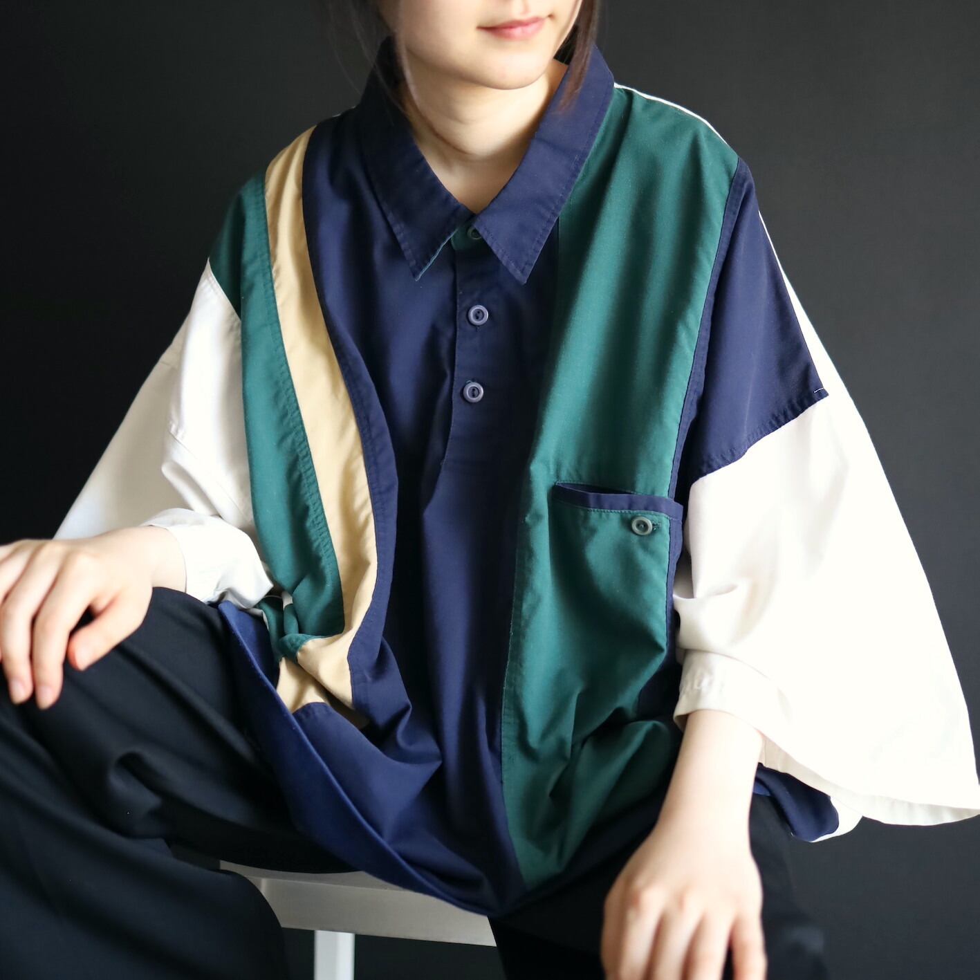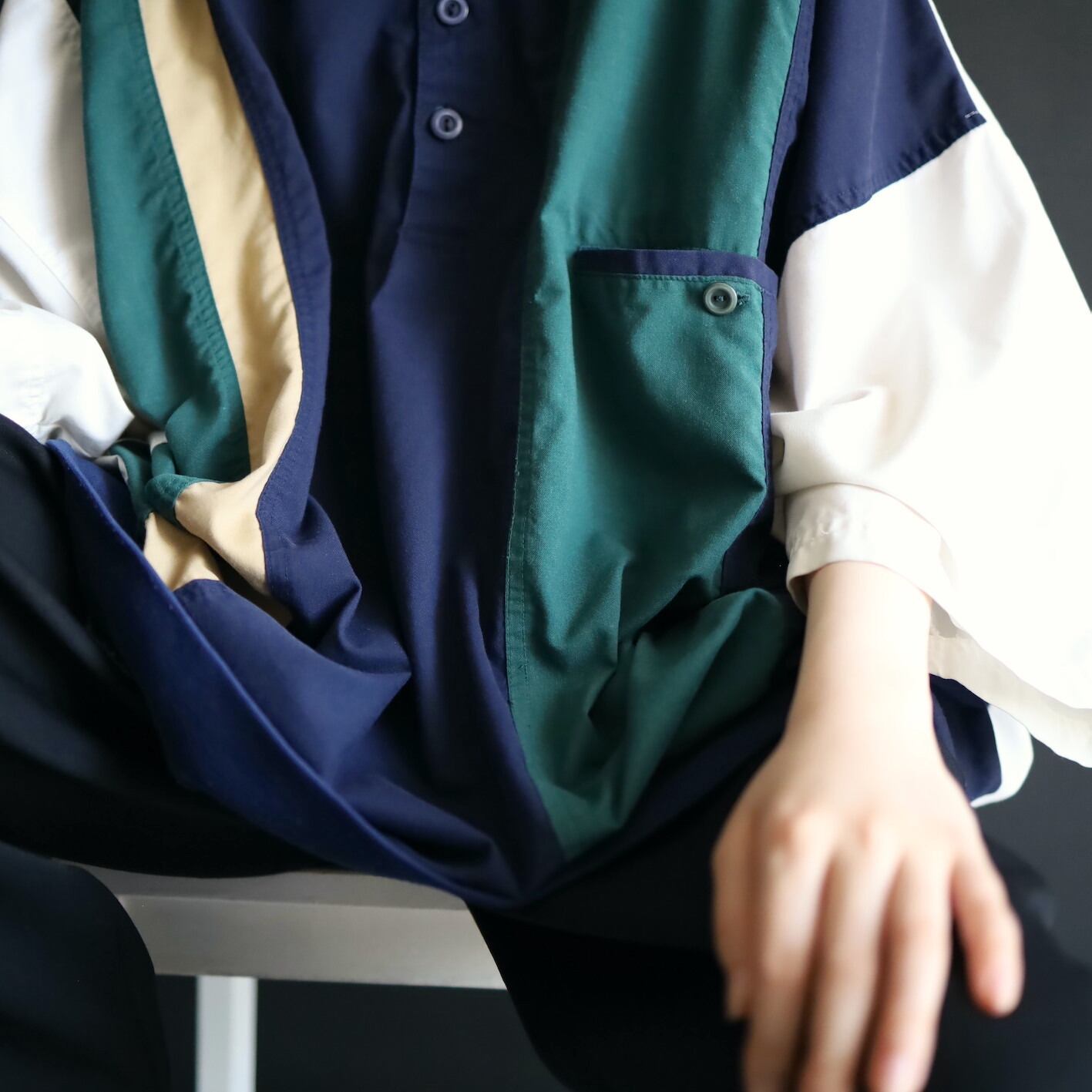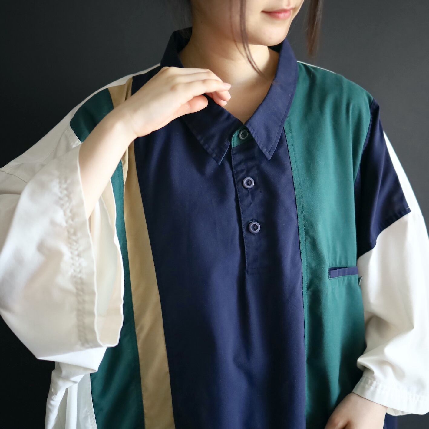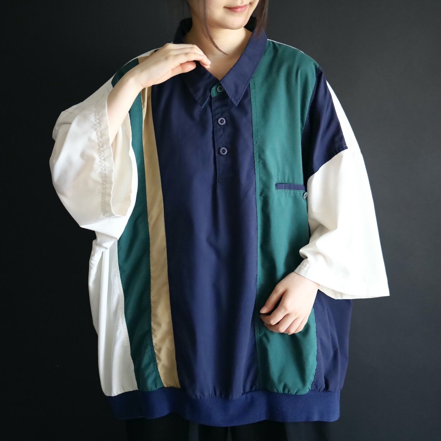 超ビッグで可愛らしいカラー切替のプルオーバーシャツ.