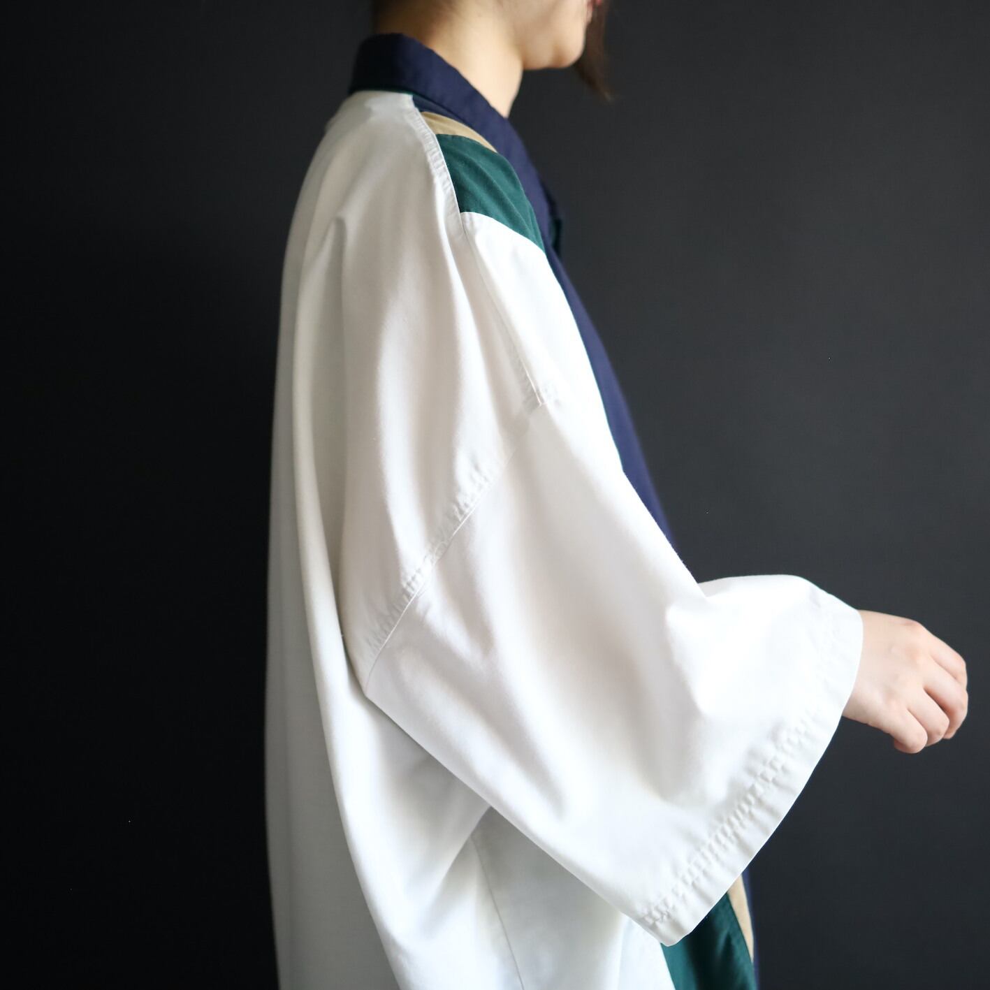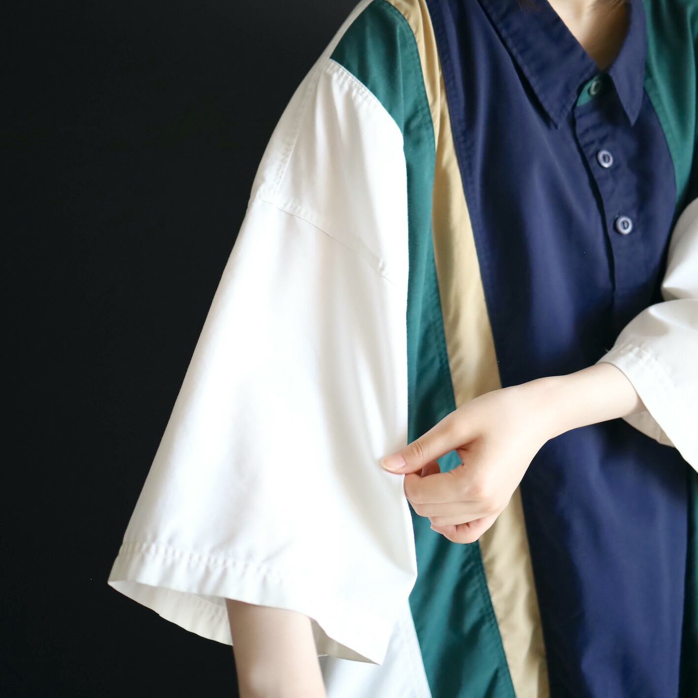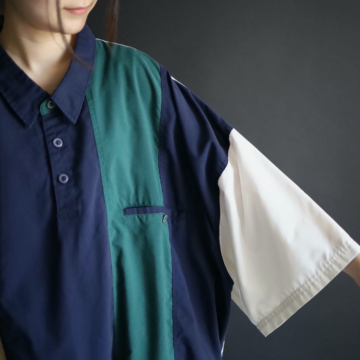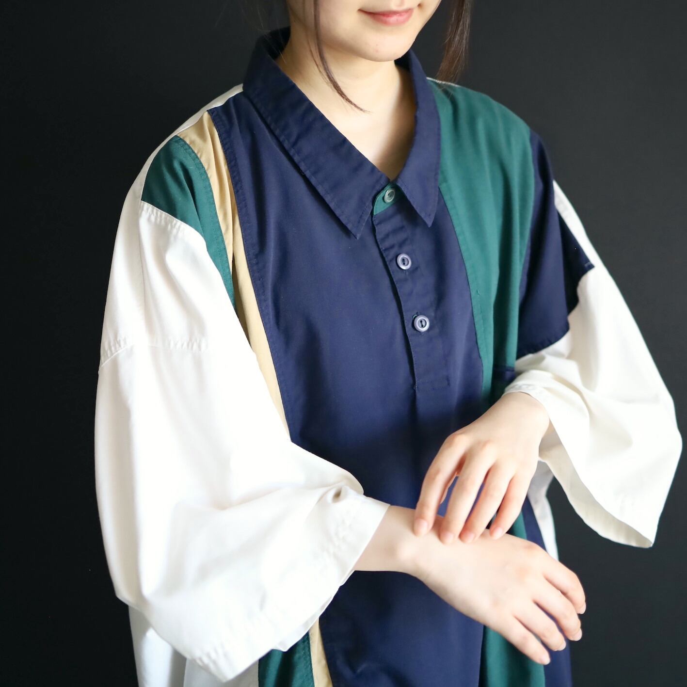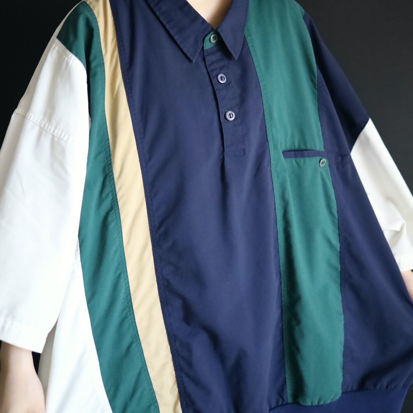 超ビッグで可愛らしいカラー切替のプルオーバーシャツ.