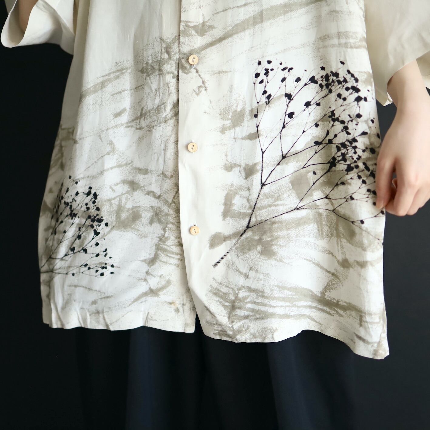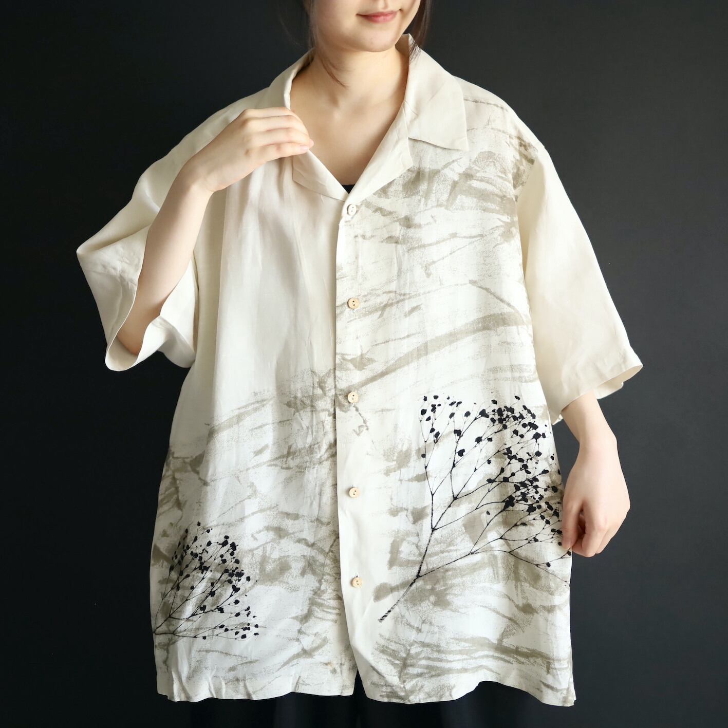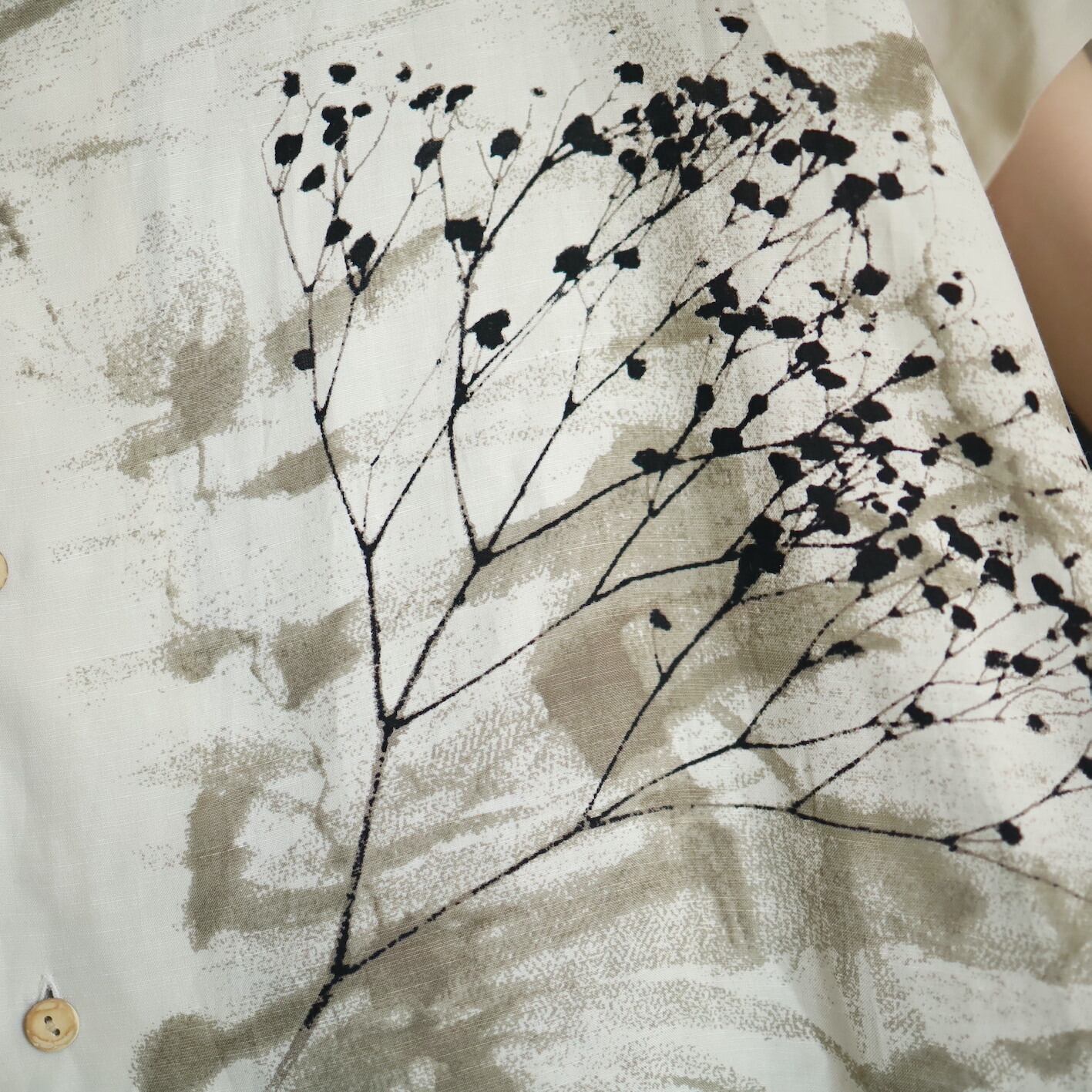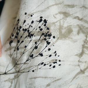 柔らかいベージュの落ち着きのあるカラーに,雰囲気のある和テイストな柄が特徴的.