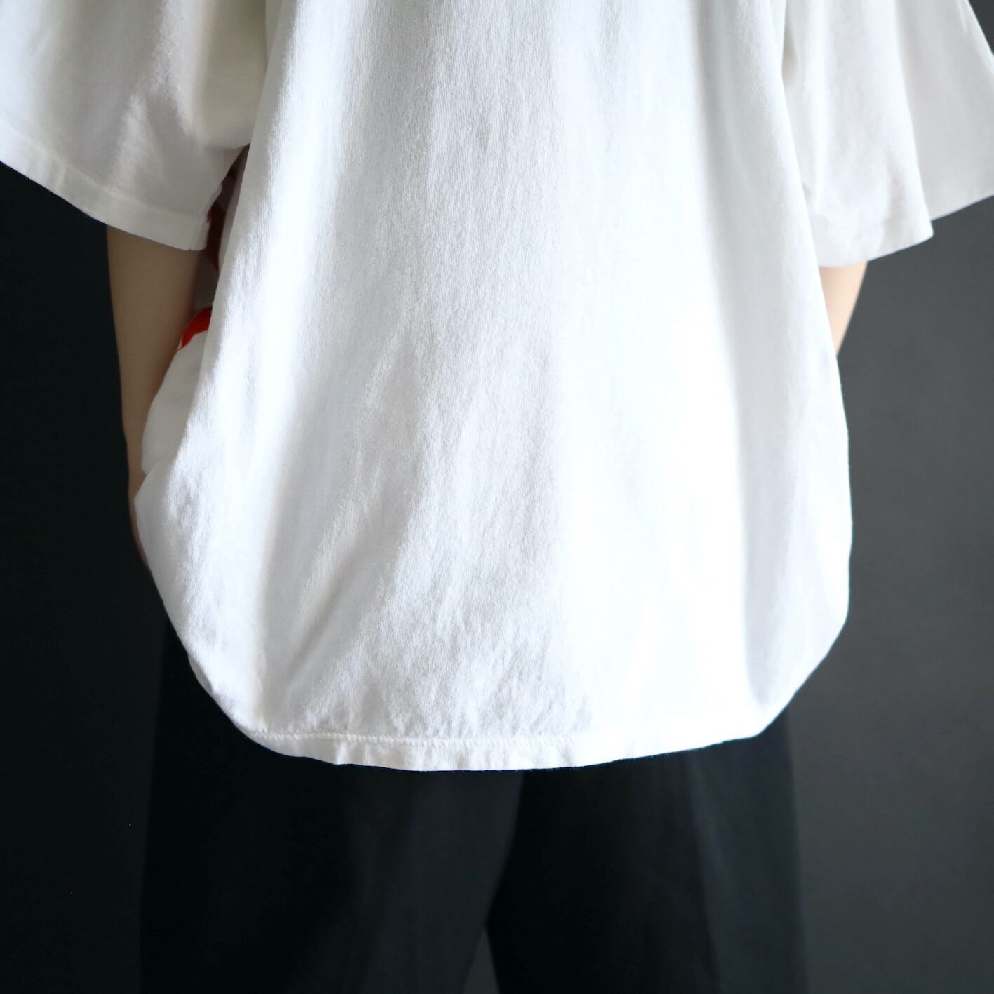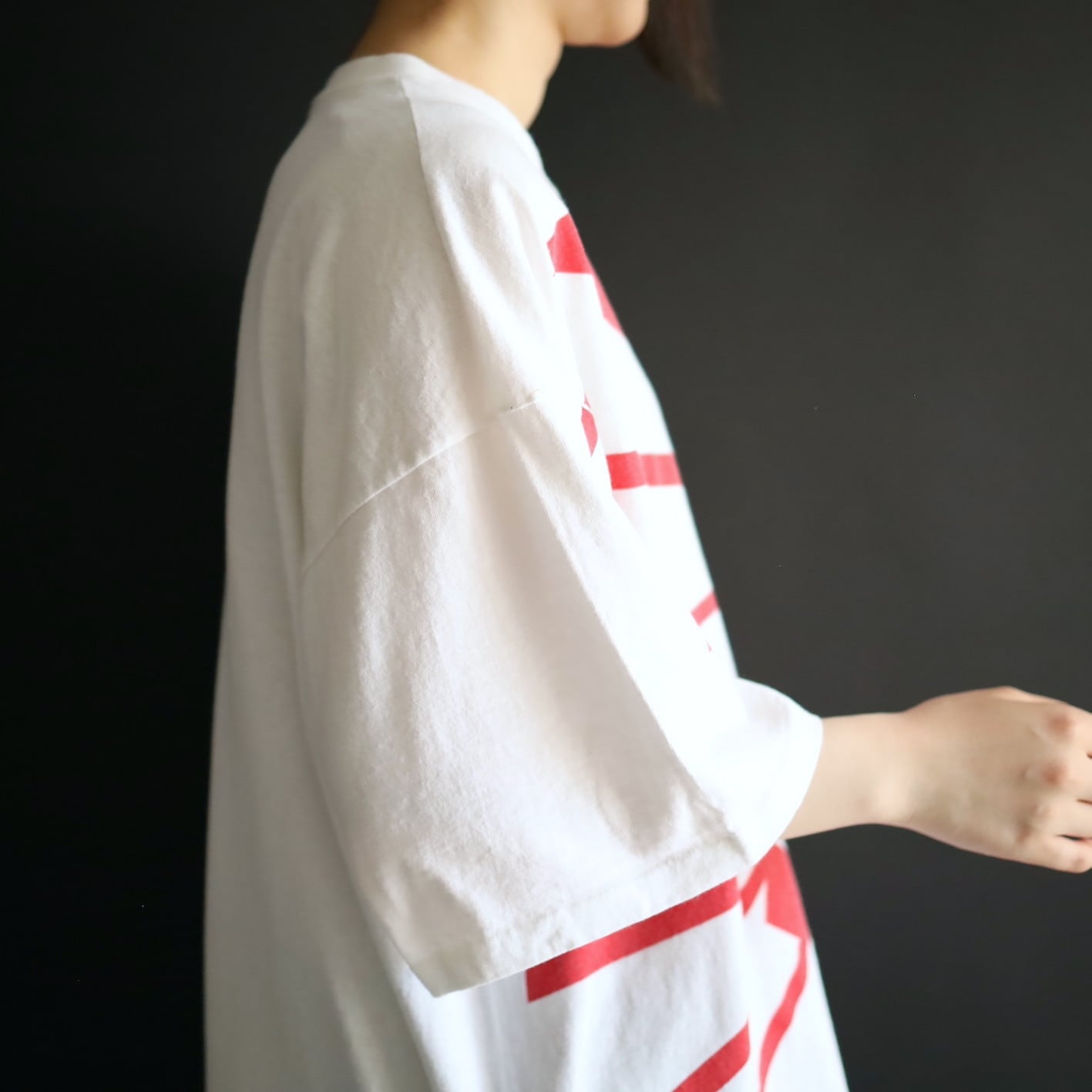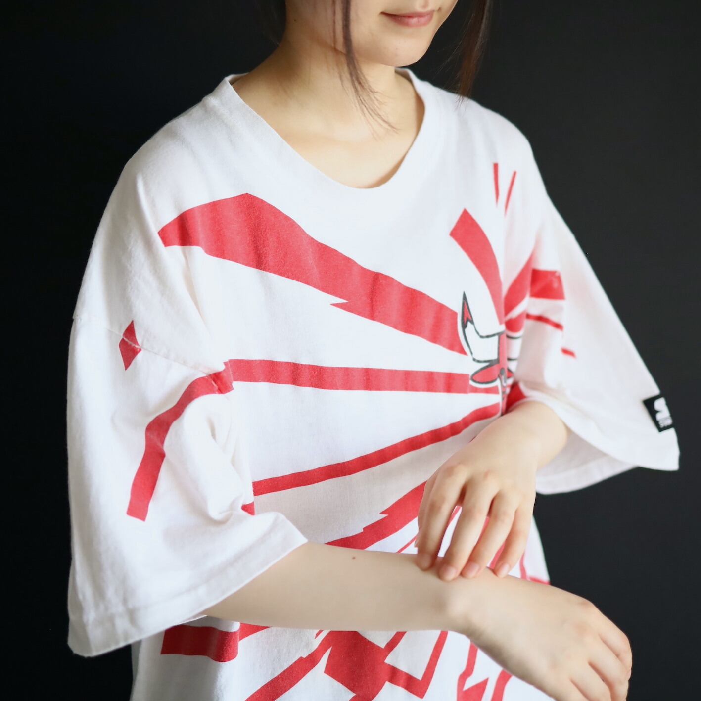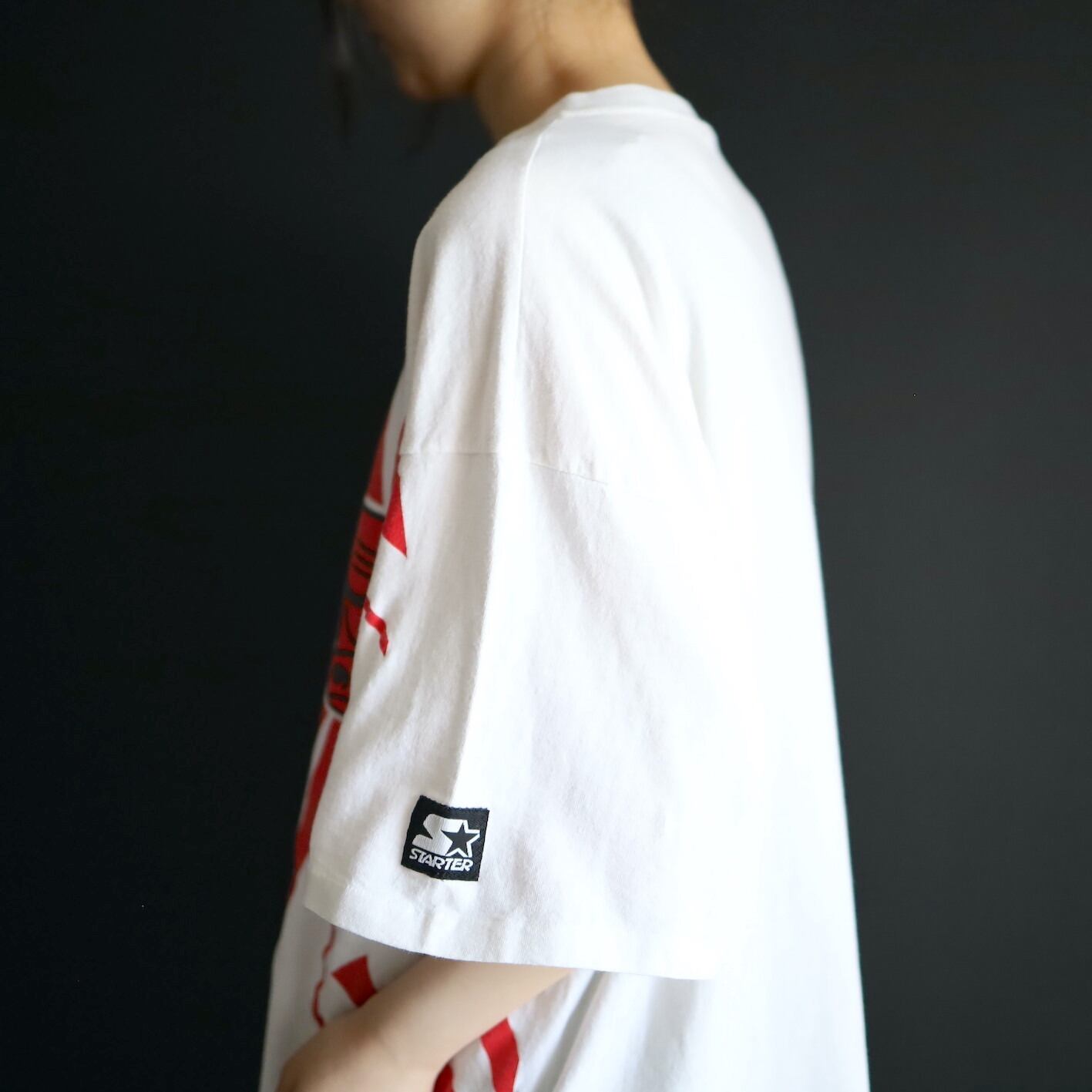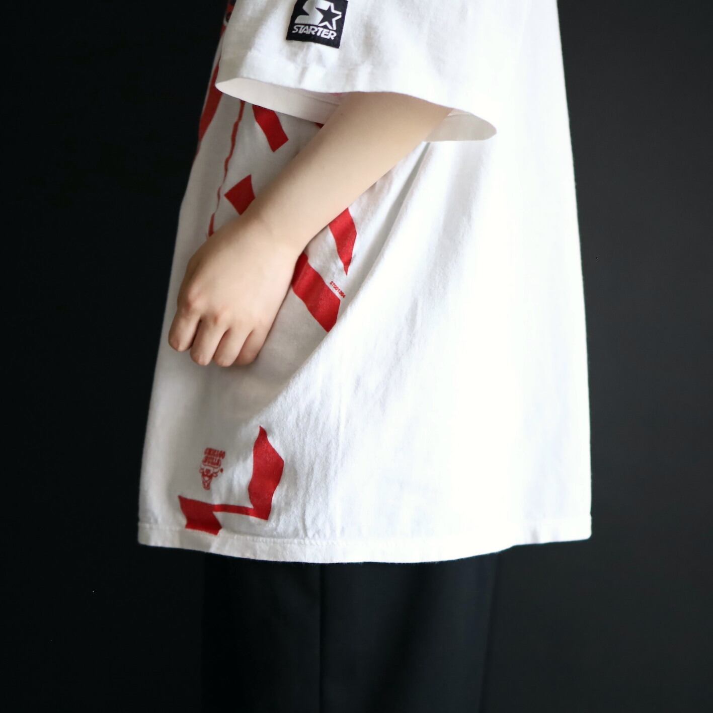 ホワイトカラーベのボディに,パキッと映えるレッドベースのNBA,CHICAGO BULLSプリント.