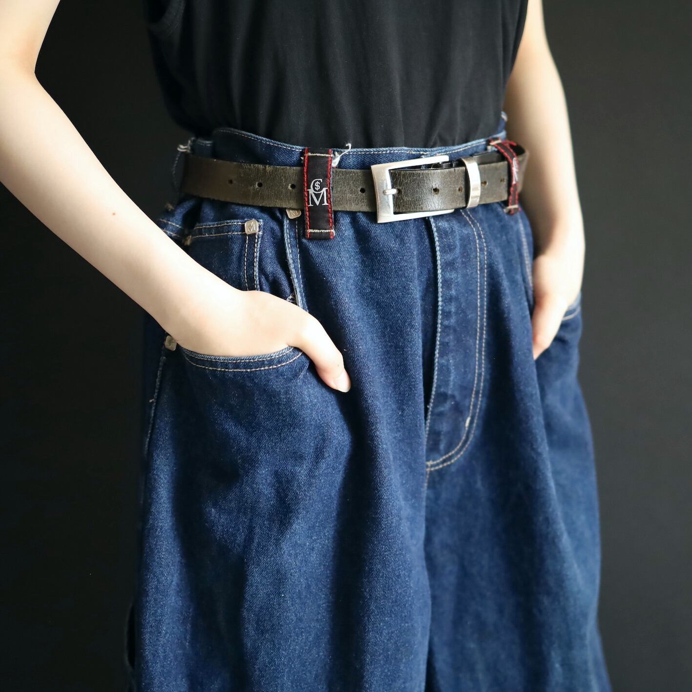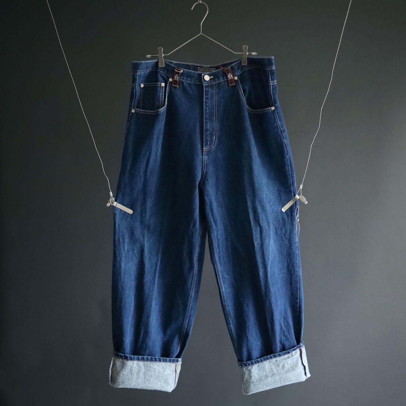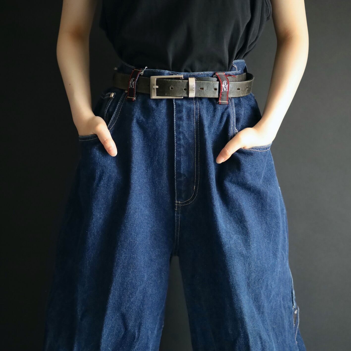 ウエスト36インチ,股上も深さあるため,ベルト絞って履いてもシルエットが崩れにくく,デカバキもしやすい一本です.