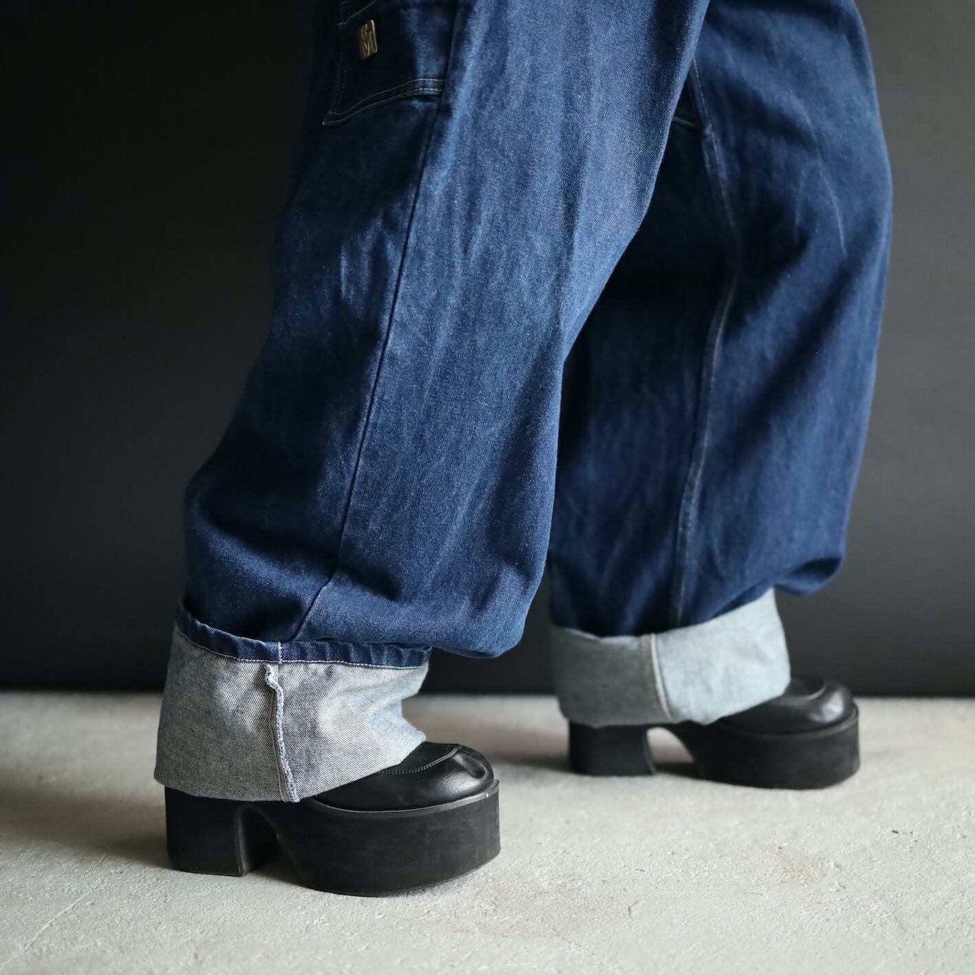 ほとんど色落ちのないインディゴカラーデニム.