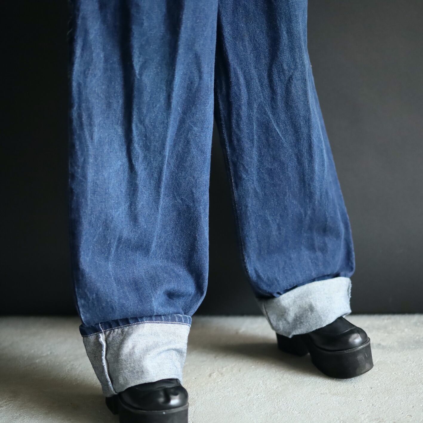 ウエスト片面 45cm / 股上 41cm / 全長 117cm / 渡り 39cm / 裾幅 25cm