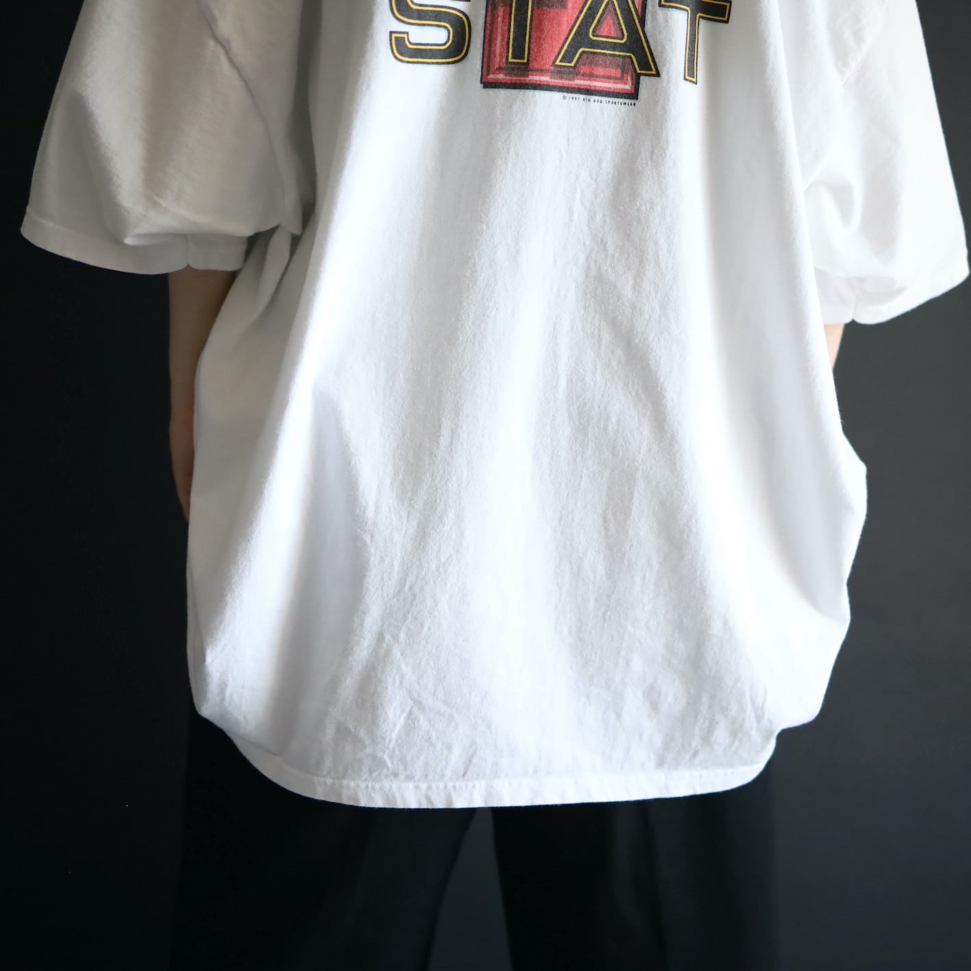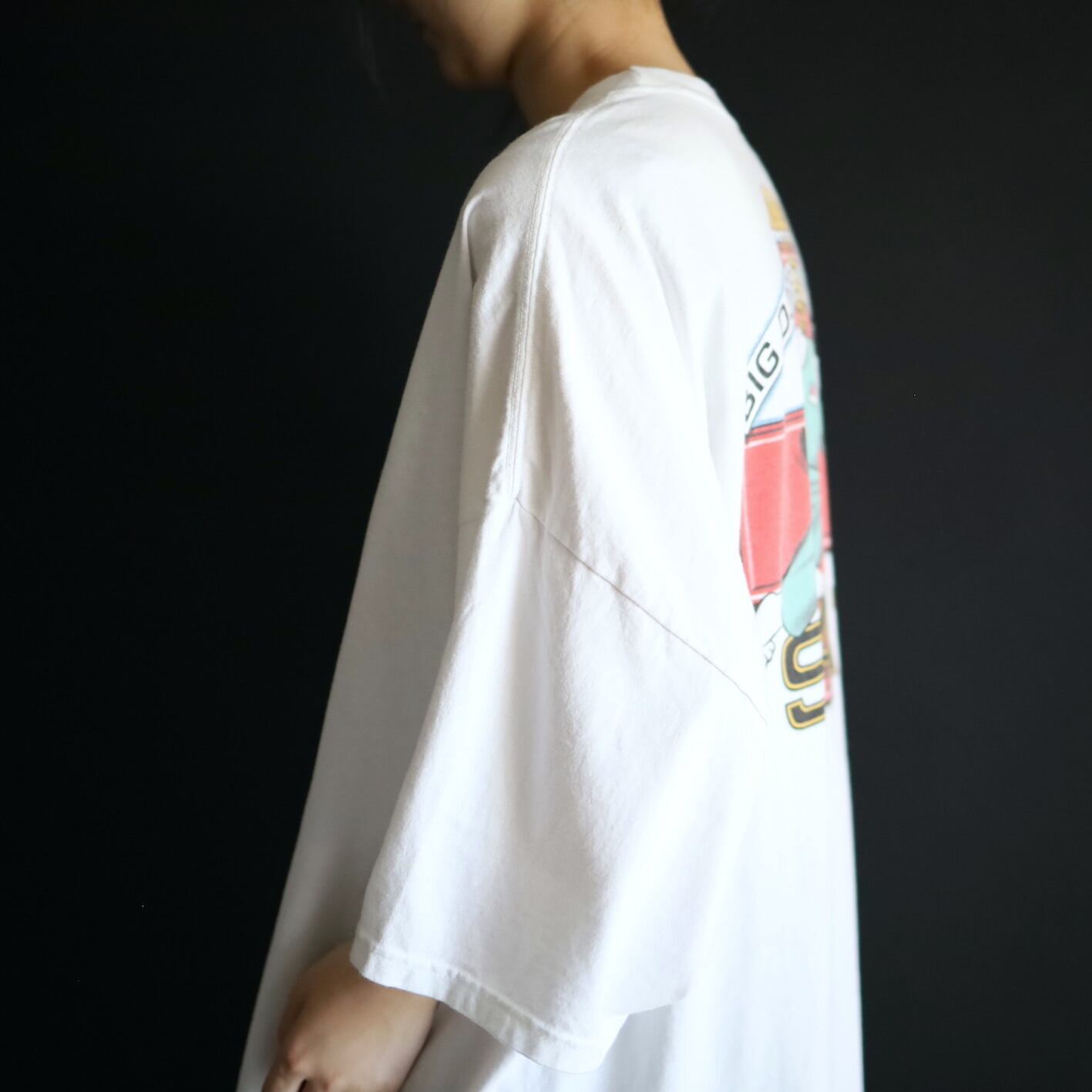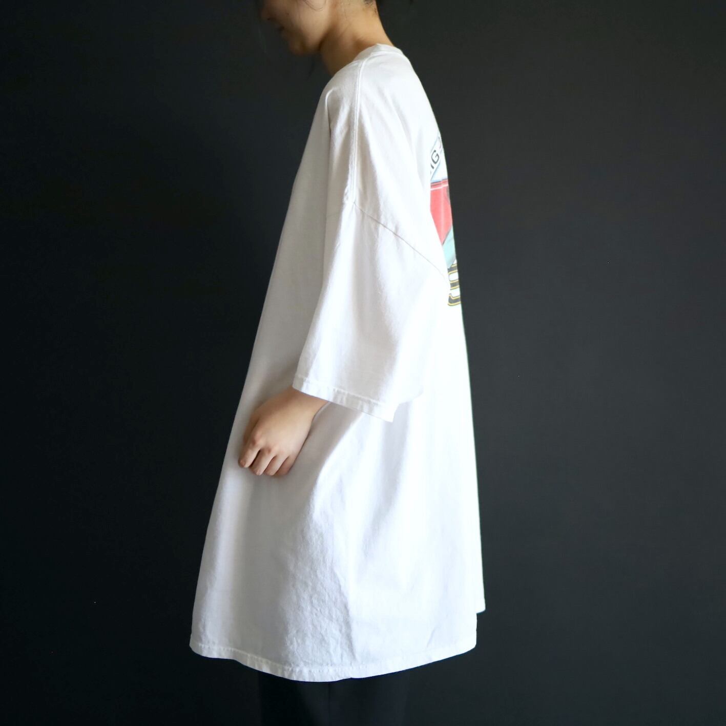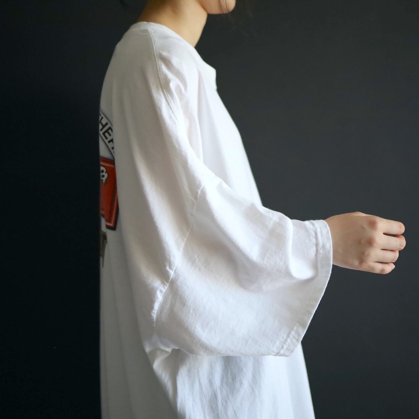 ホワイトベースのため汎用性も高く,様々なボトムスと相性もいい万能な一枚.