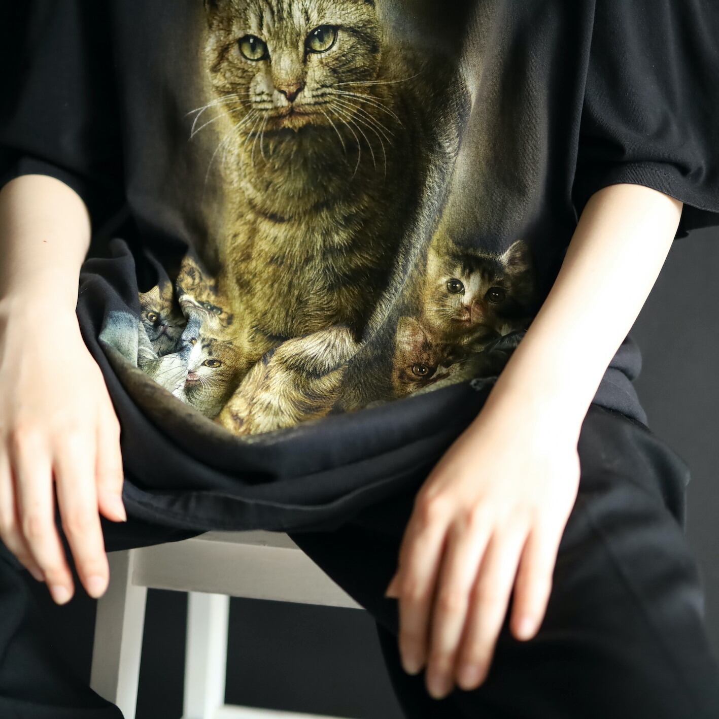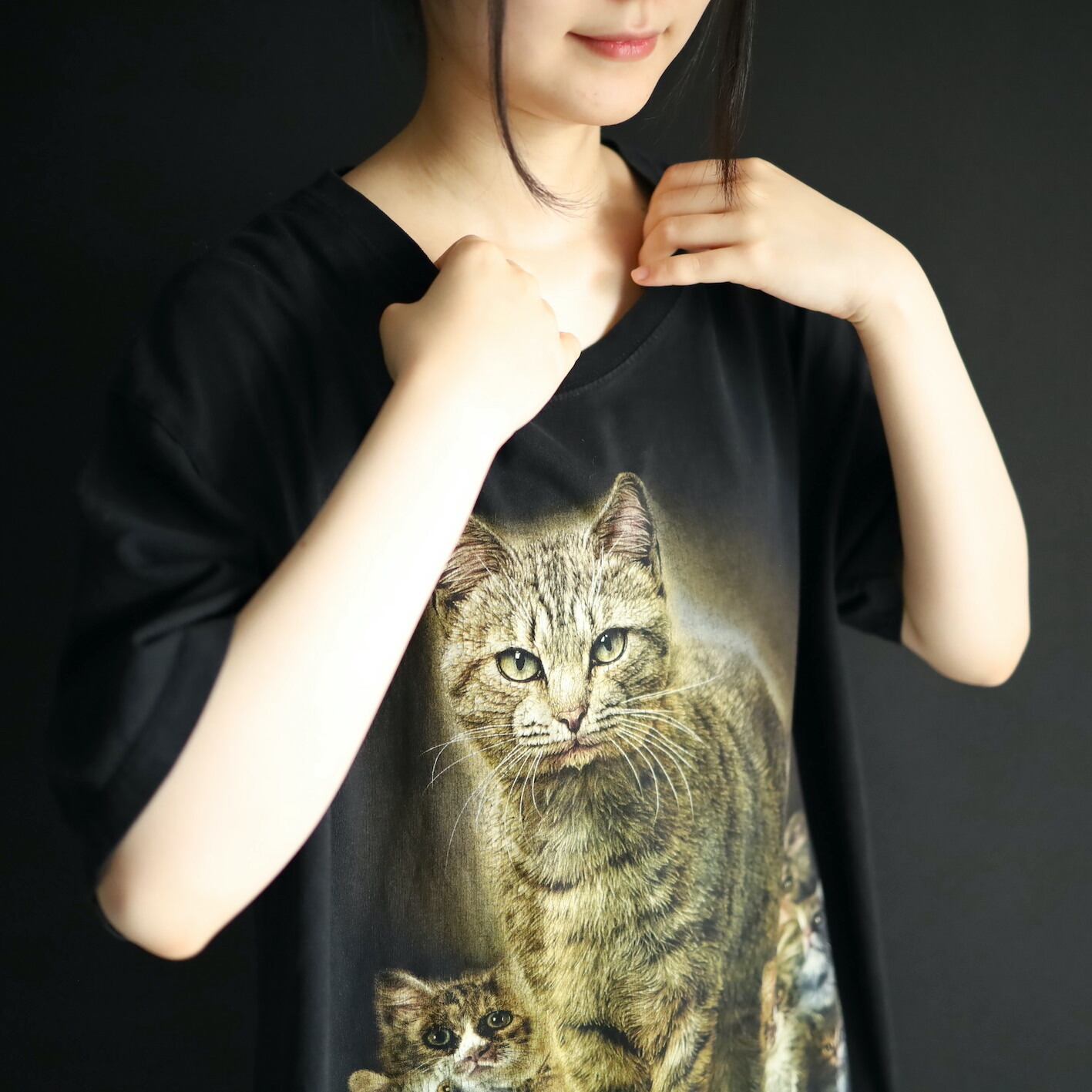 フロント,バックともにいっぱいのネコプリント.