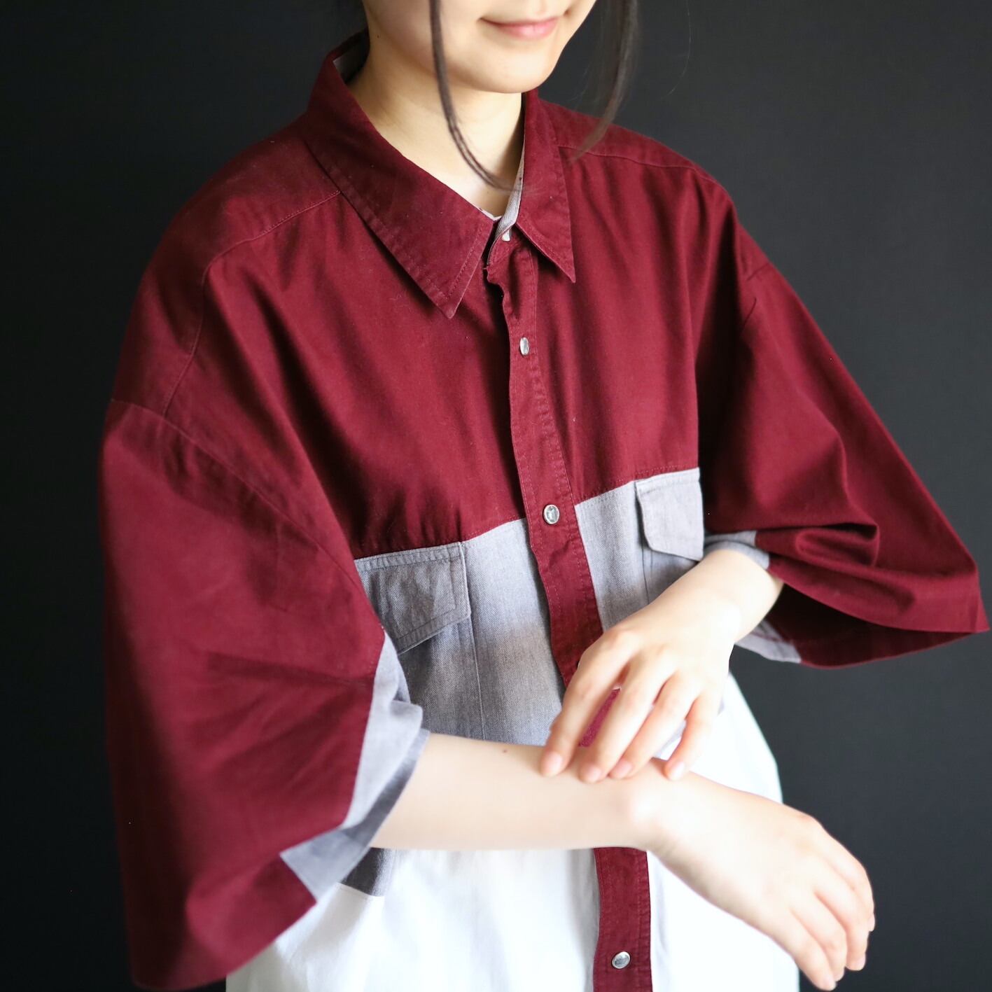 ワインレッドの色気が効いた大人カジュアルな仕上がり.