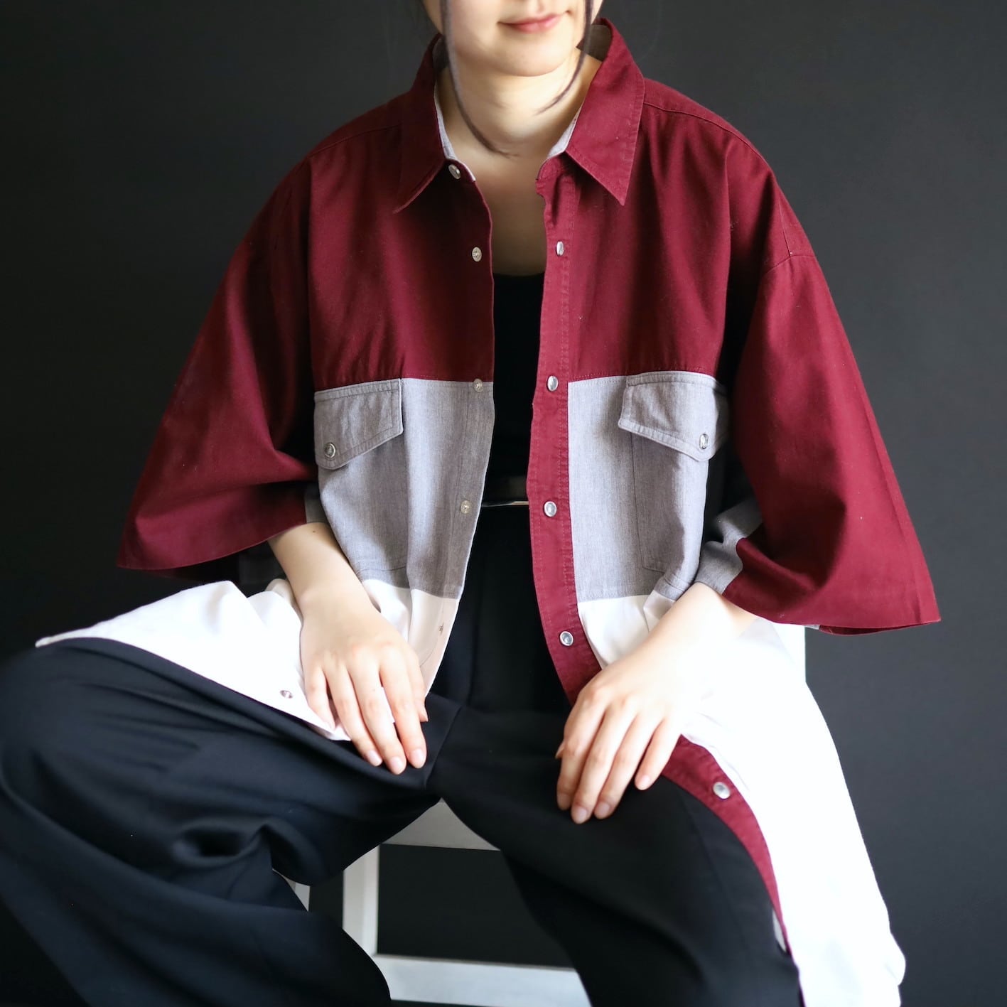 上からワインレッド,グレー,ホワイトの3層仕様.