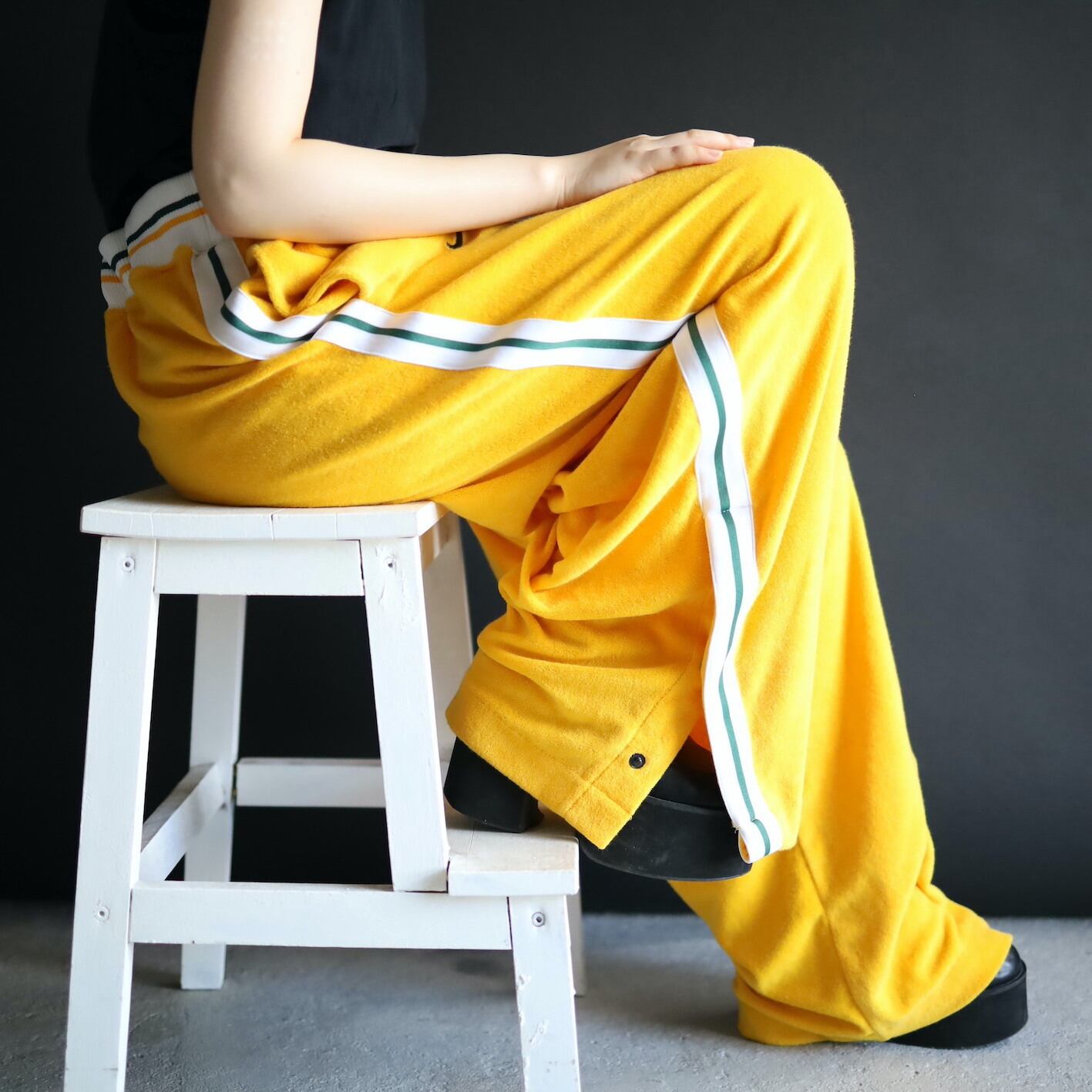 鮮やかな発色のイエローボディをベースに,ホワイトとグリーンのサイドライン切替.