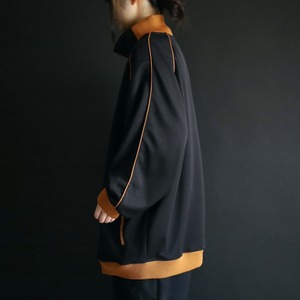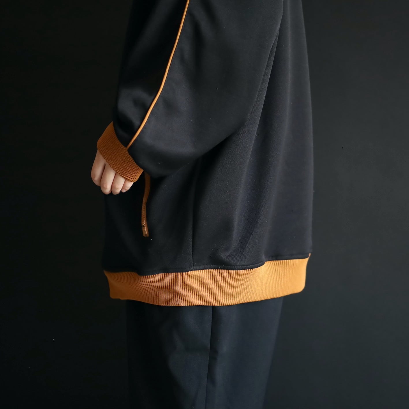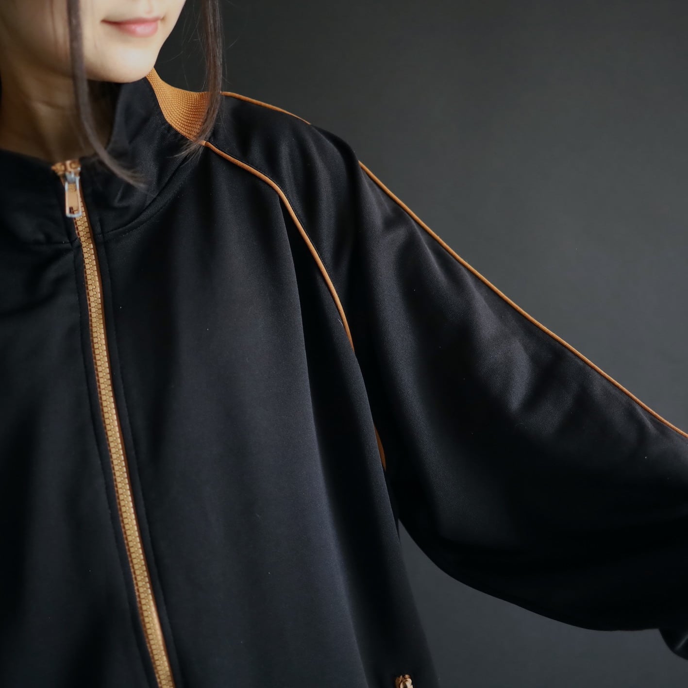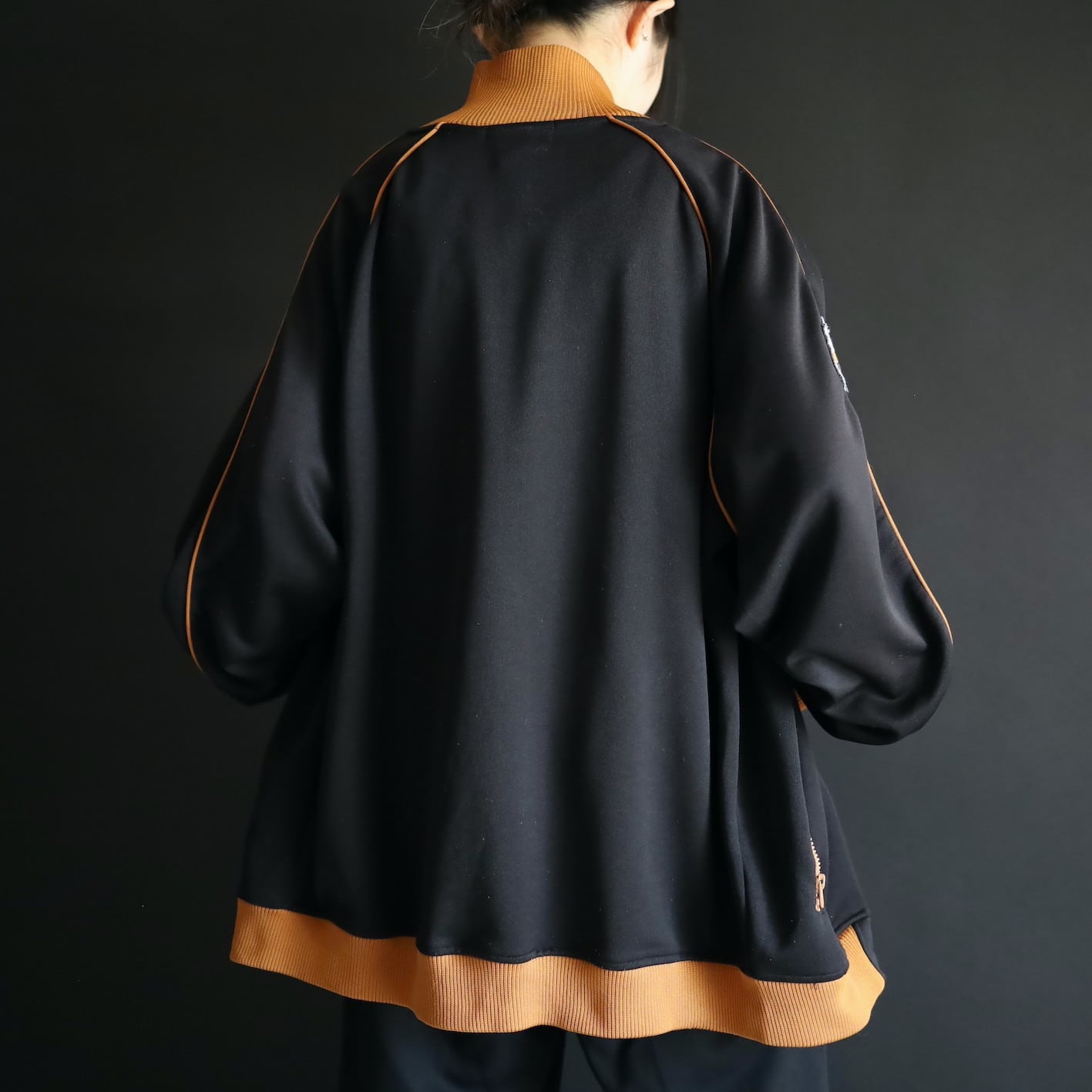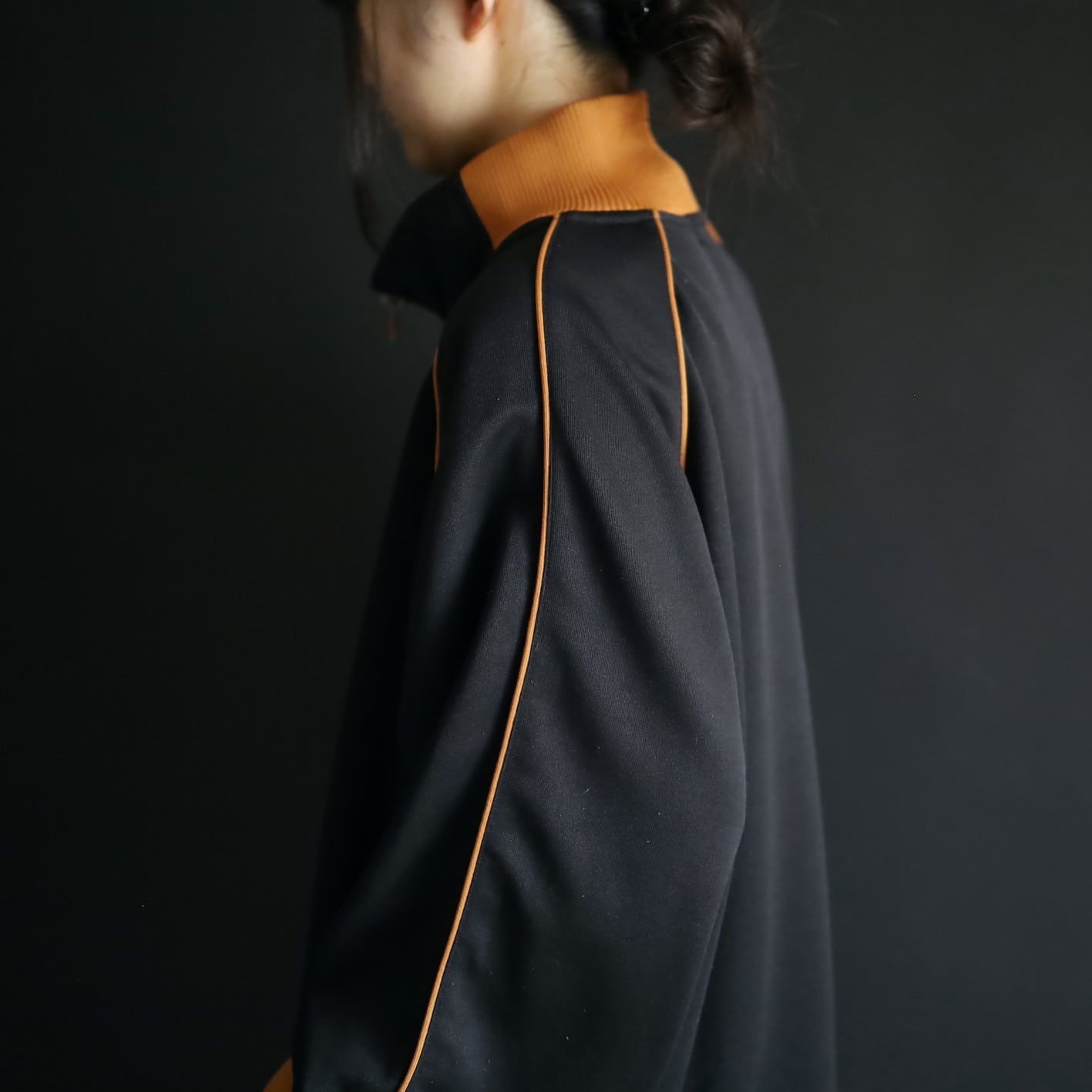 右袖にワンポイントアクセントとなるワッペンが一枚,ネックはトラック系でも人気のハイネック仕様.