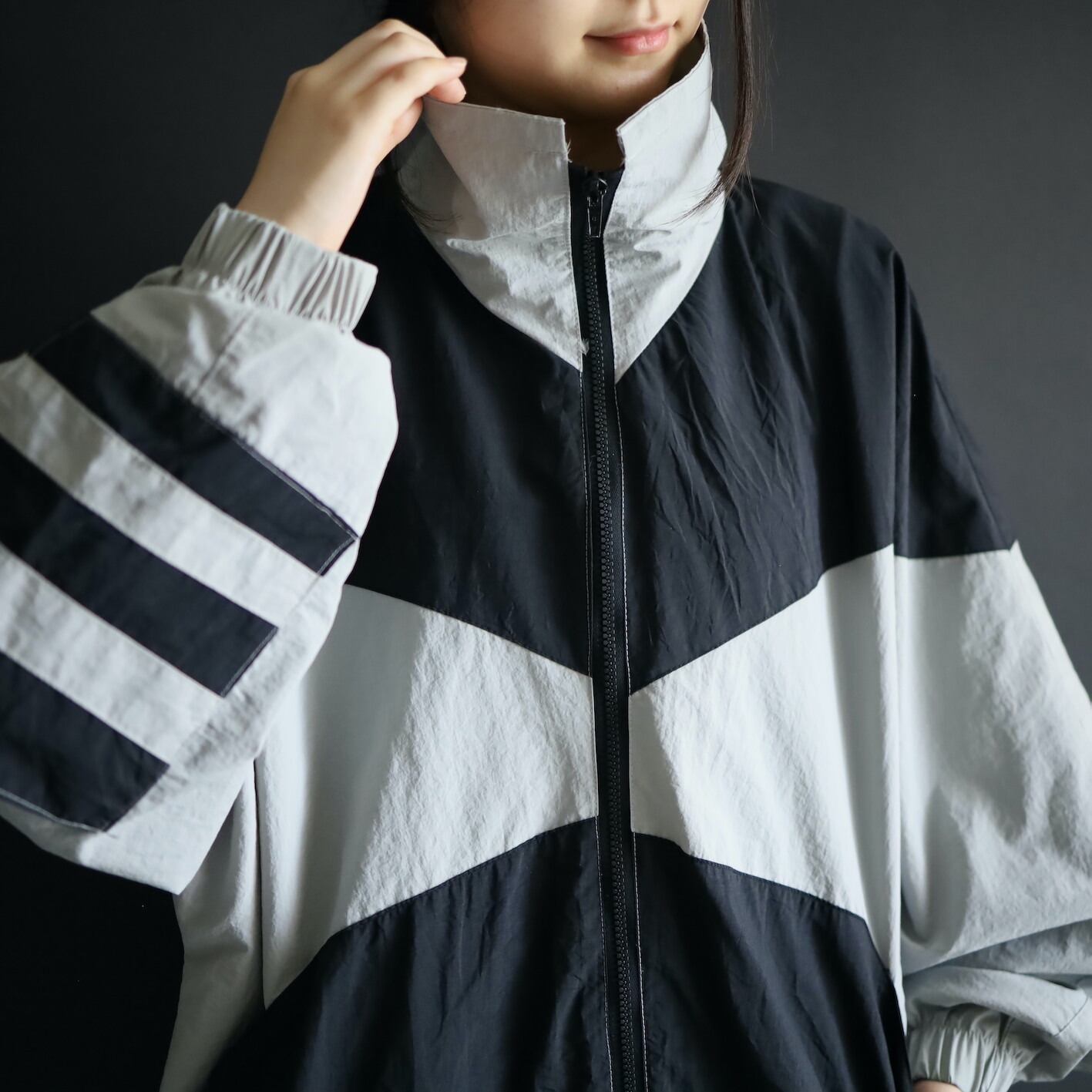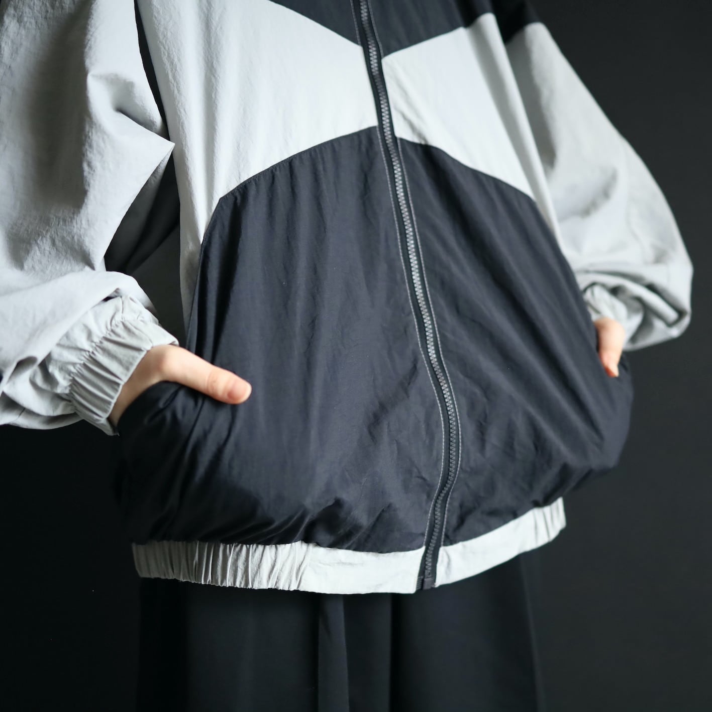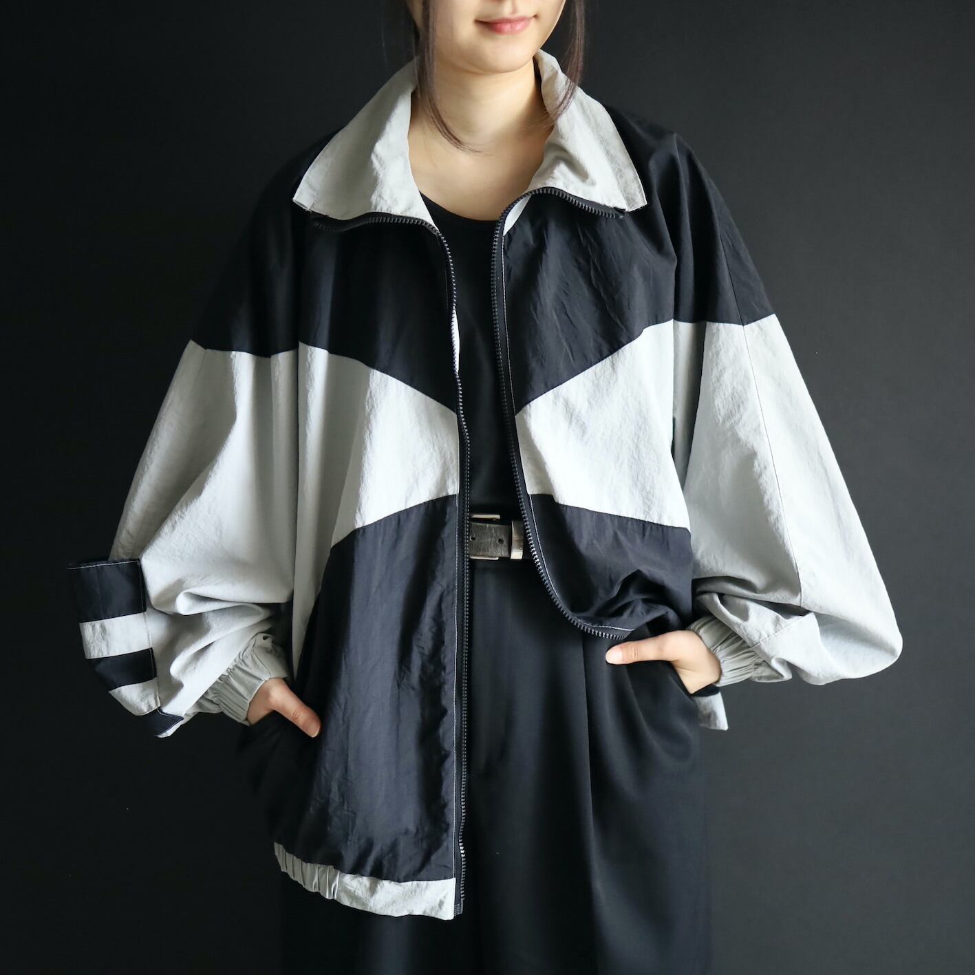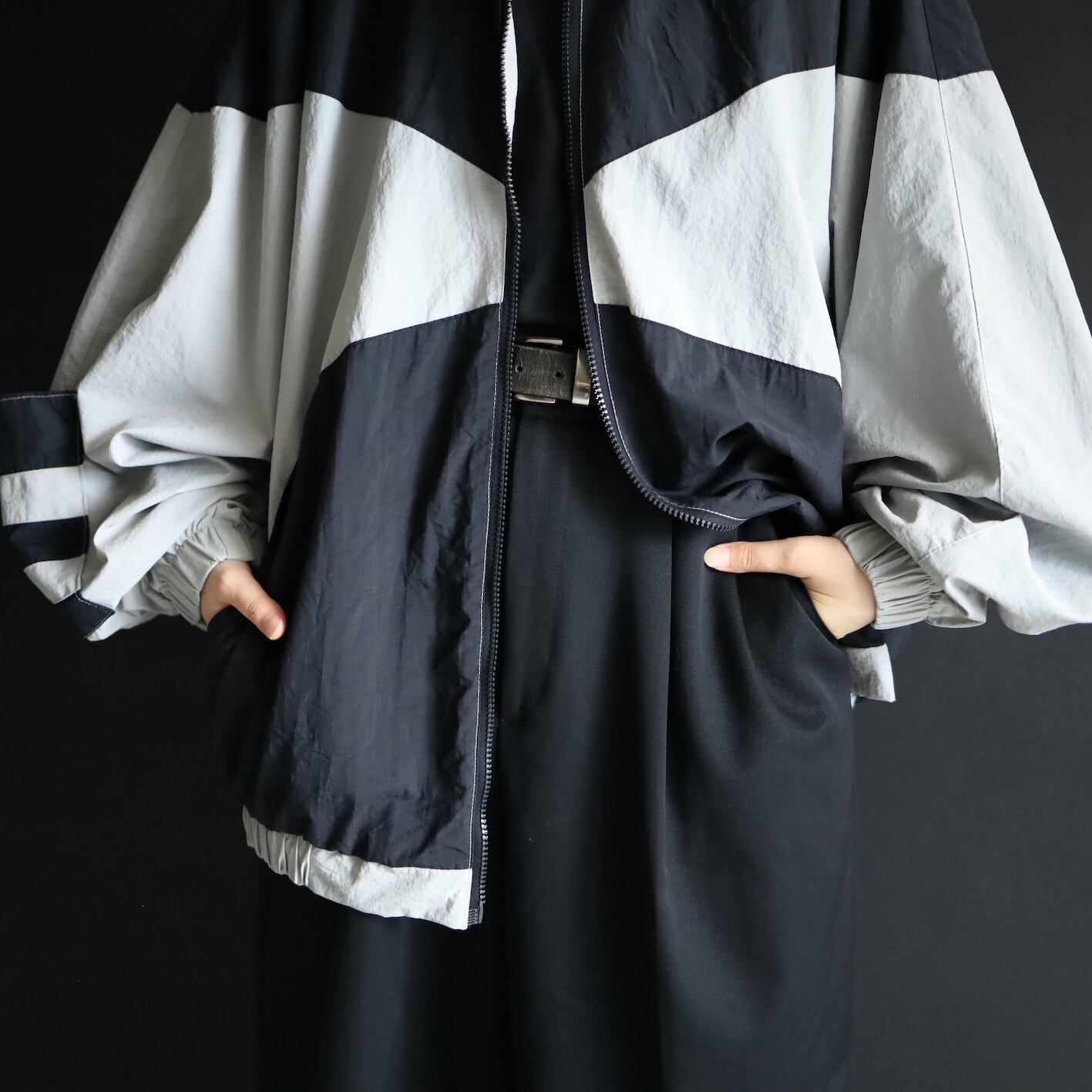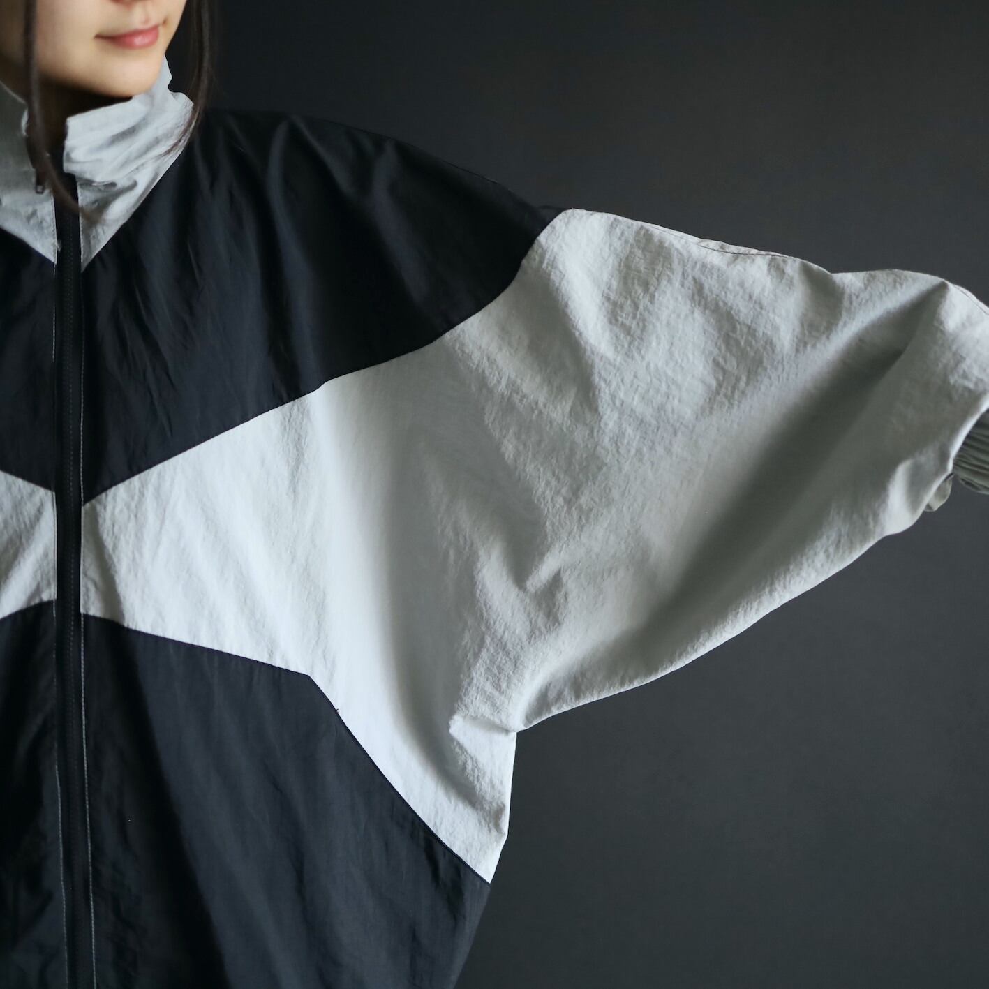 変化球的なシルエット,デザインのナイロンブルゾン.