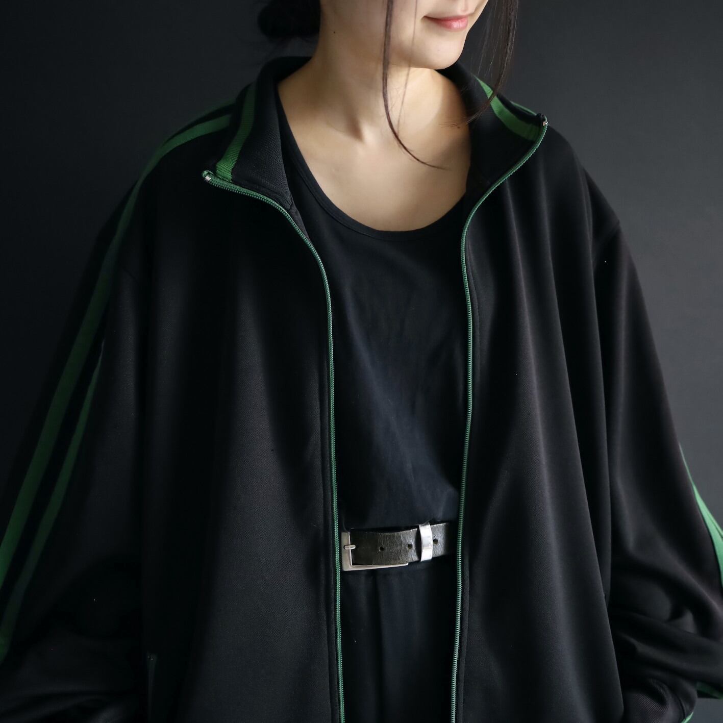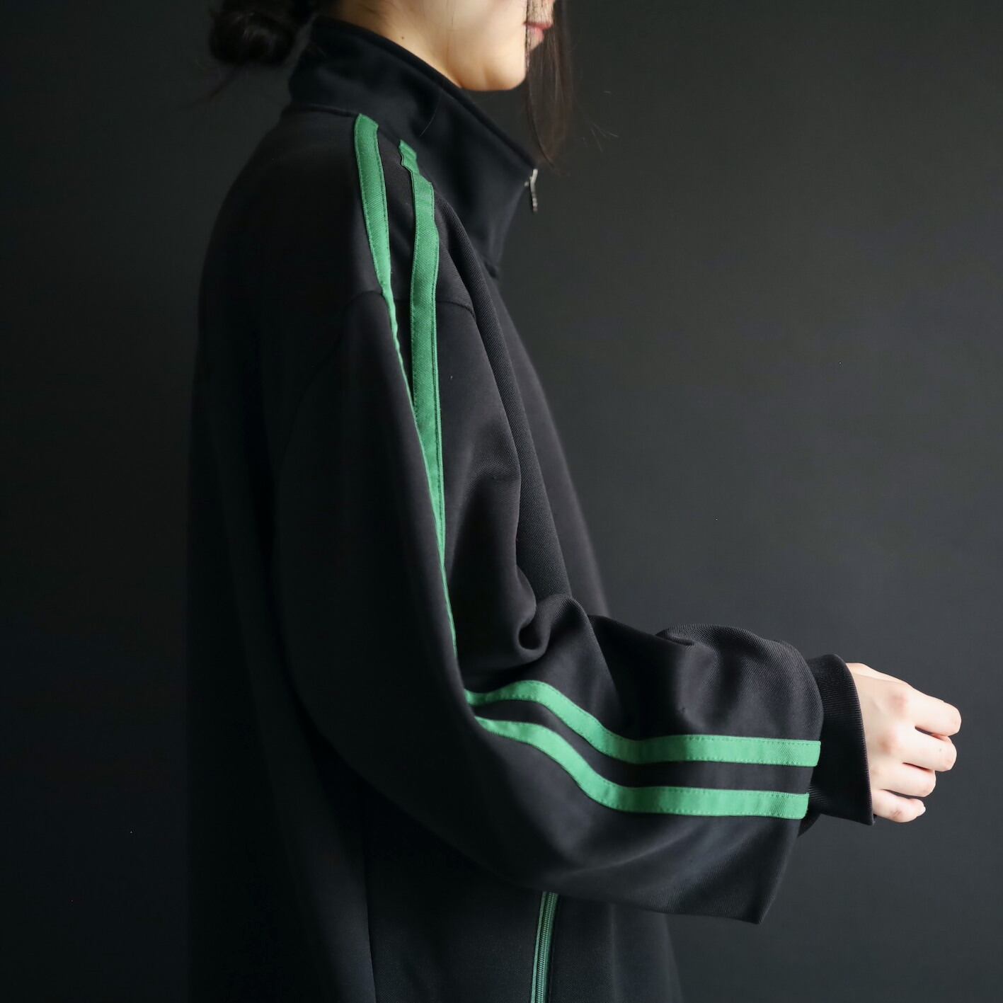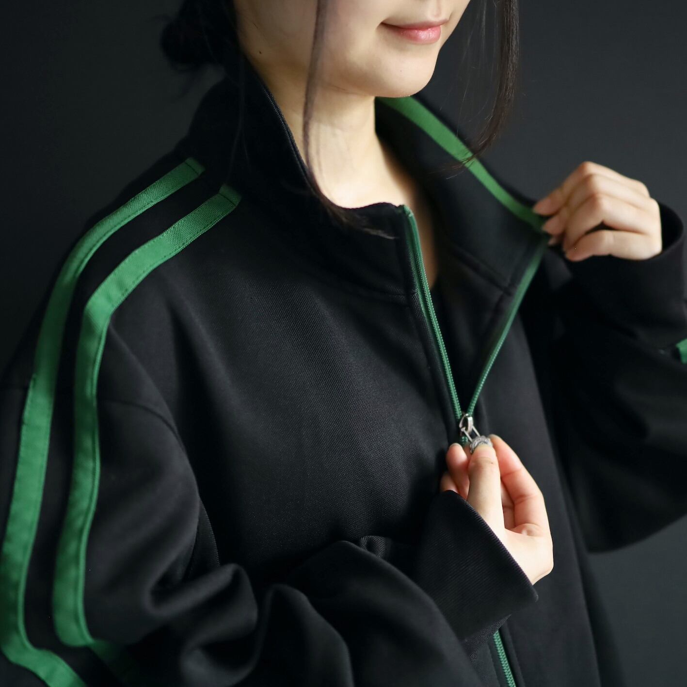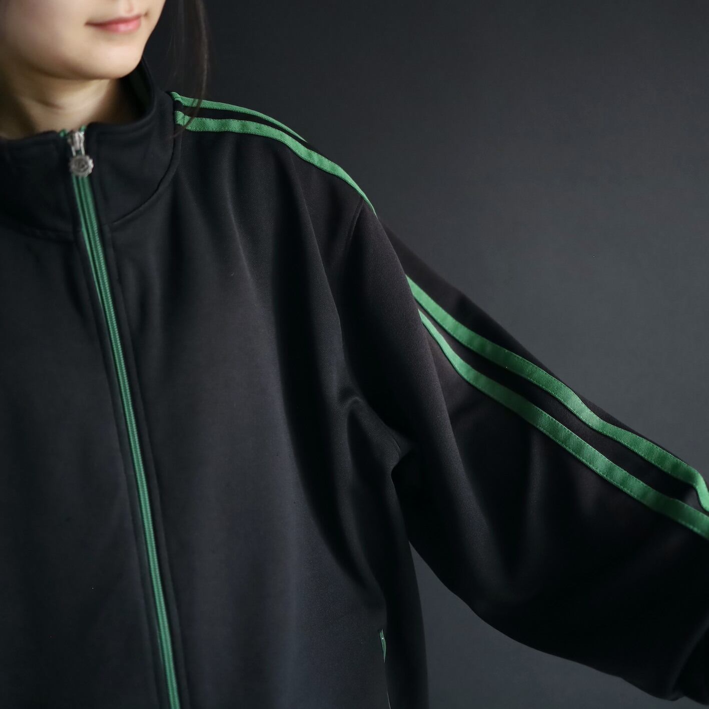 安定感あるブラックボディをベースに,肩から袖先にかけて走るグリーンのライン.
