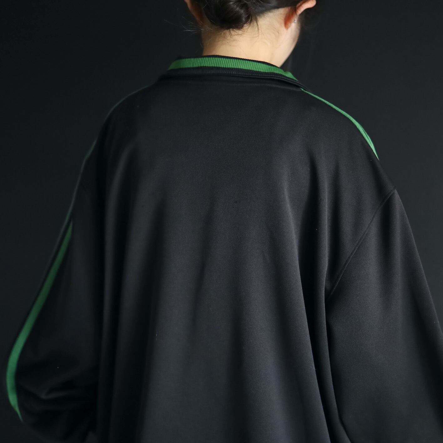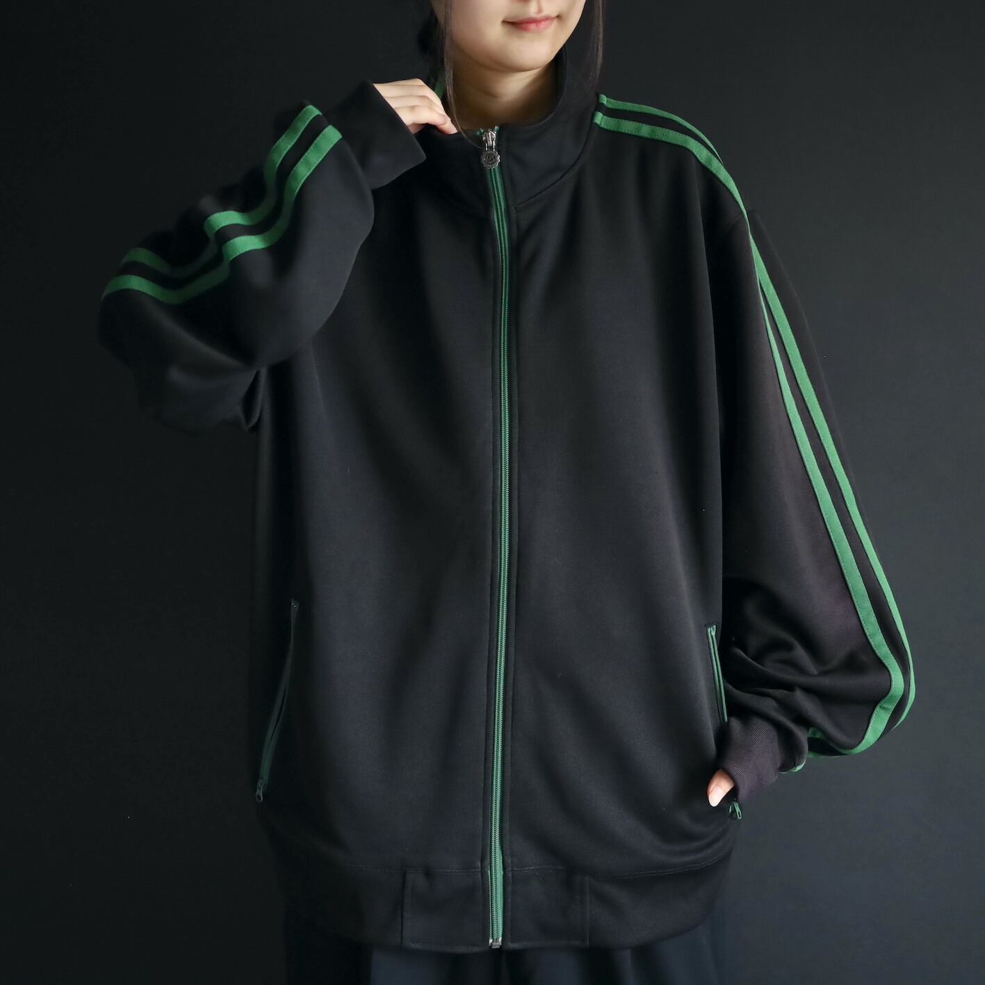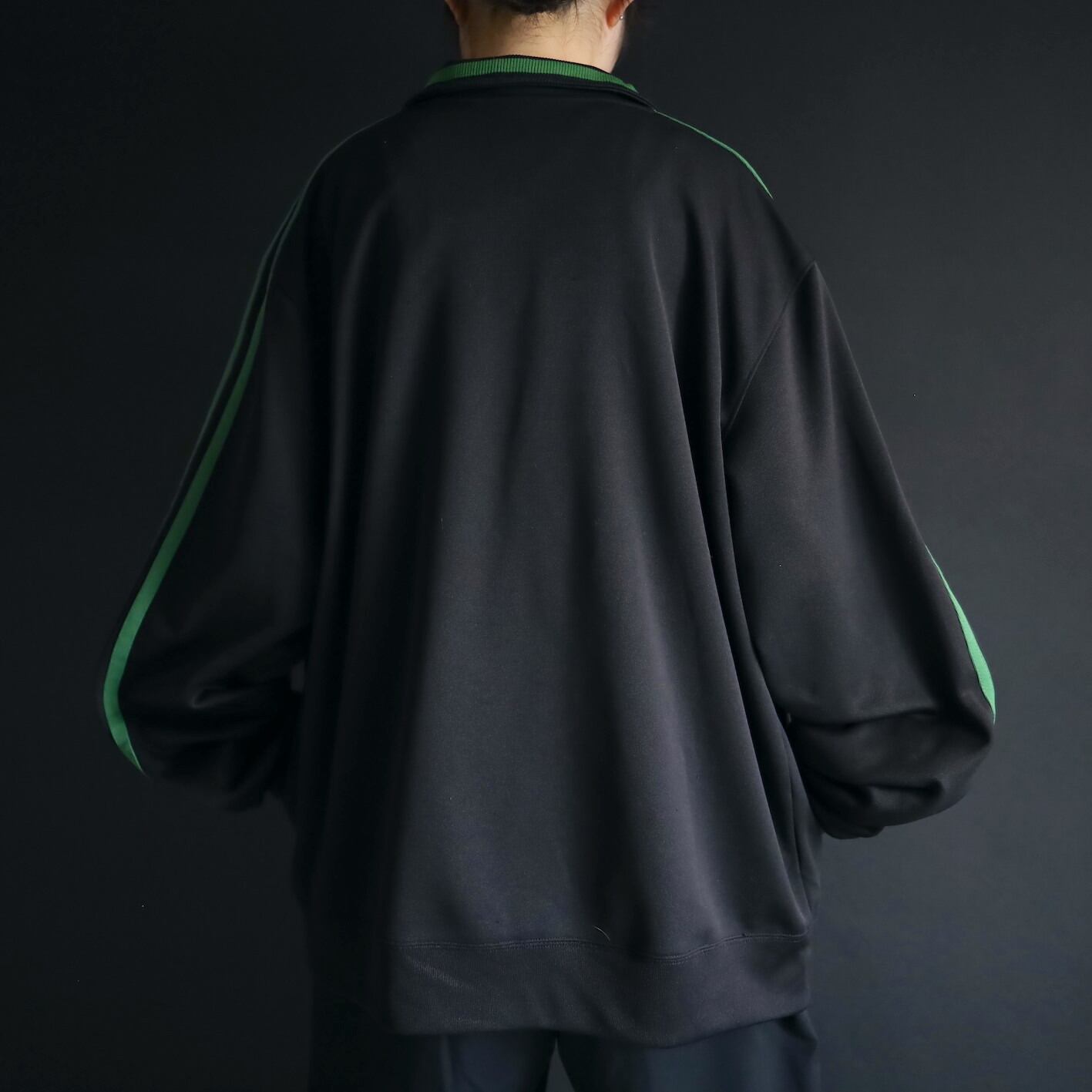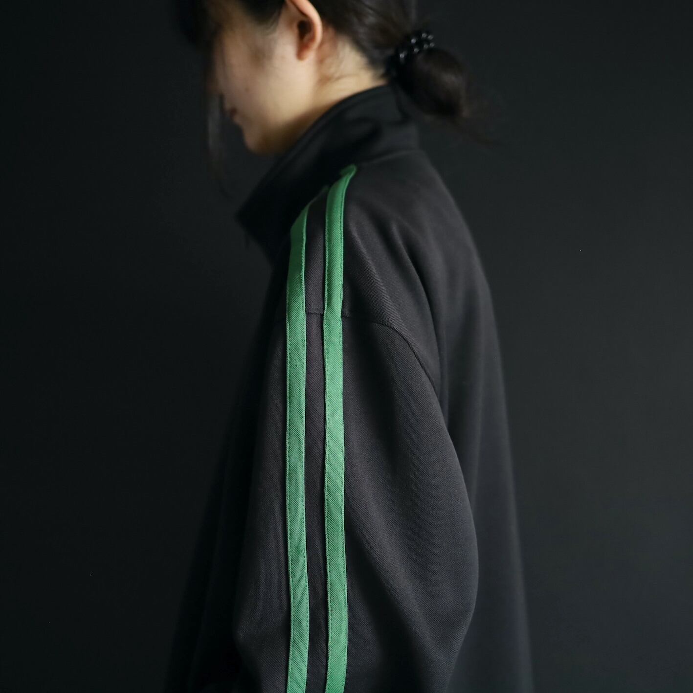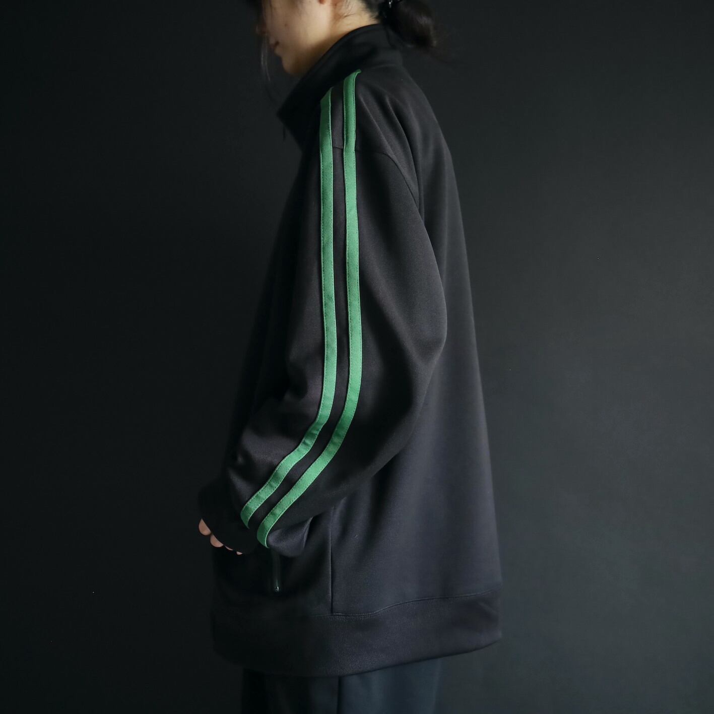 安定感あるブラックボディをベースに,肩から袖先にかけて走るグリーンのライン.