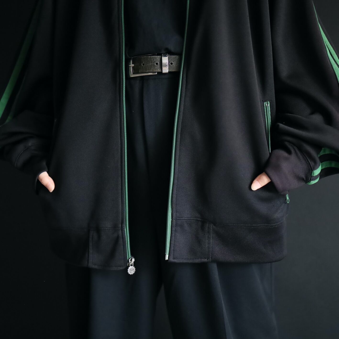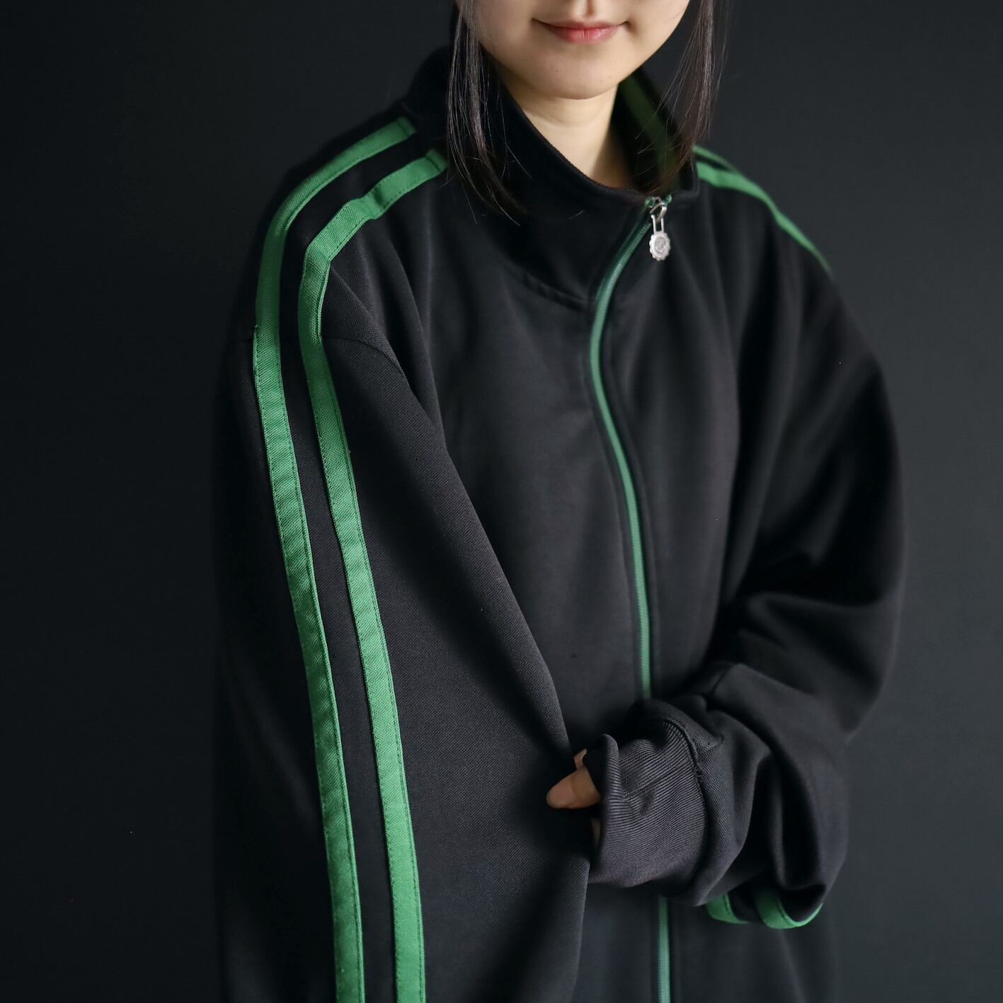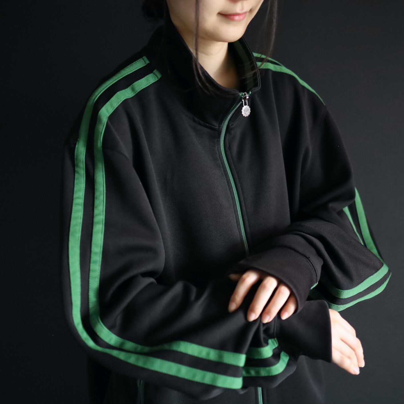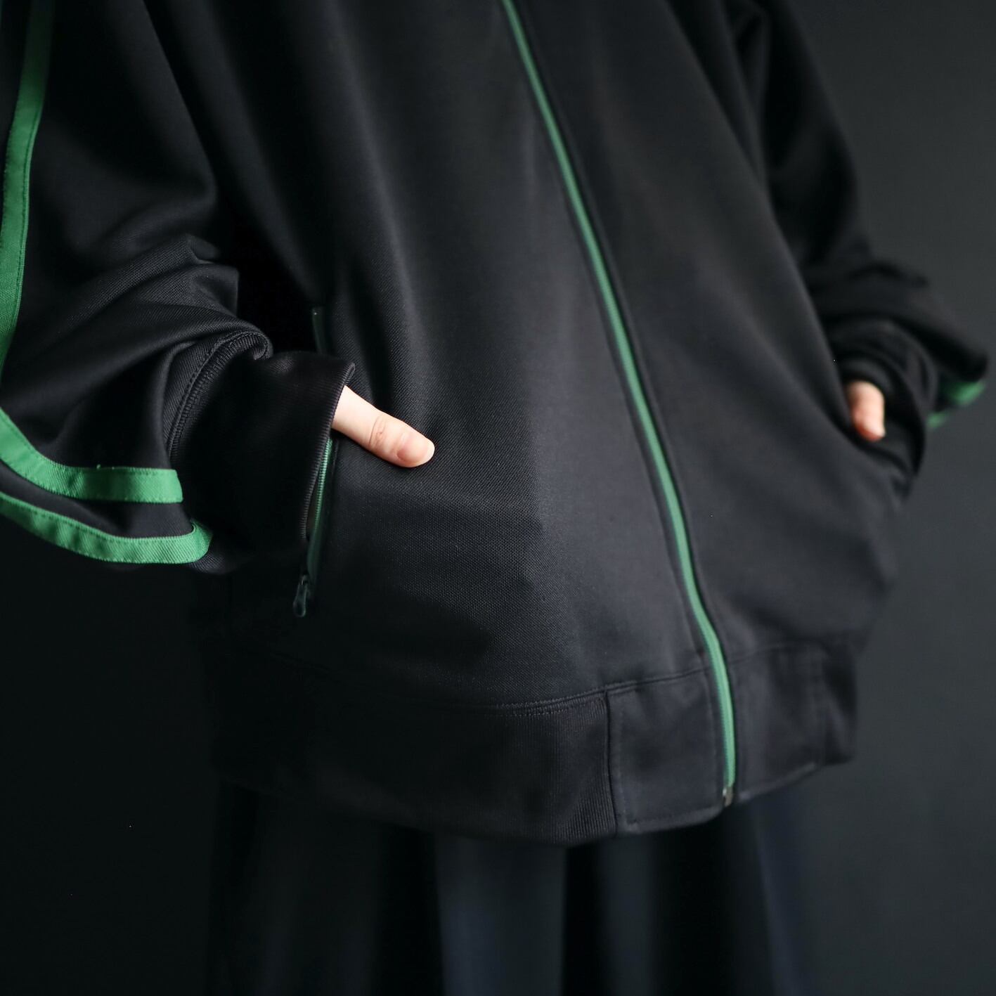 安定感あるブラックボディをベースに,肩から袖先にかけて走るグリーンのライン.