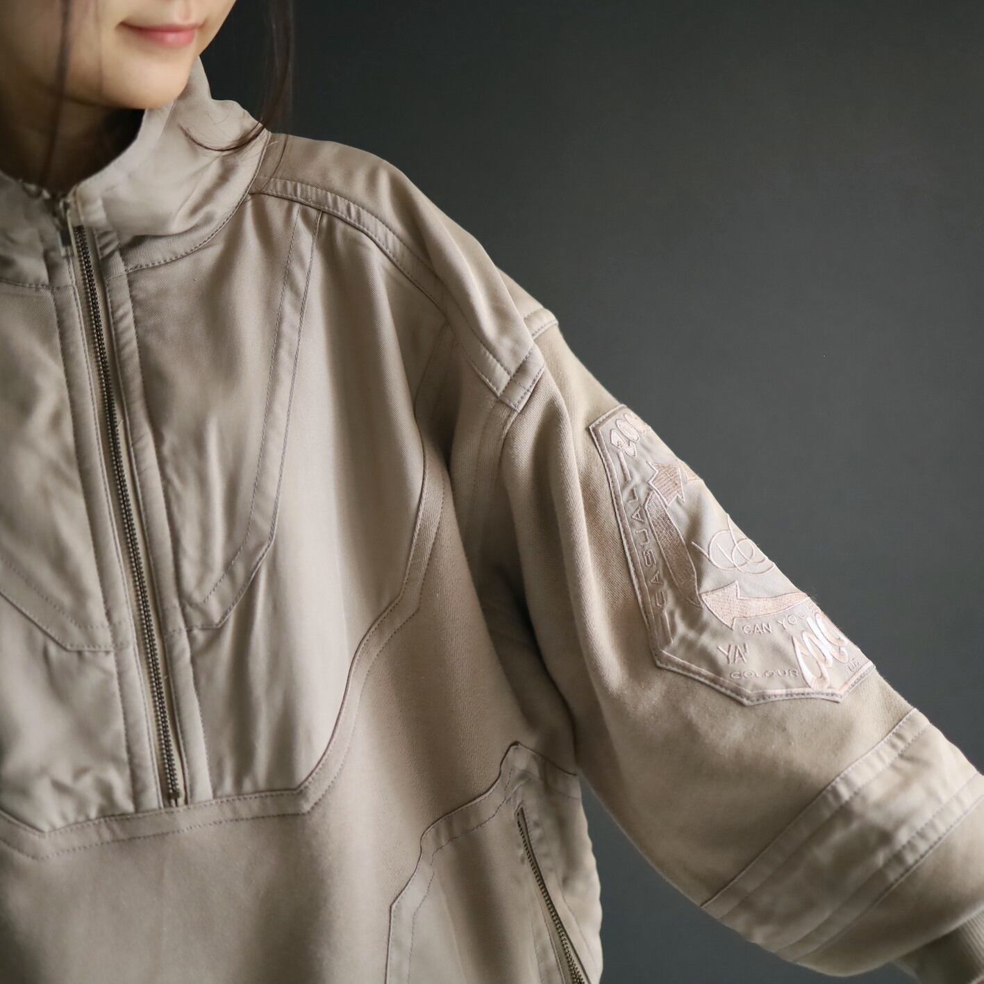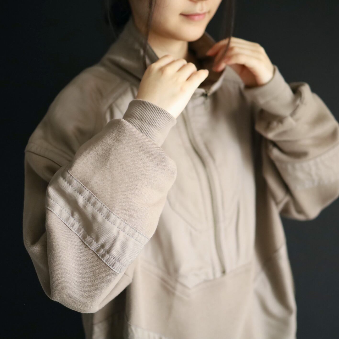 ハーフジップを上まで閉めて着てもよし,開けてインナー見せるなどアレンジしてもよしです.