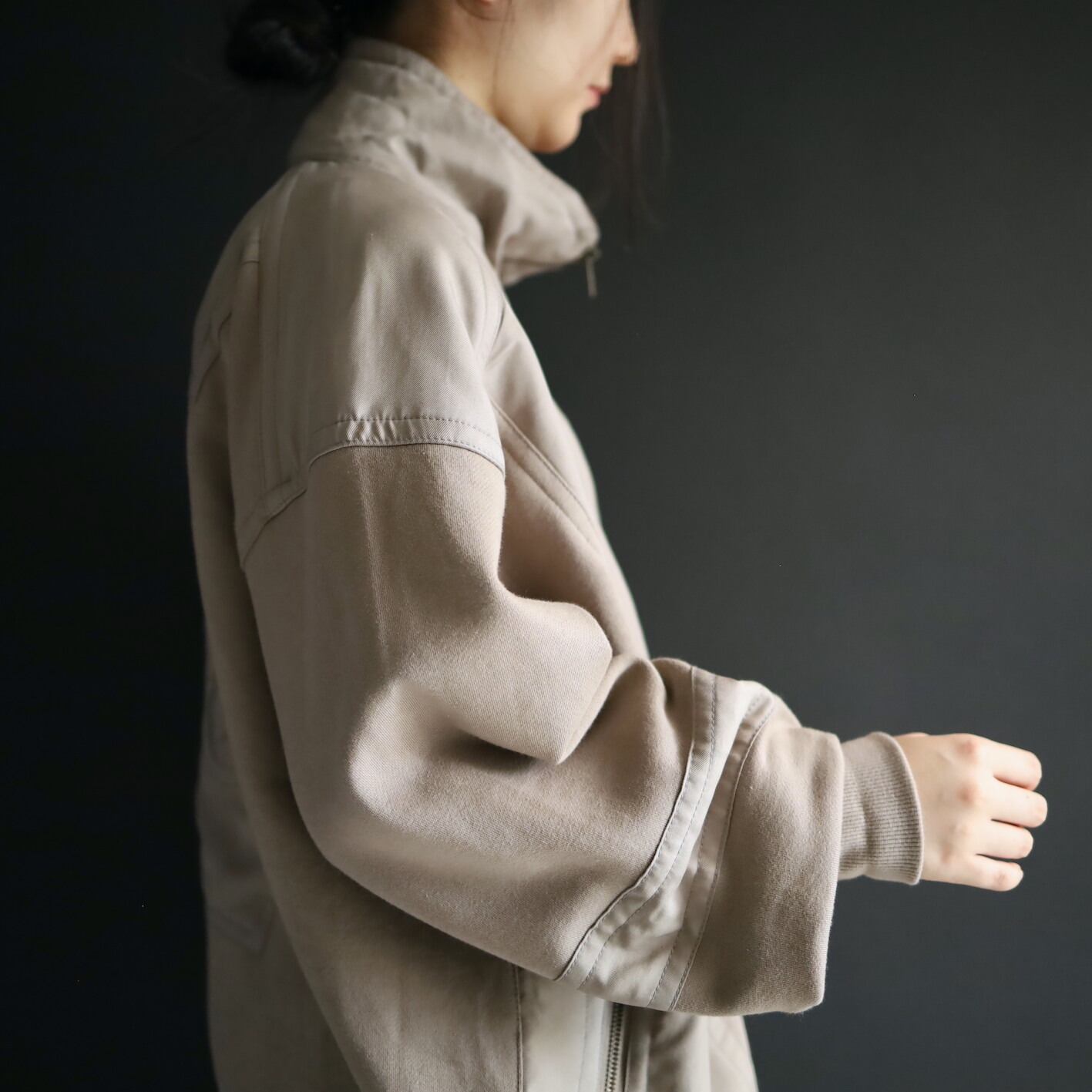 XL相当のボリュームあるサイズ感に加え,裾や袖のリブで生地の溜まる表情も◎