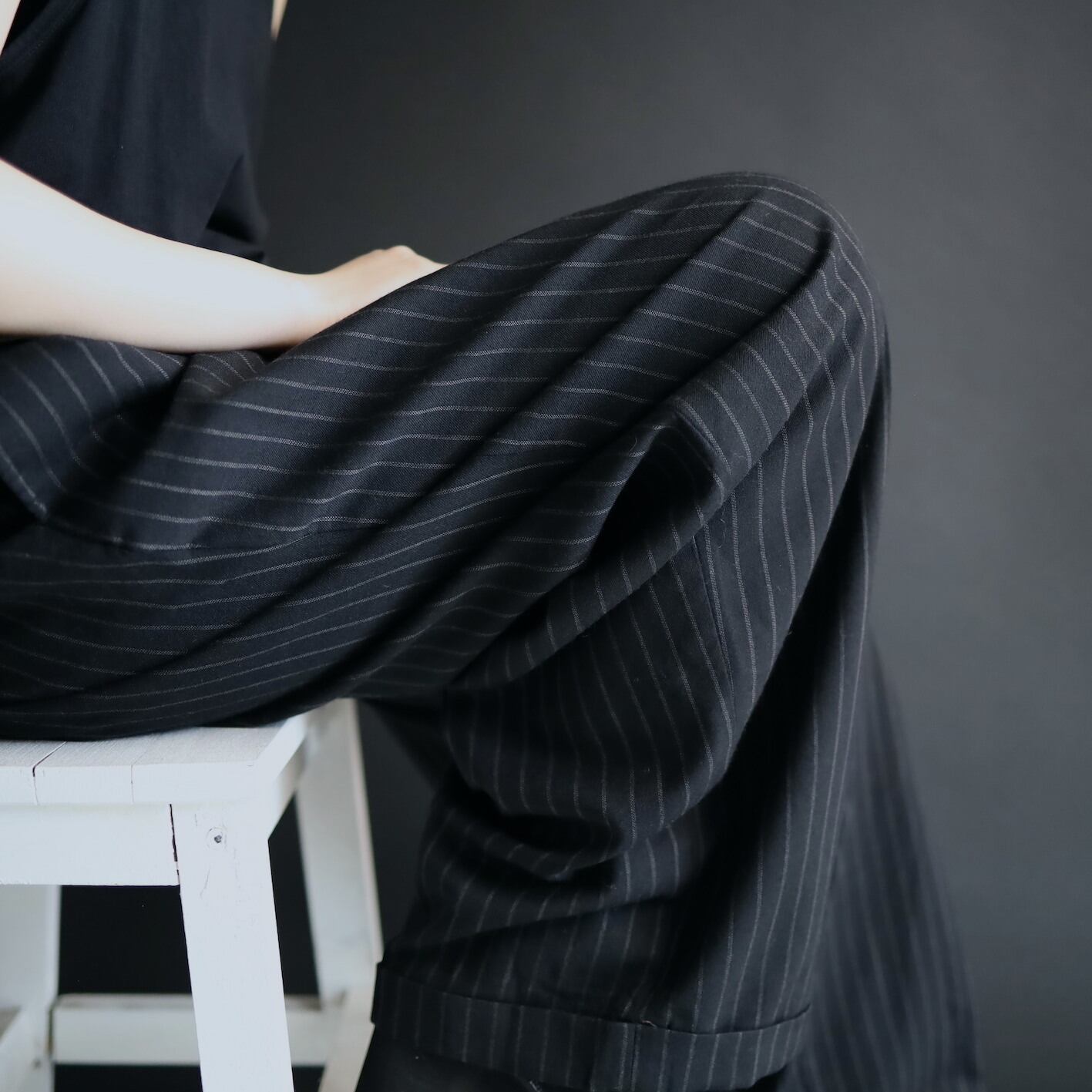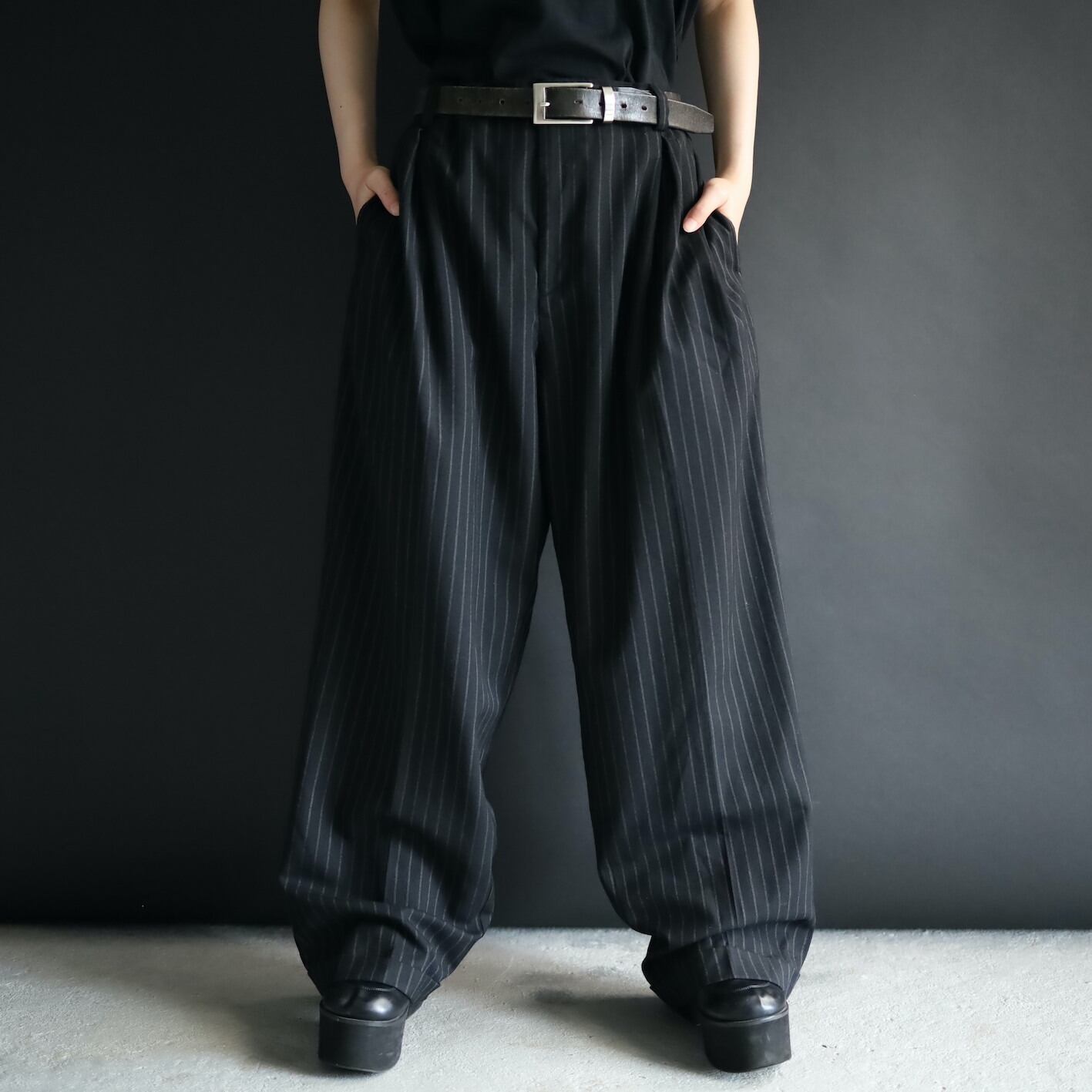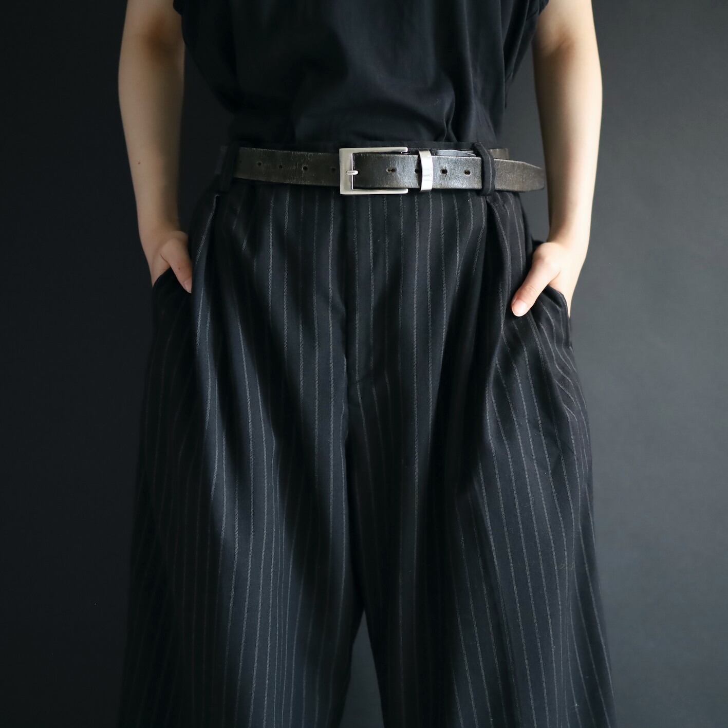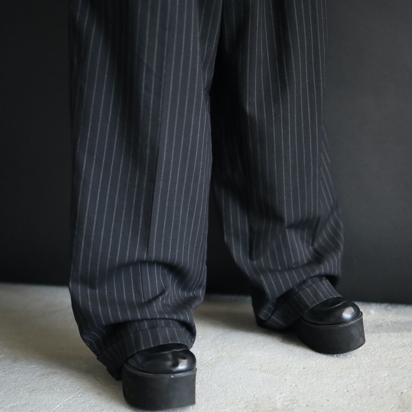深い股上に加えて,全体通してワイドな仕立てで,ズドンとした大胆なシルエットを構築します.