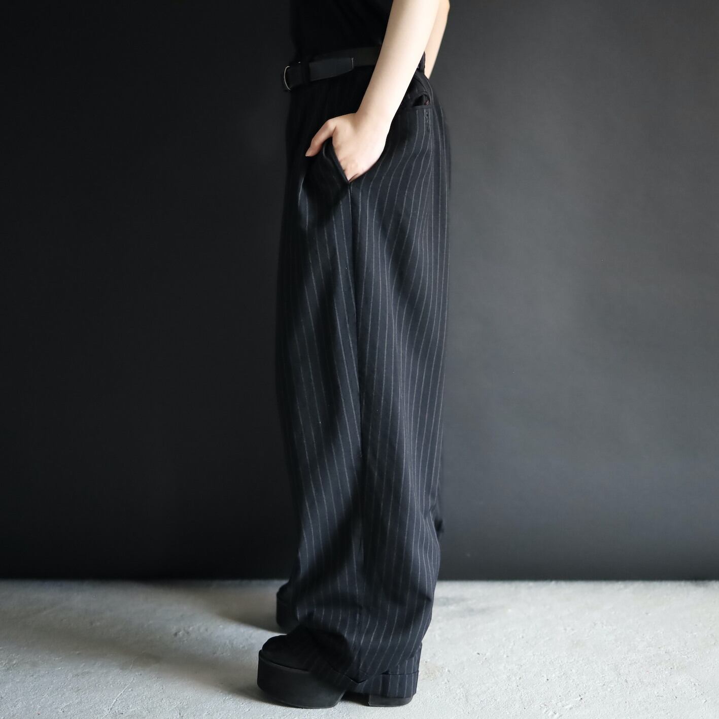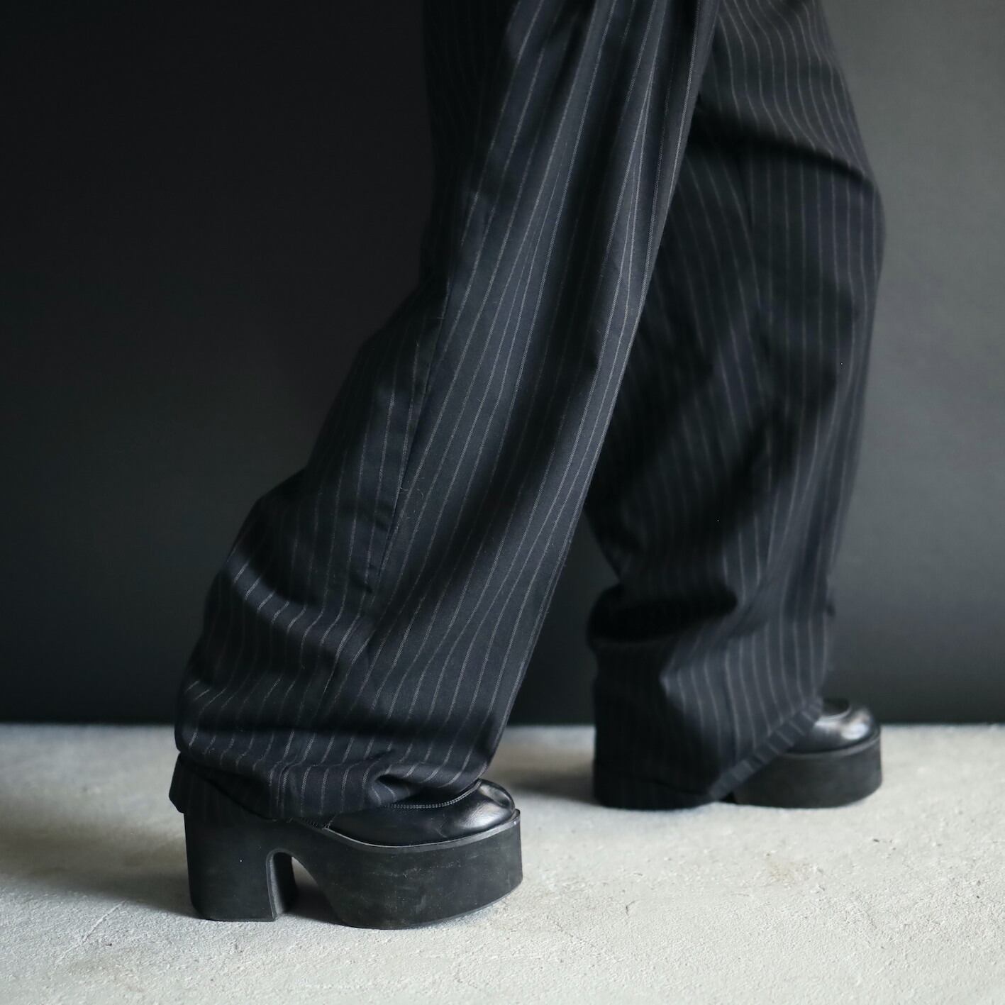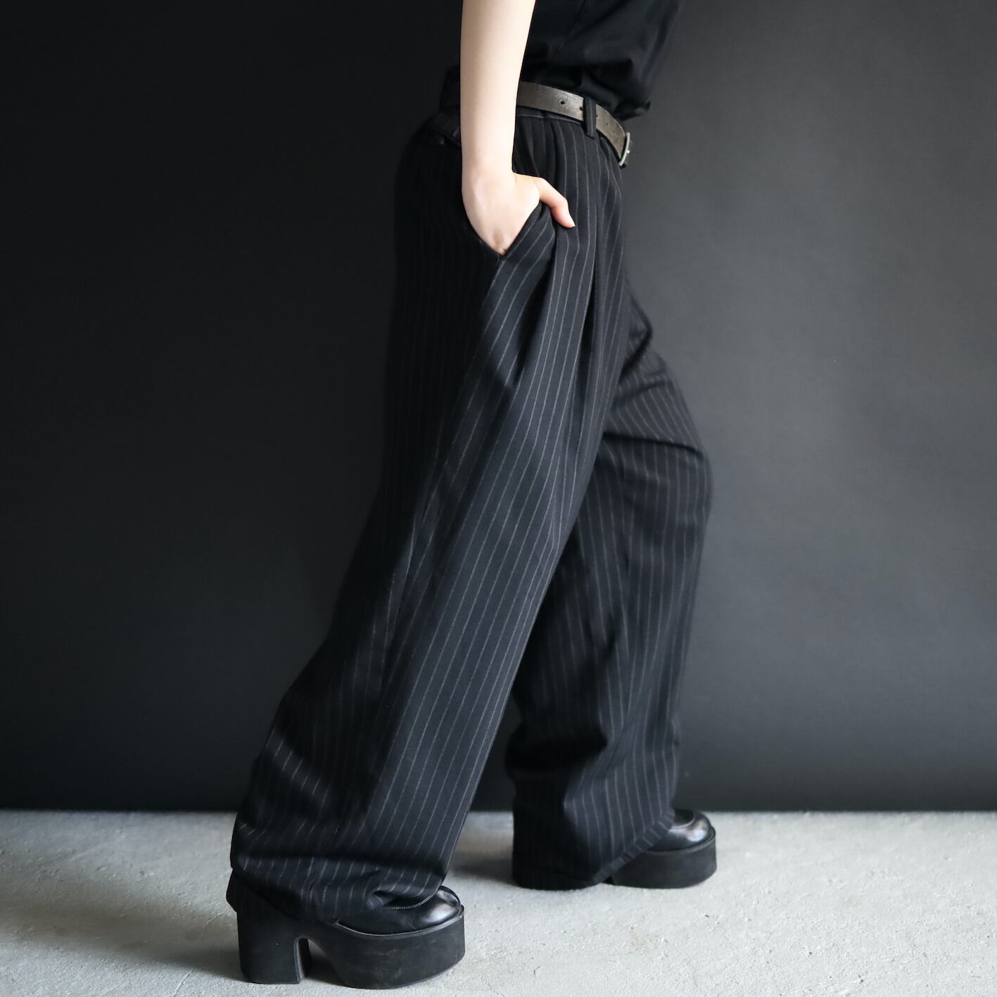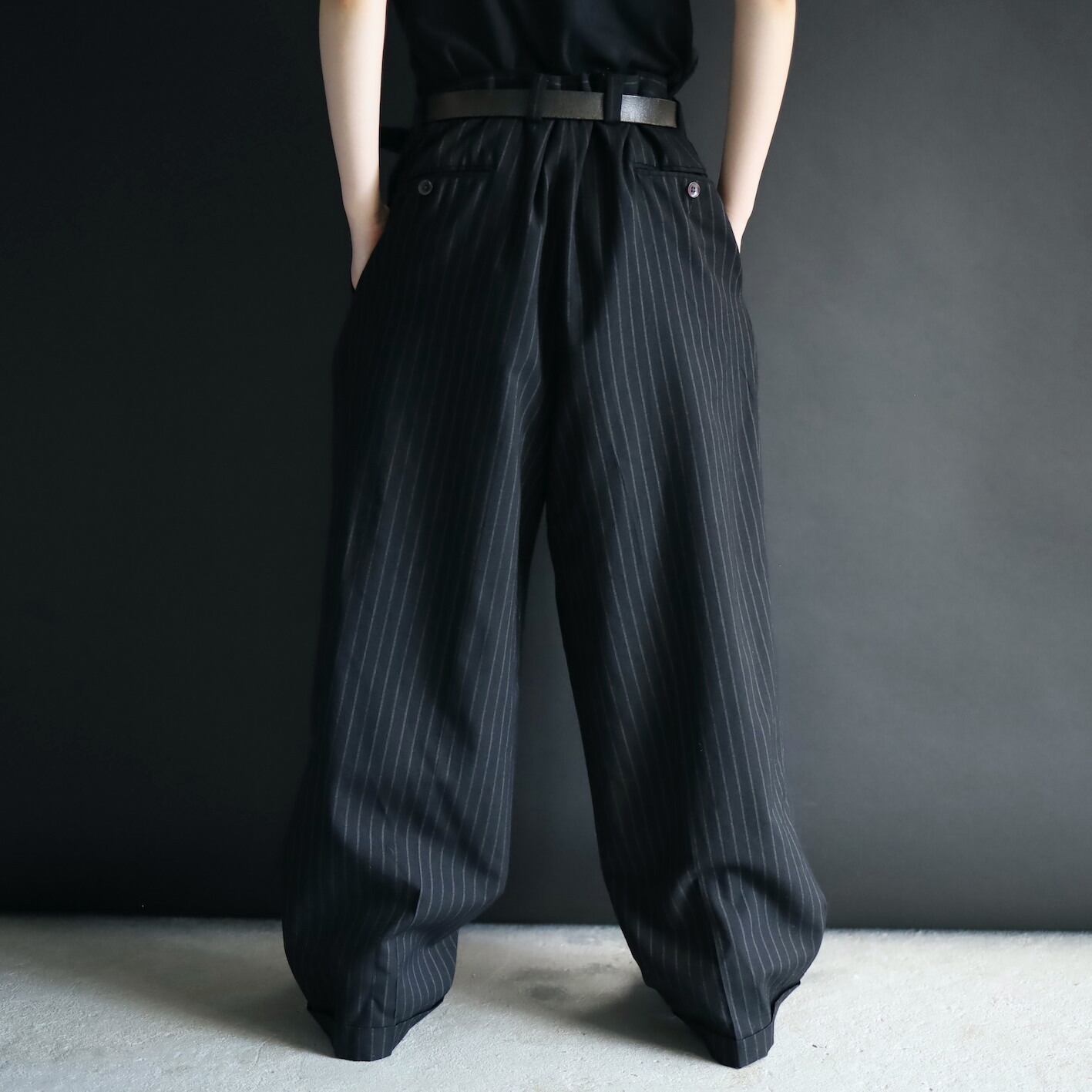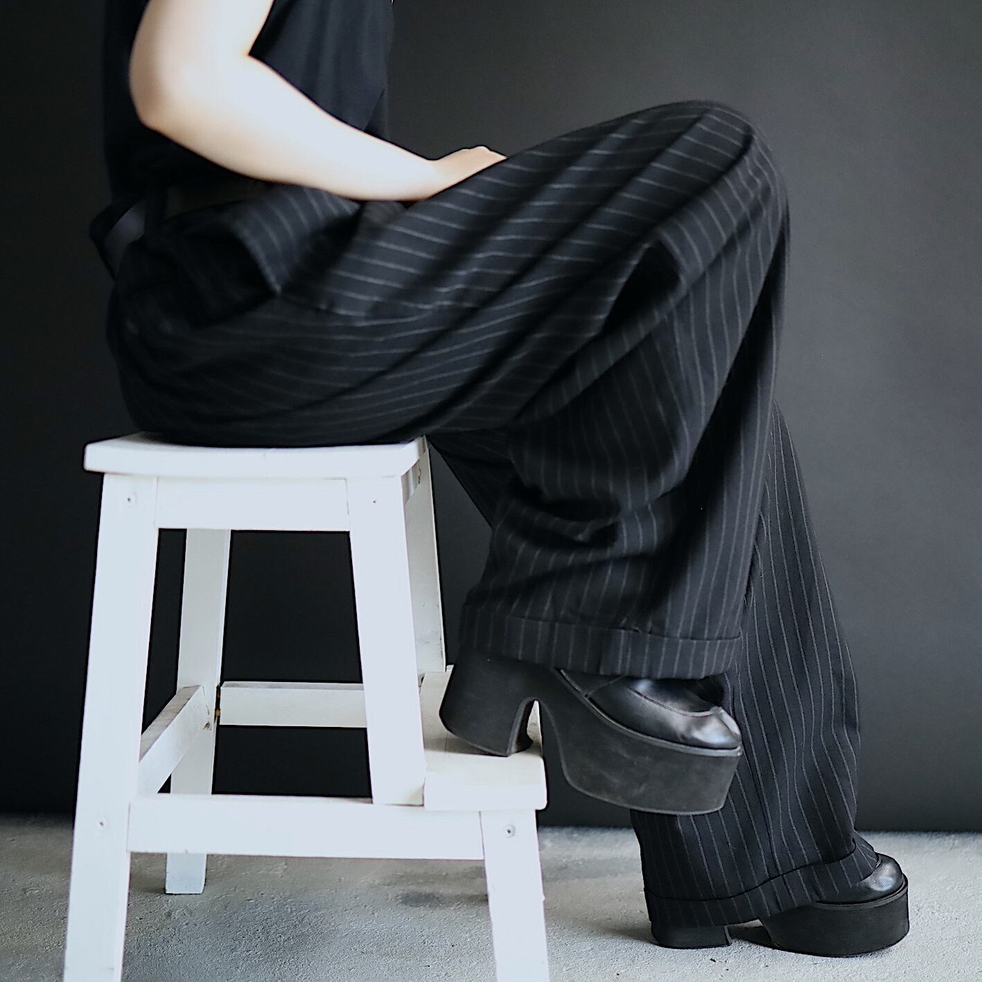 深い股上に加えて,全体通してワイドな仕立てで,ズドンとした大胆なシルエットを構築します.