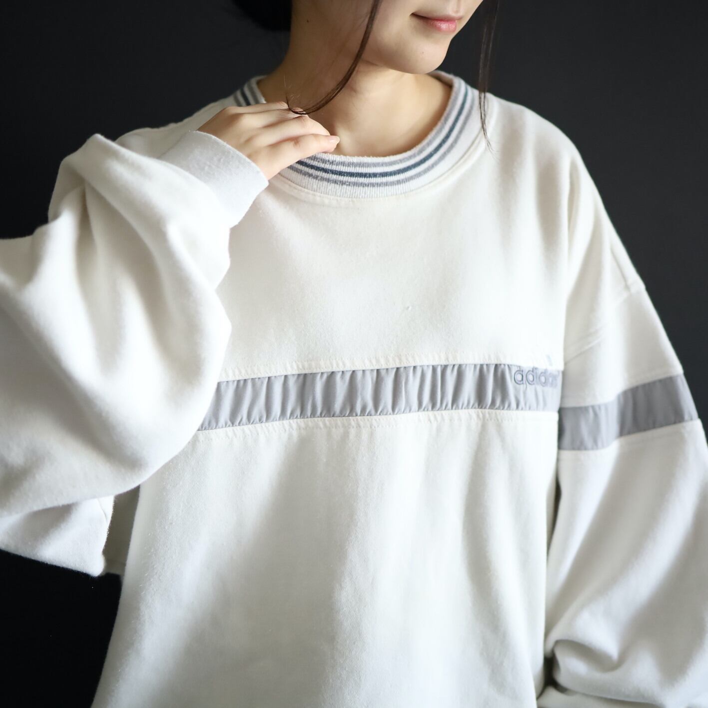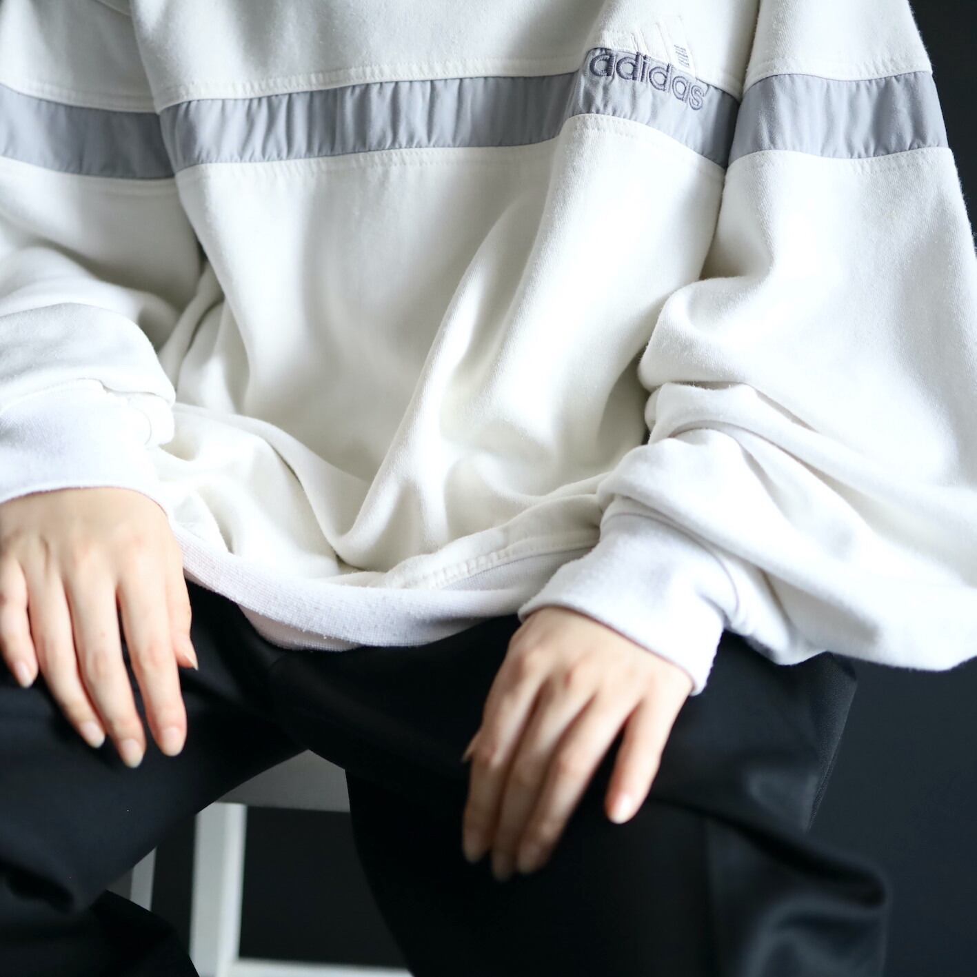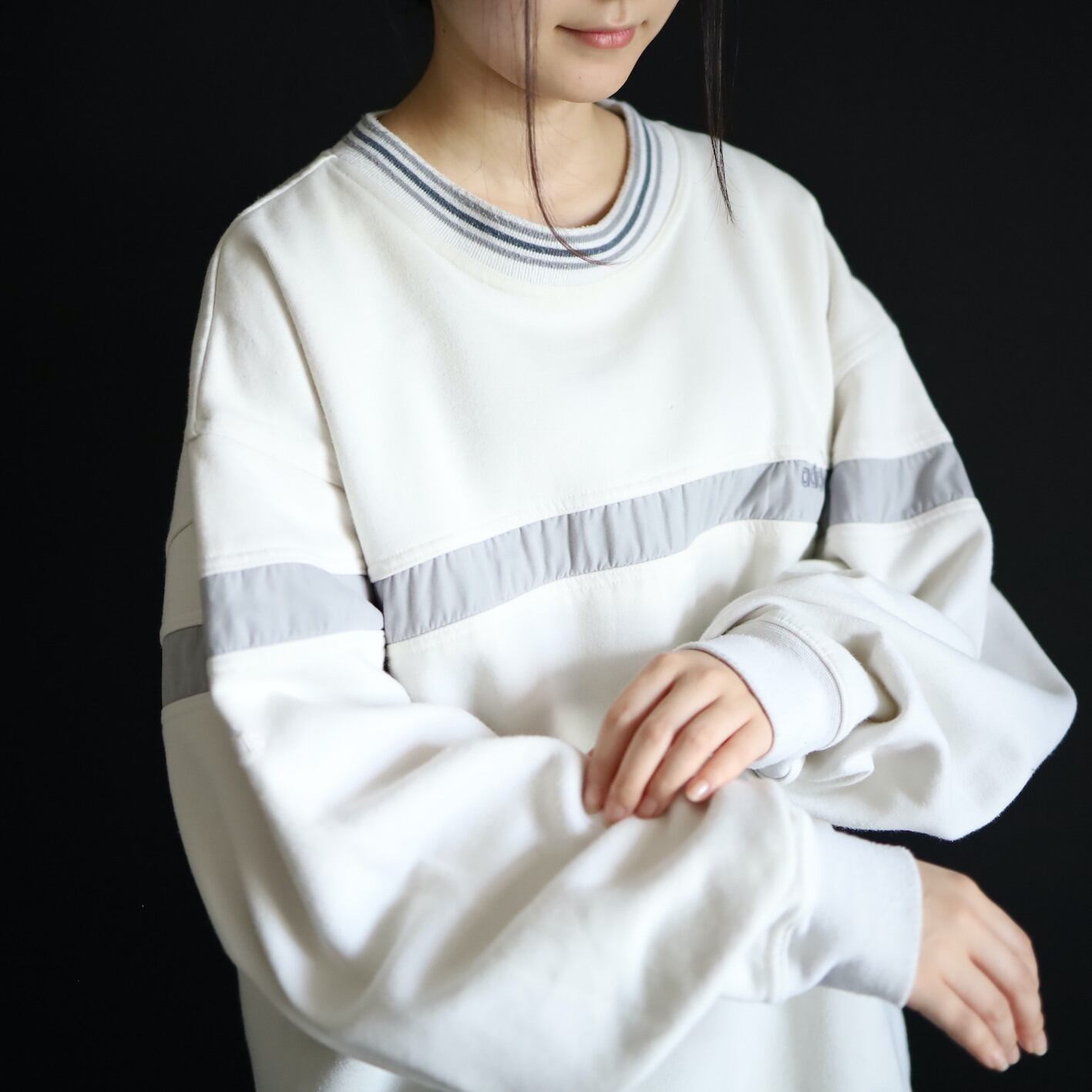 90s'オールドのadidasより,生地,カラー切替のスウェットプルオーバー.