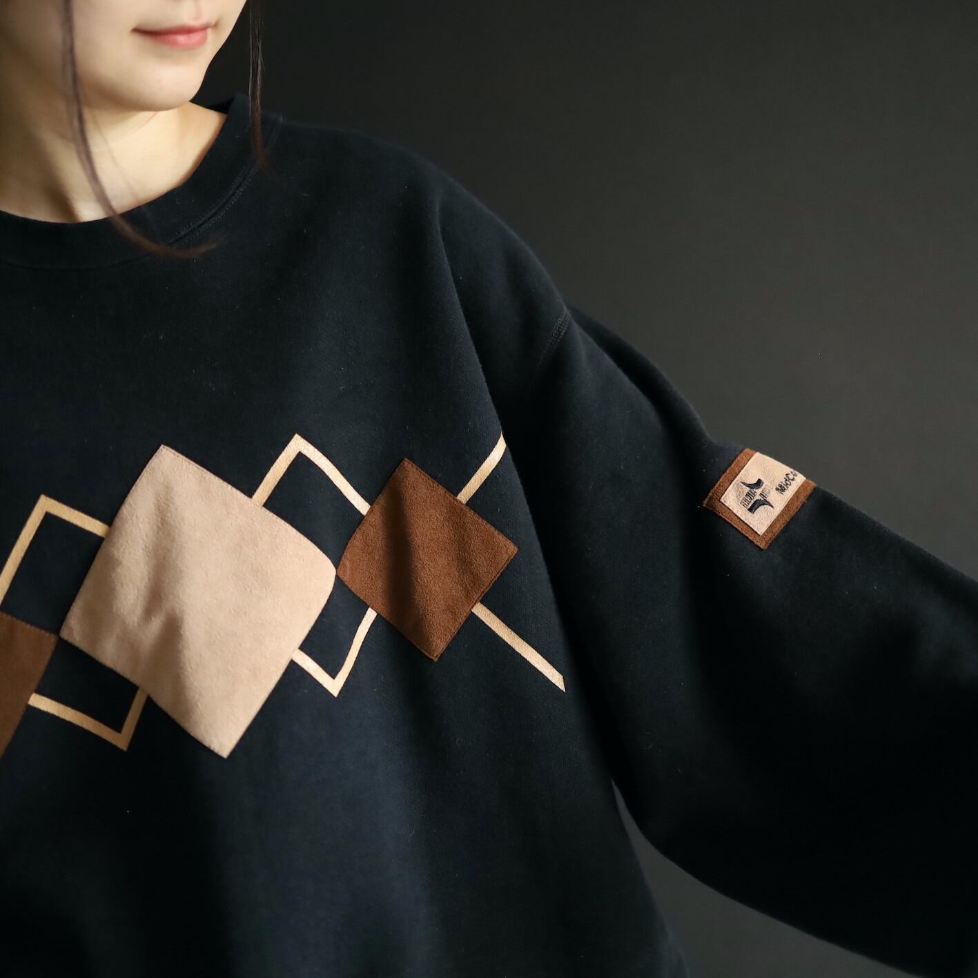 プリントではない分,立体的であるという点と,フェイクスウェードという異素材な点が"他と違う".