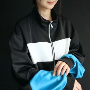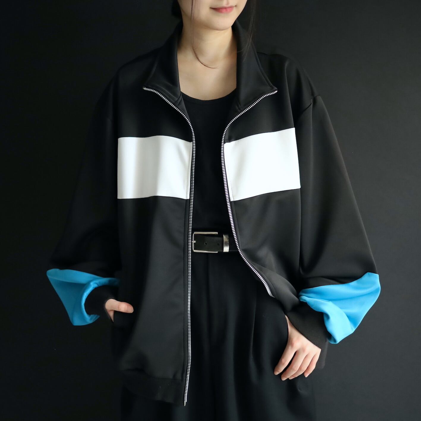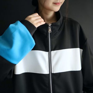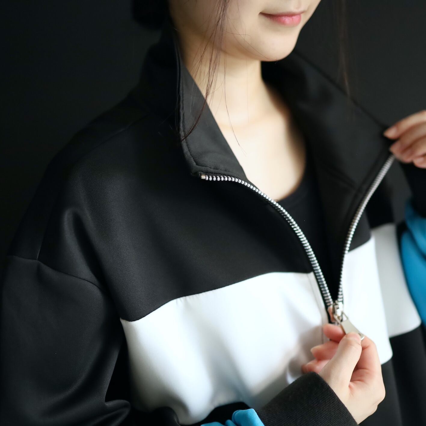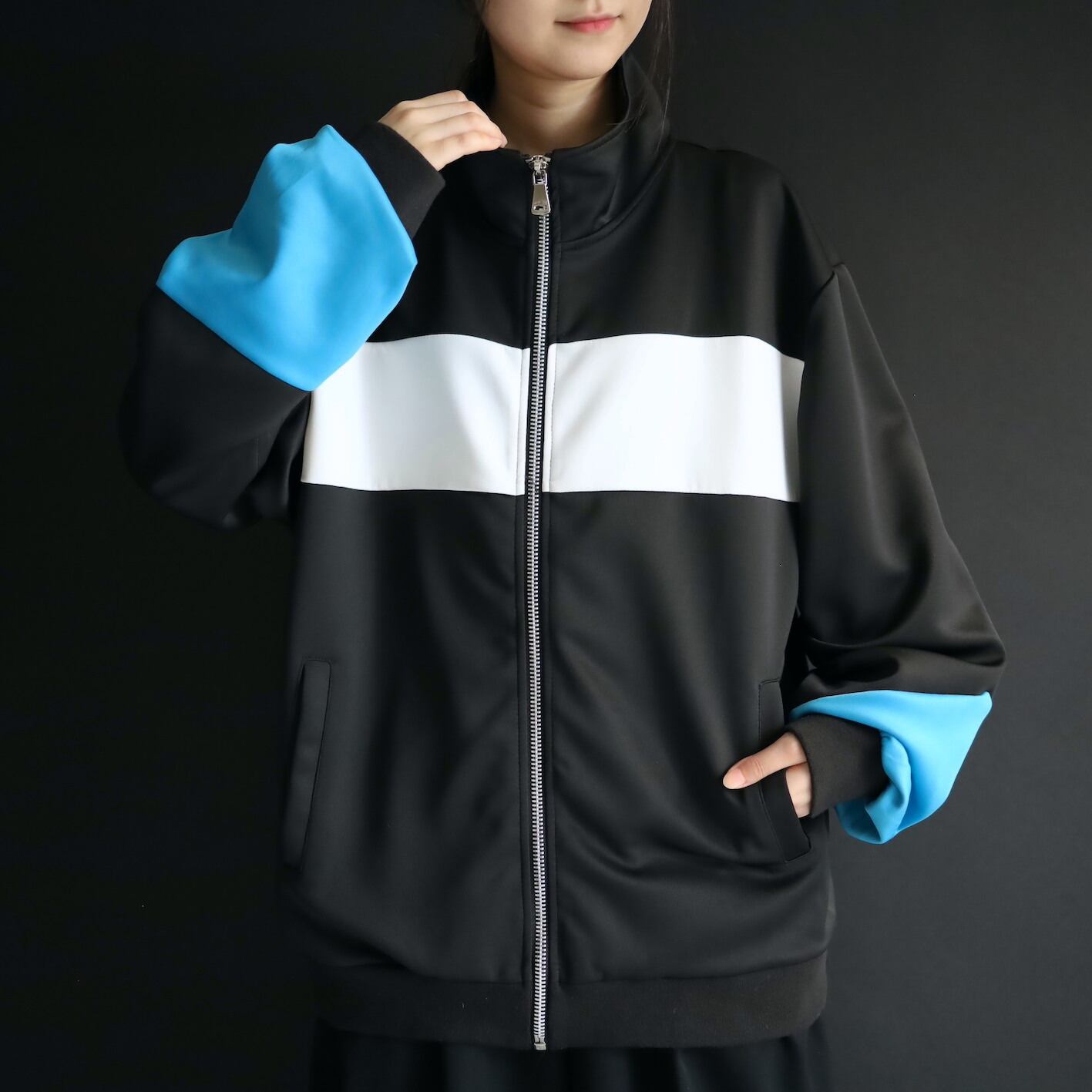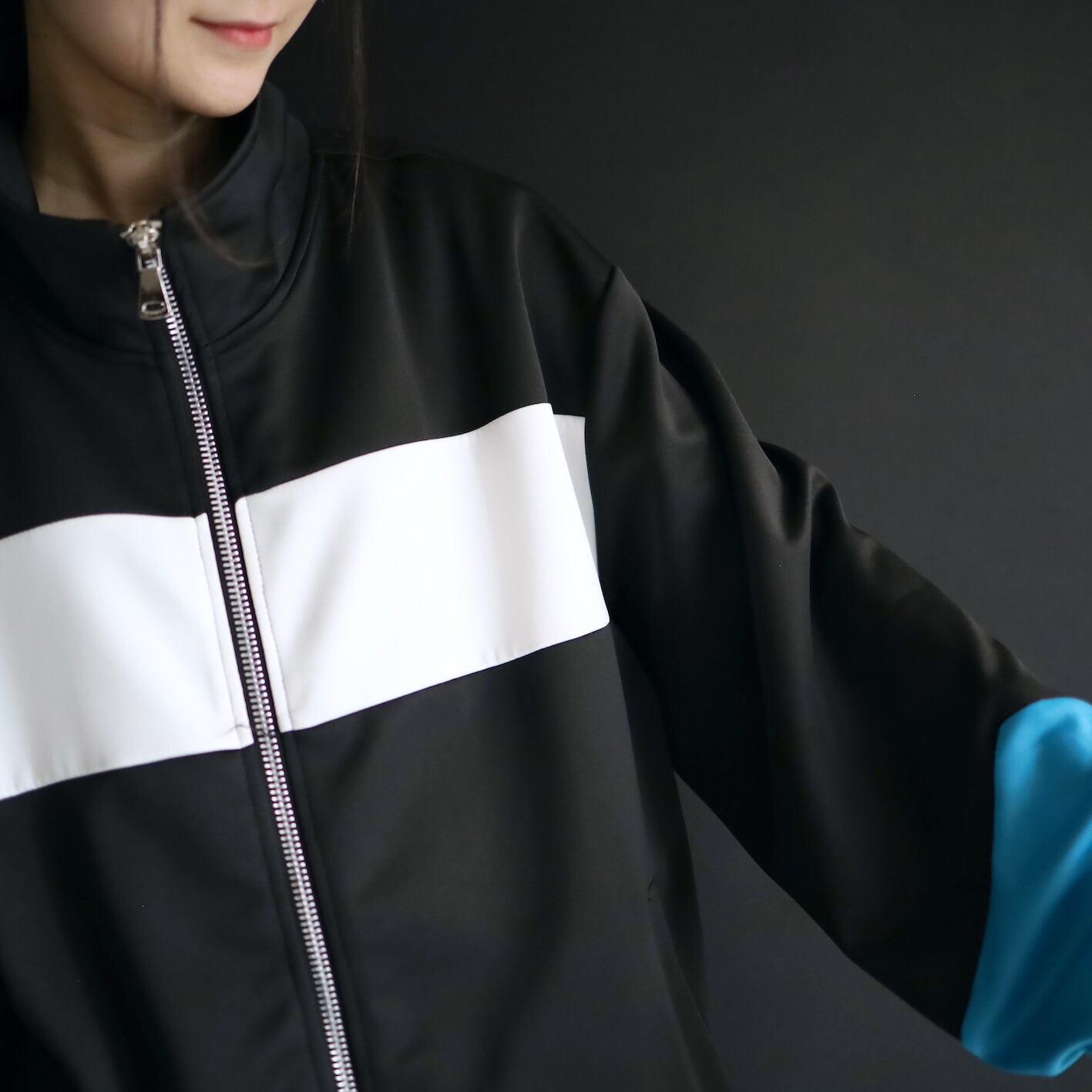 ブラックカラーをベースに,胸元を横切るホワイトの切替.
