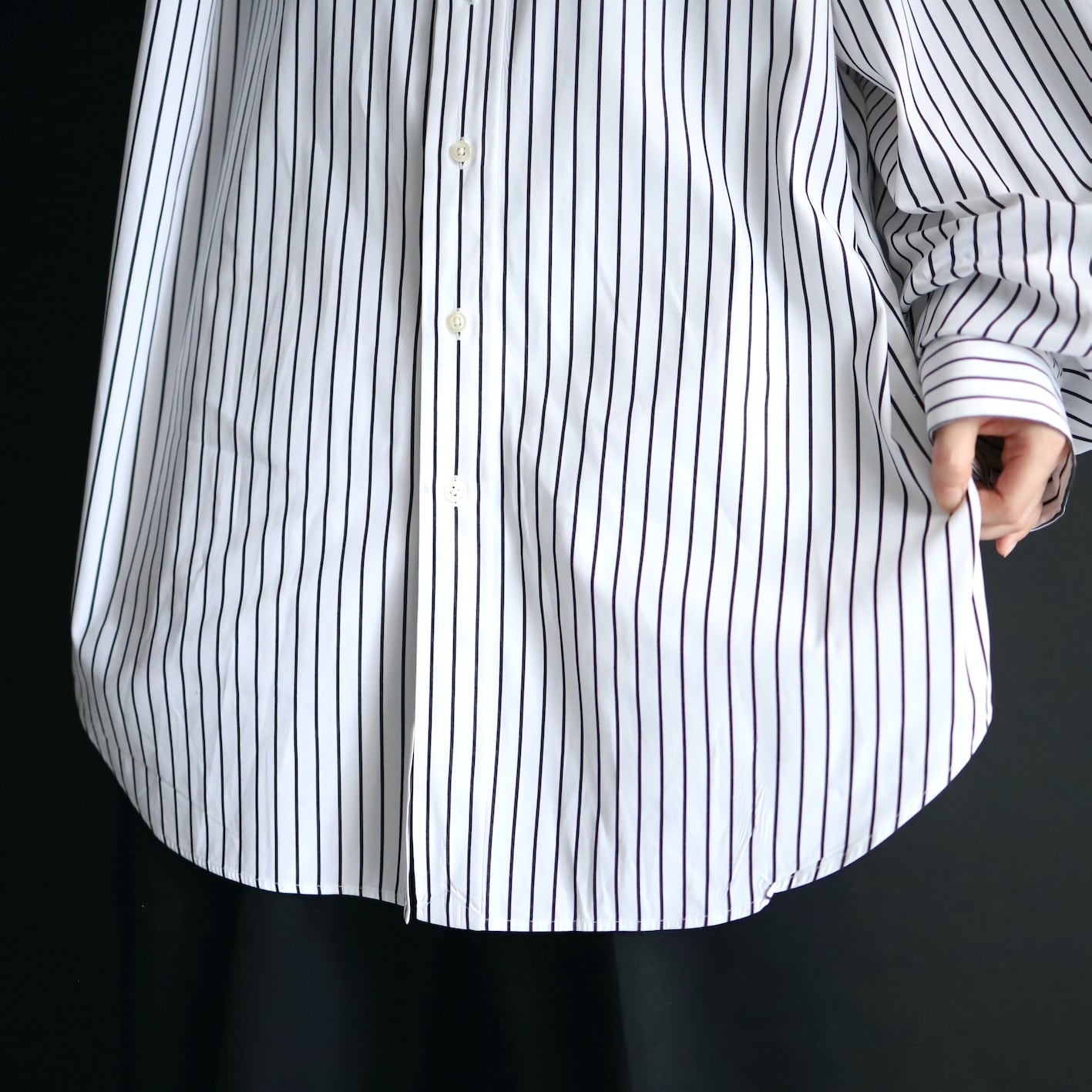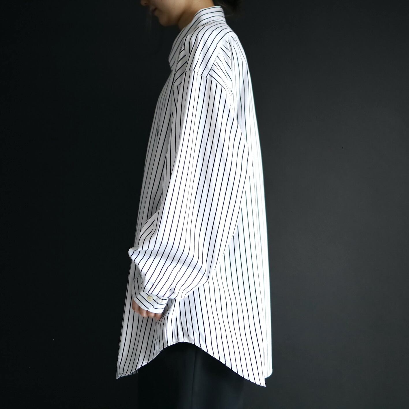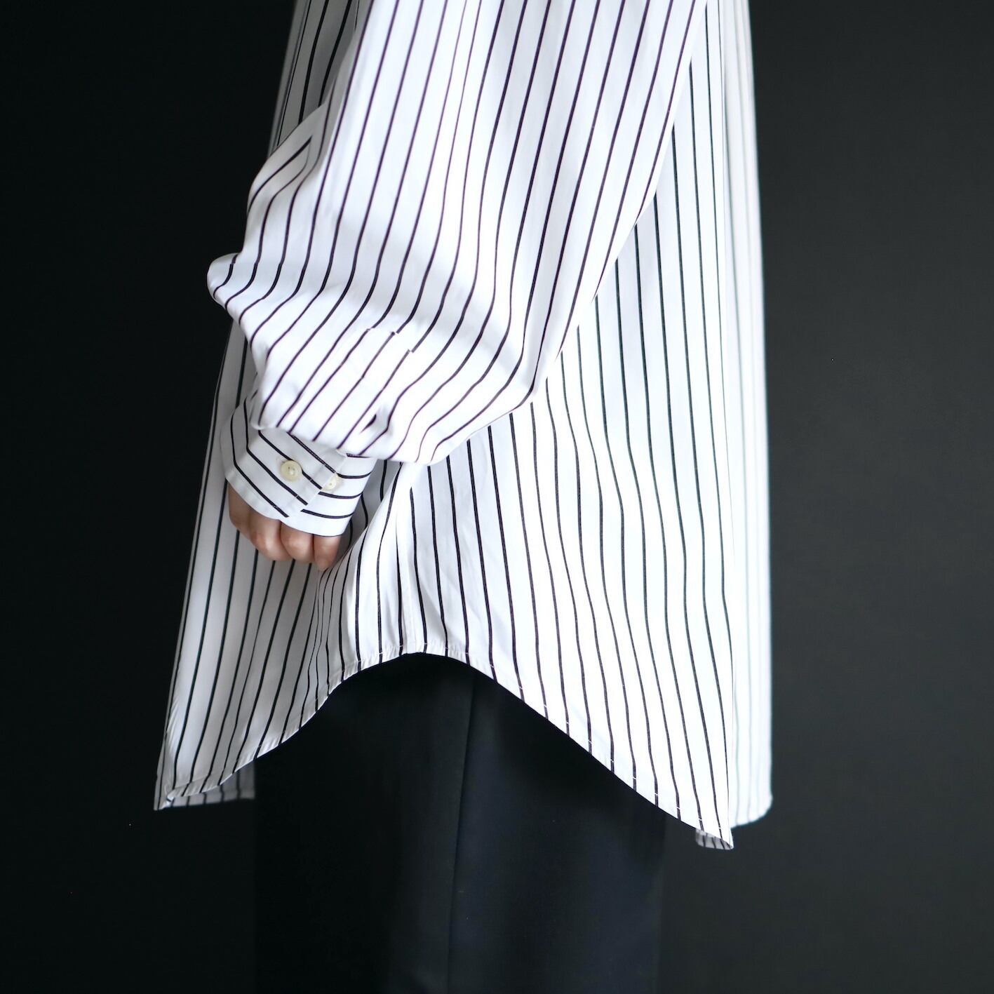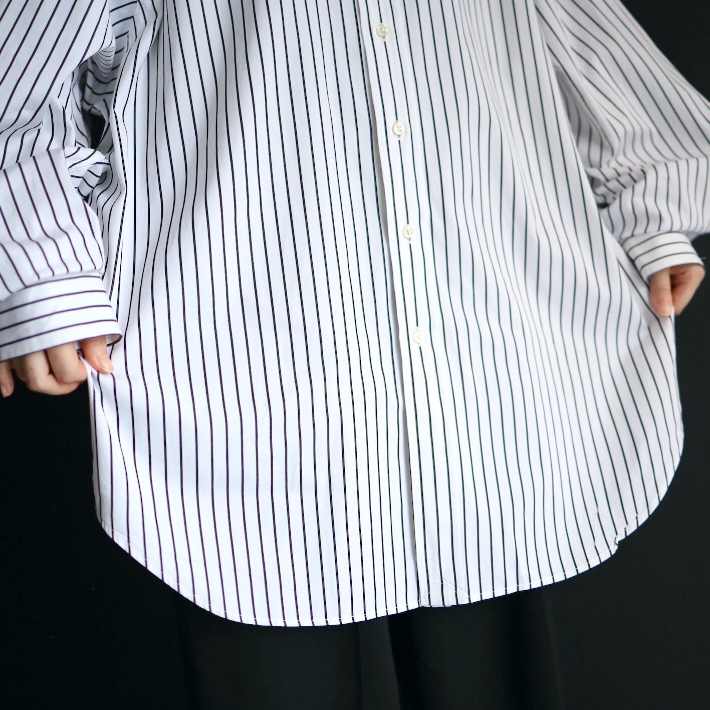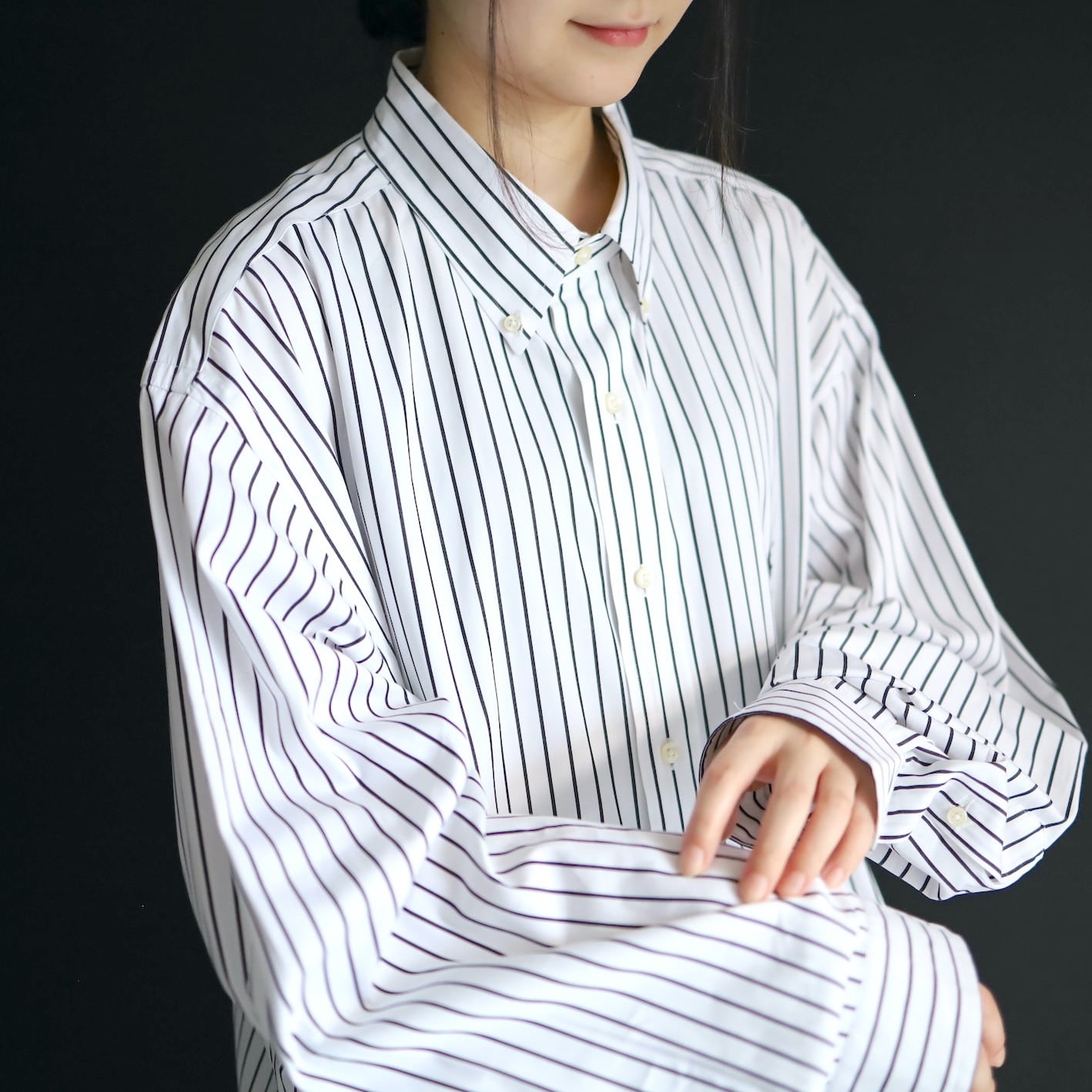 ストライプによる視覚効果と,裾ラウンドカットによって,ビッグに着てもスッキリしたシルエットにまとまります.
