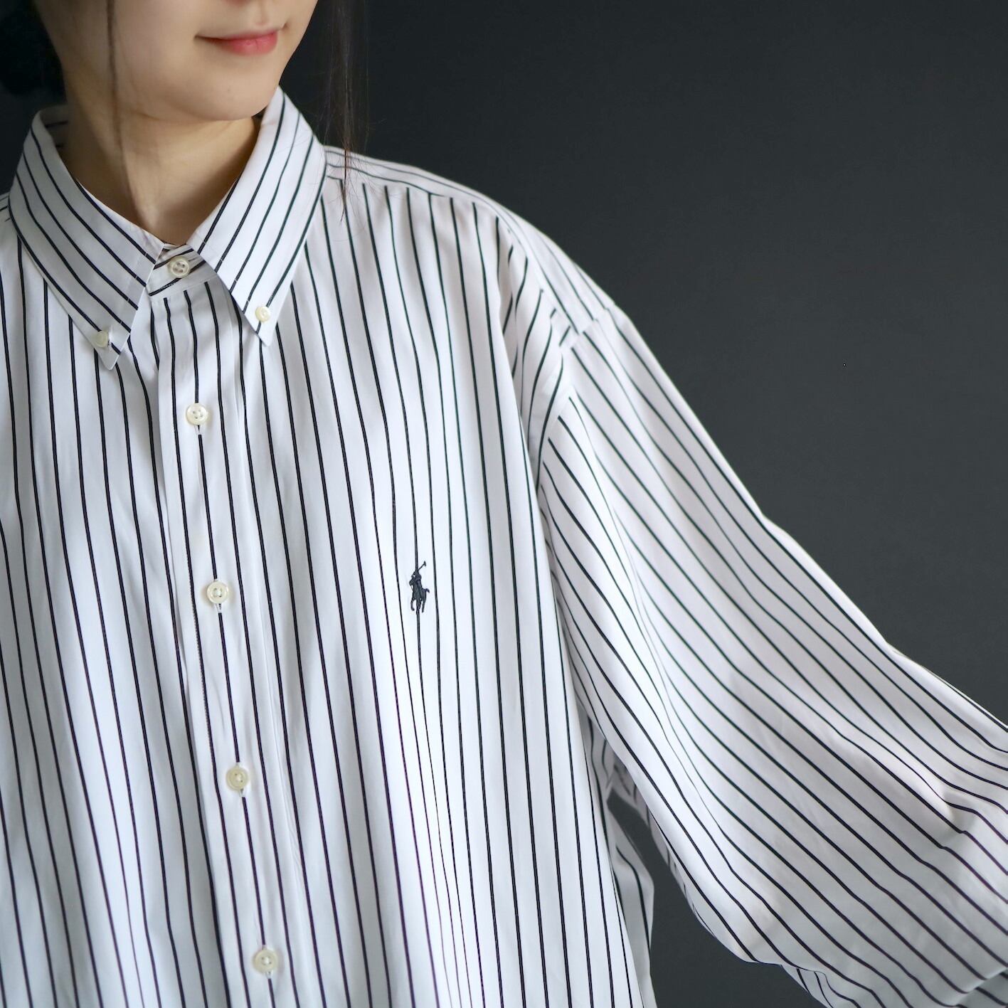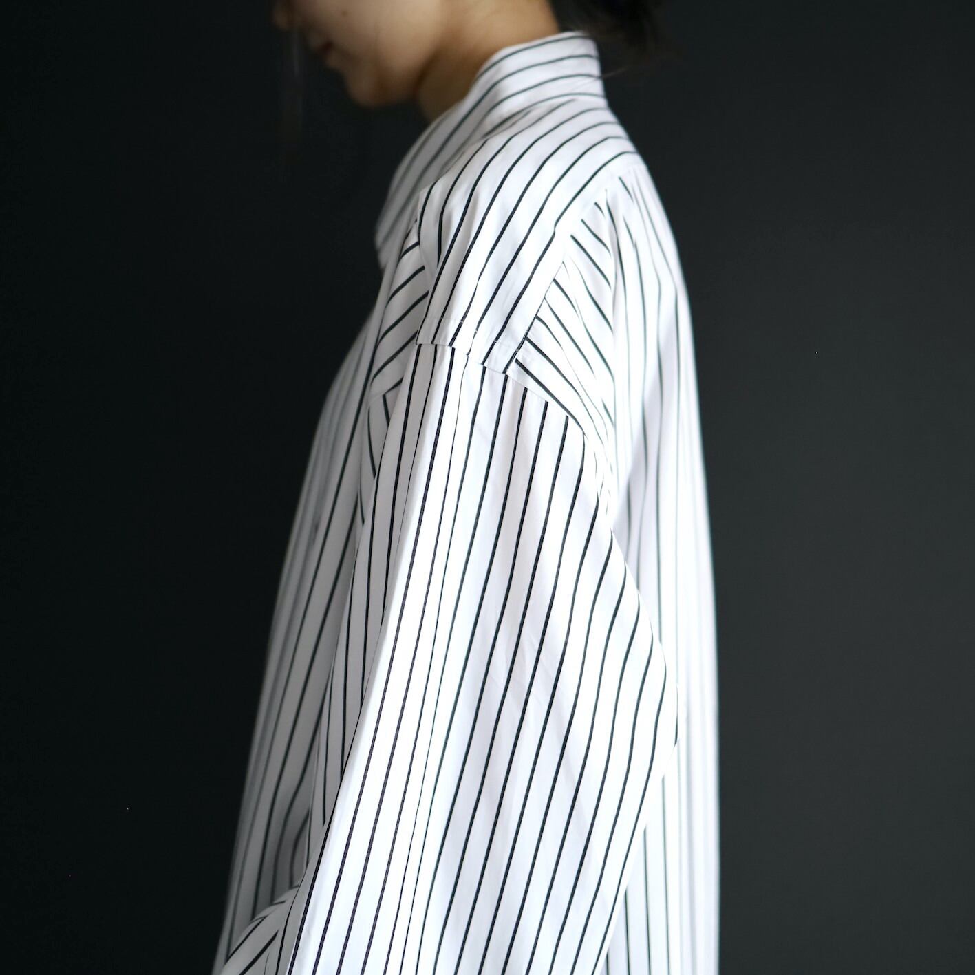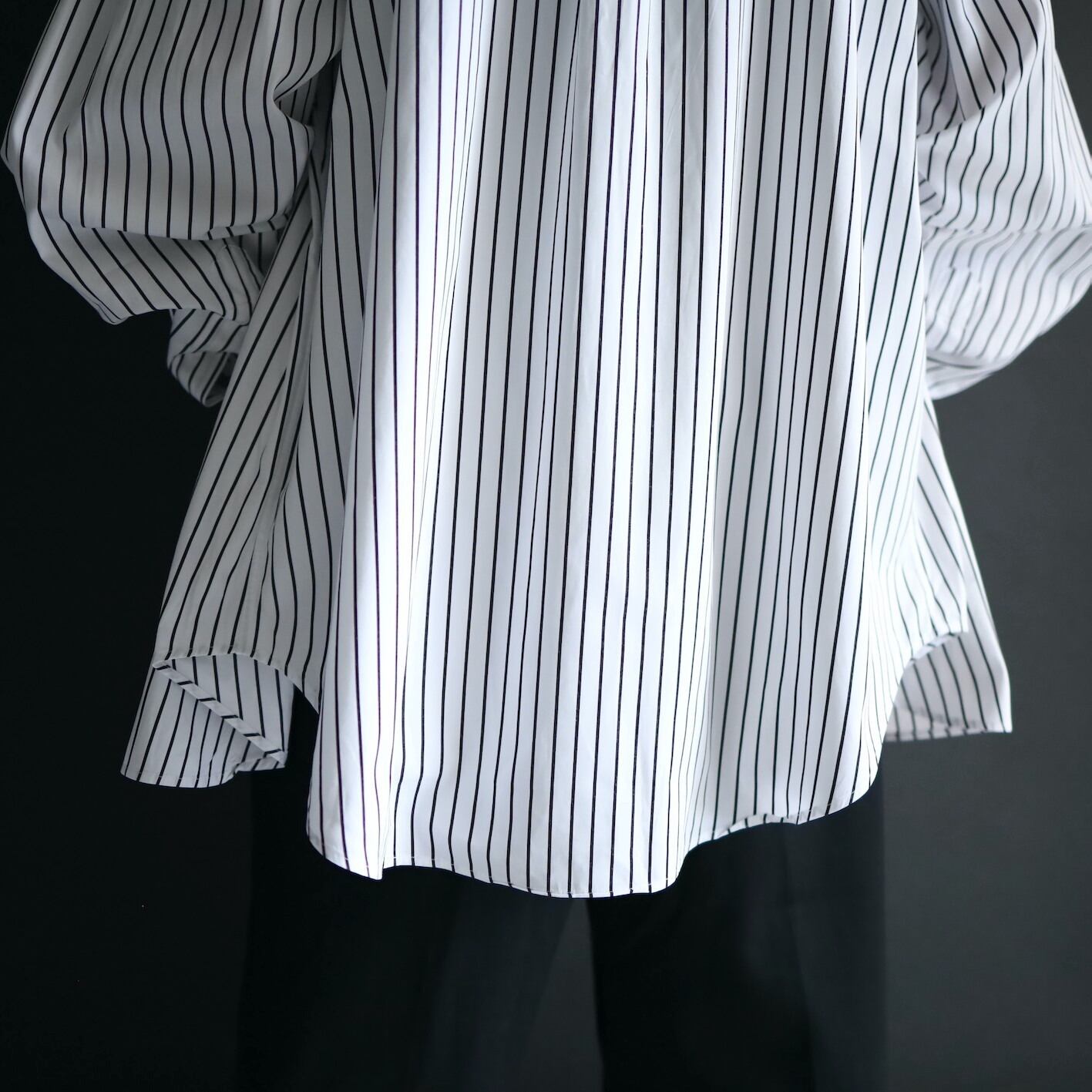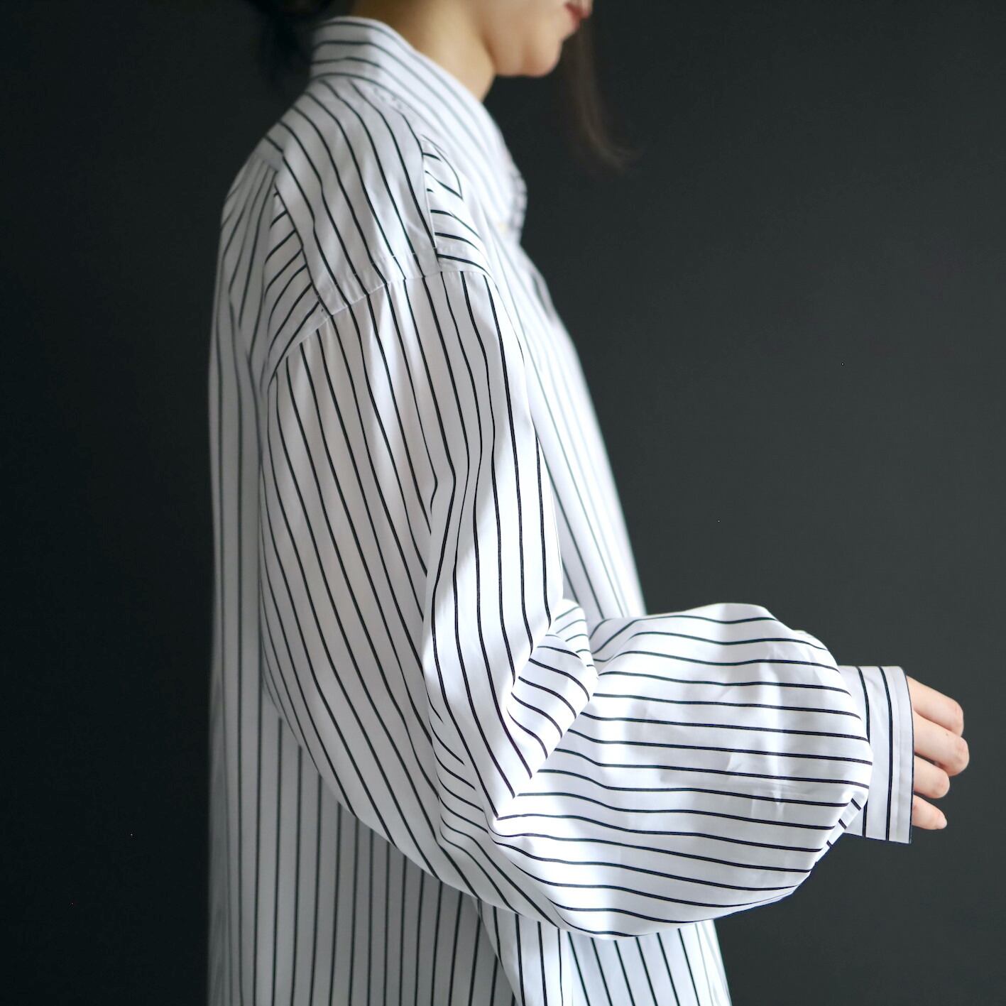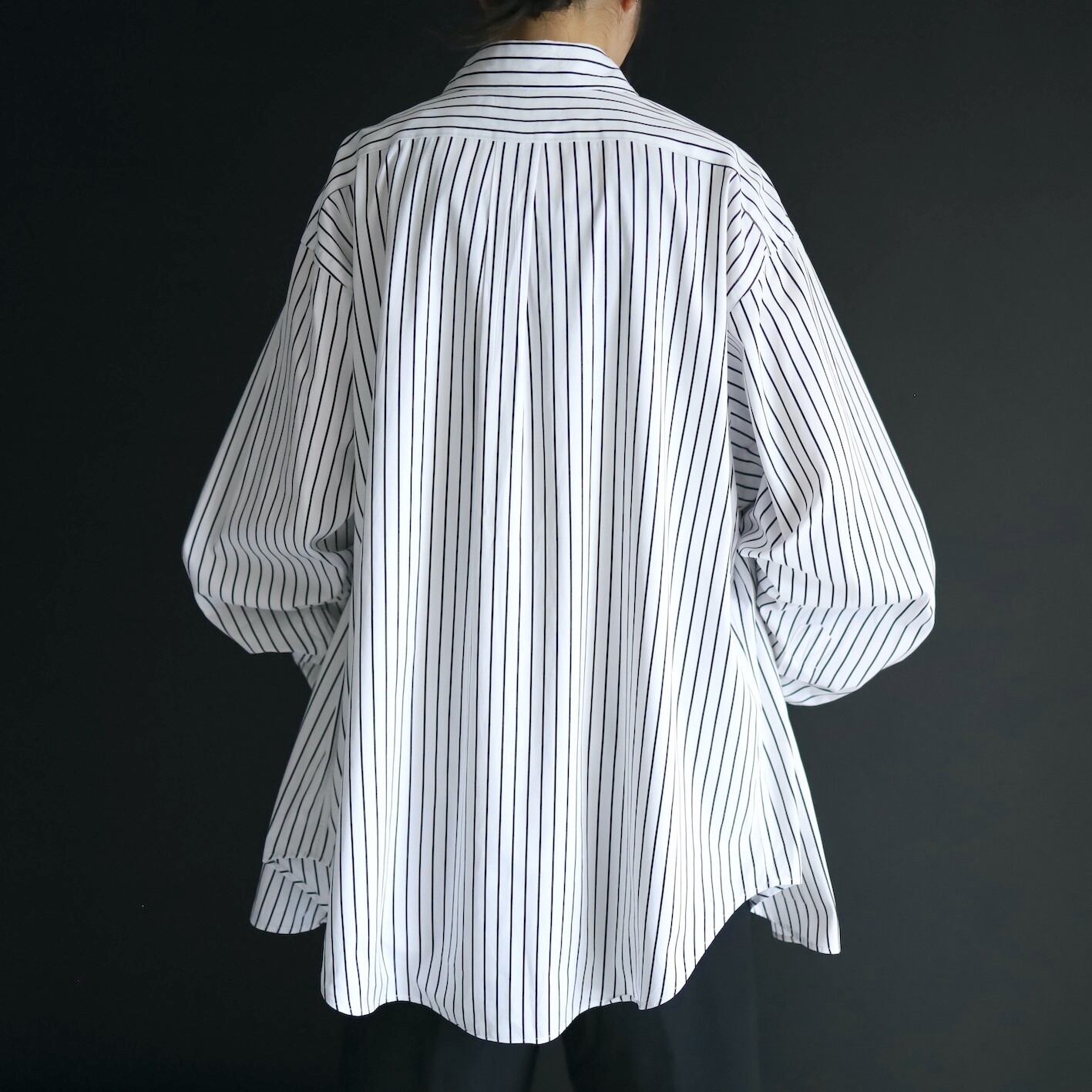 ストライプによる視覚効果と,裾ラウンドカットによって,ビッグに着てもスッキリしたシルエットにまとまります.