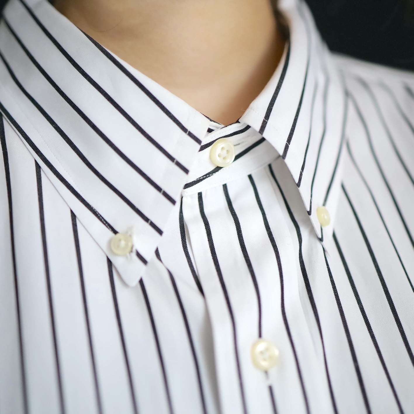 清潔感が溢れんばかりのホワイトベースのボディに,ブラックのピンストライプが規則的に並んだ一枚.