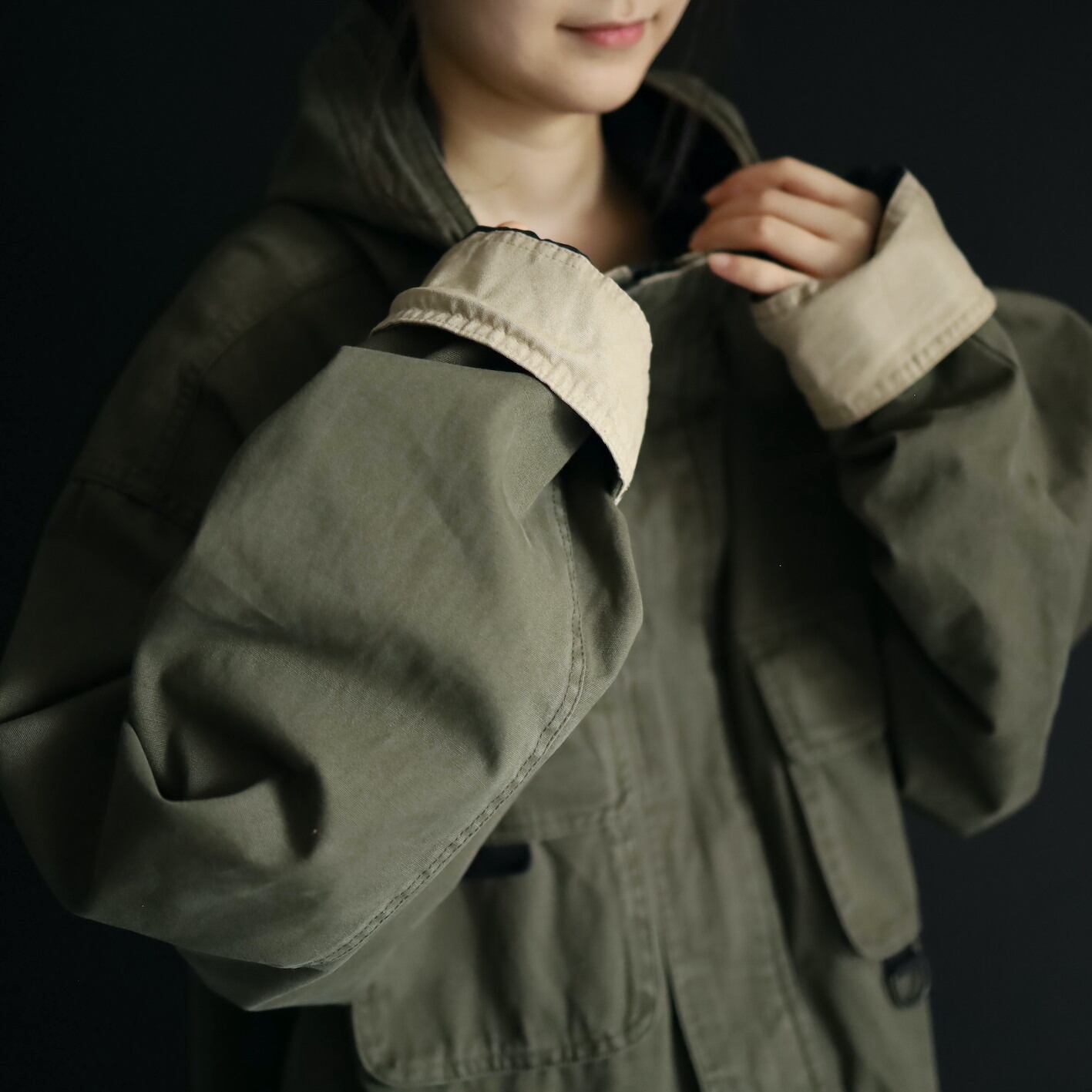 また袖先を一度ロールして裏地のベージュのチラ見せし,バイカラーに魅せるのも素敵な着方です.