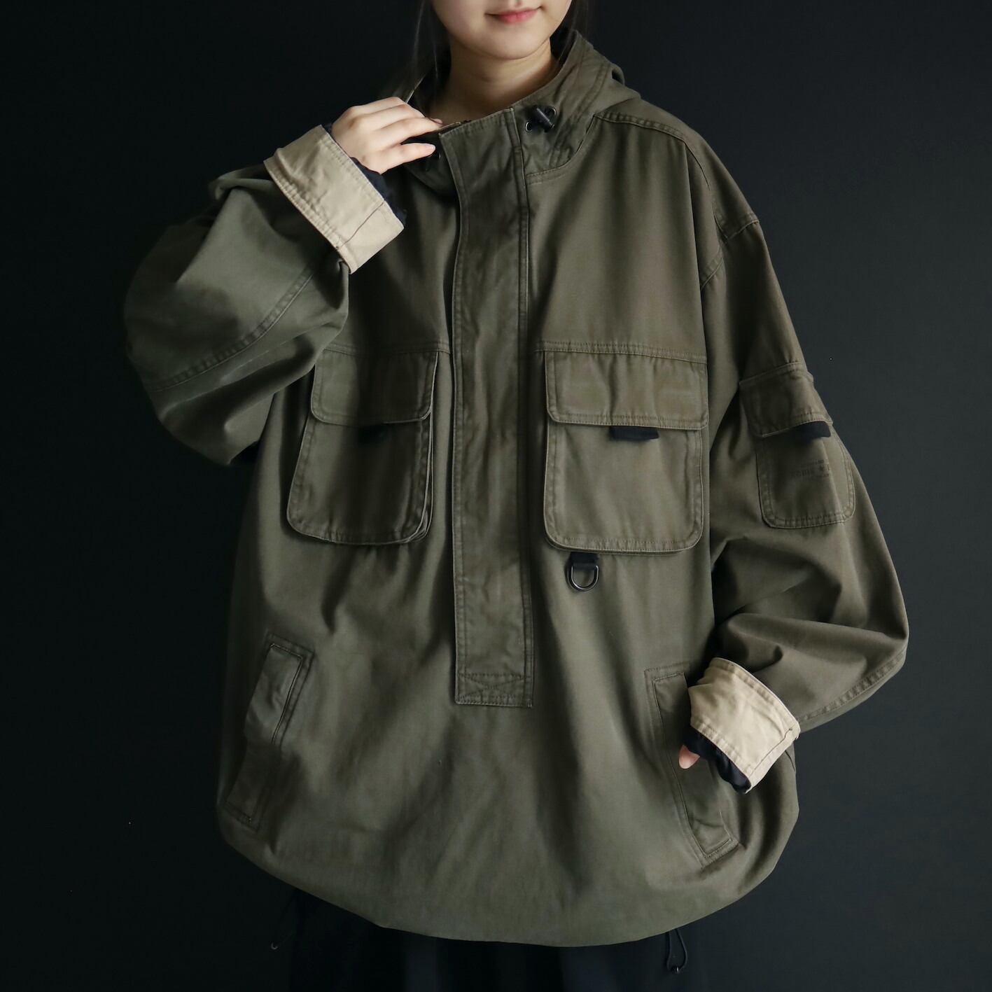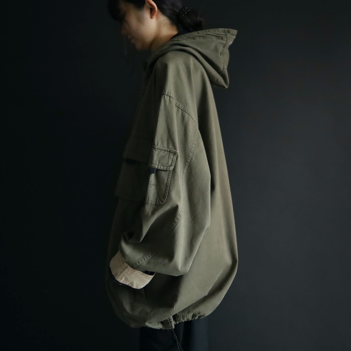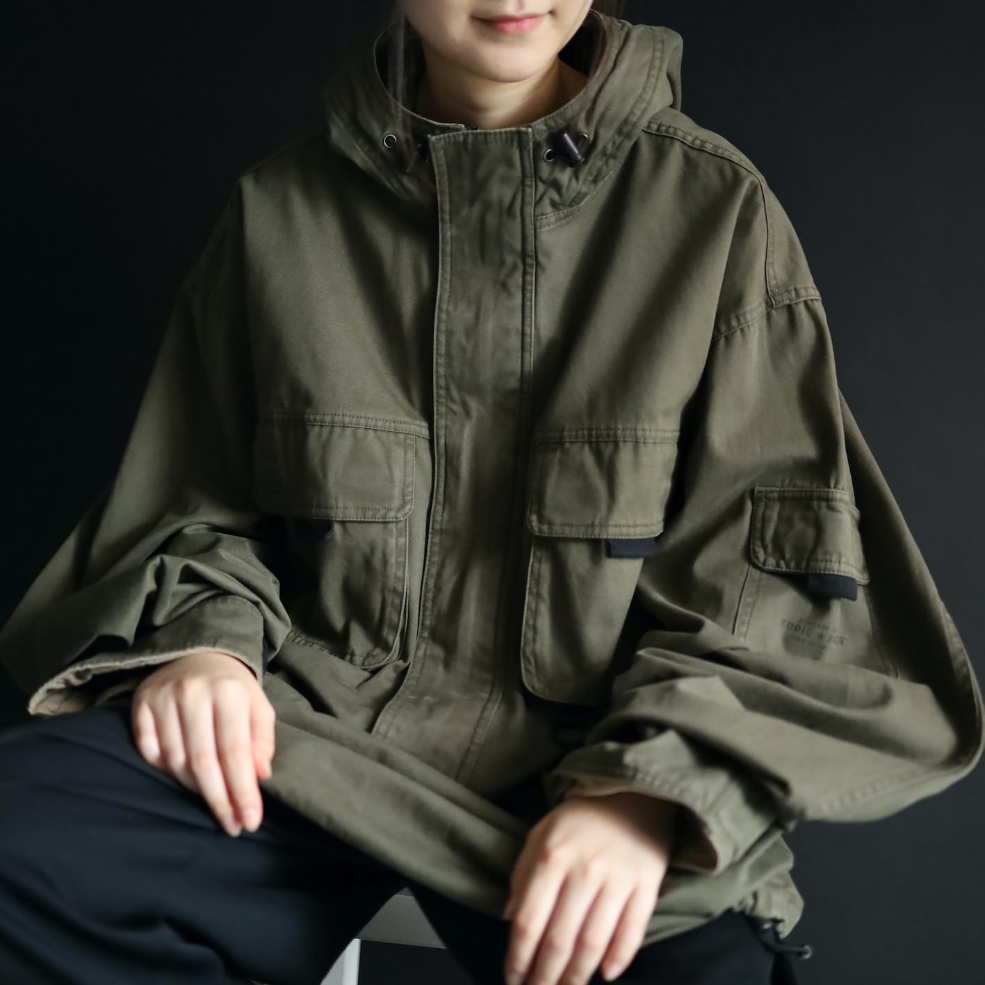 おすすめは画像のように裾のドローコードを絞ってぼてっとしたシルエットを作ること.