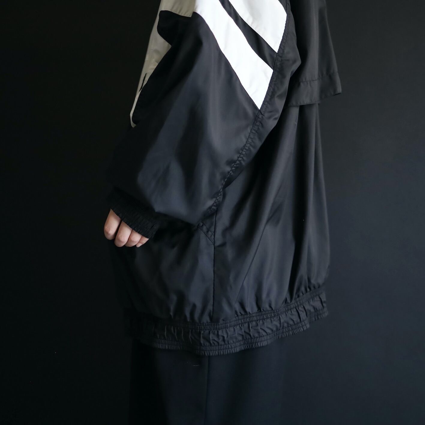 袖先から前身頃を通って反対の袖まで繋がった切替と,袖をぐるっと回る3本ライン切替.