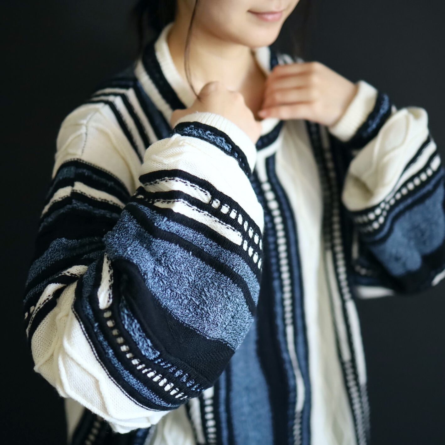 派手な印象の多い3Dニットの中でも,比較的落ち着いたルックスの仕上がり.